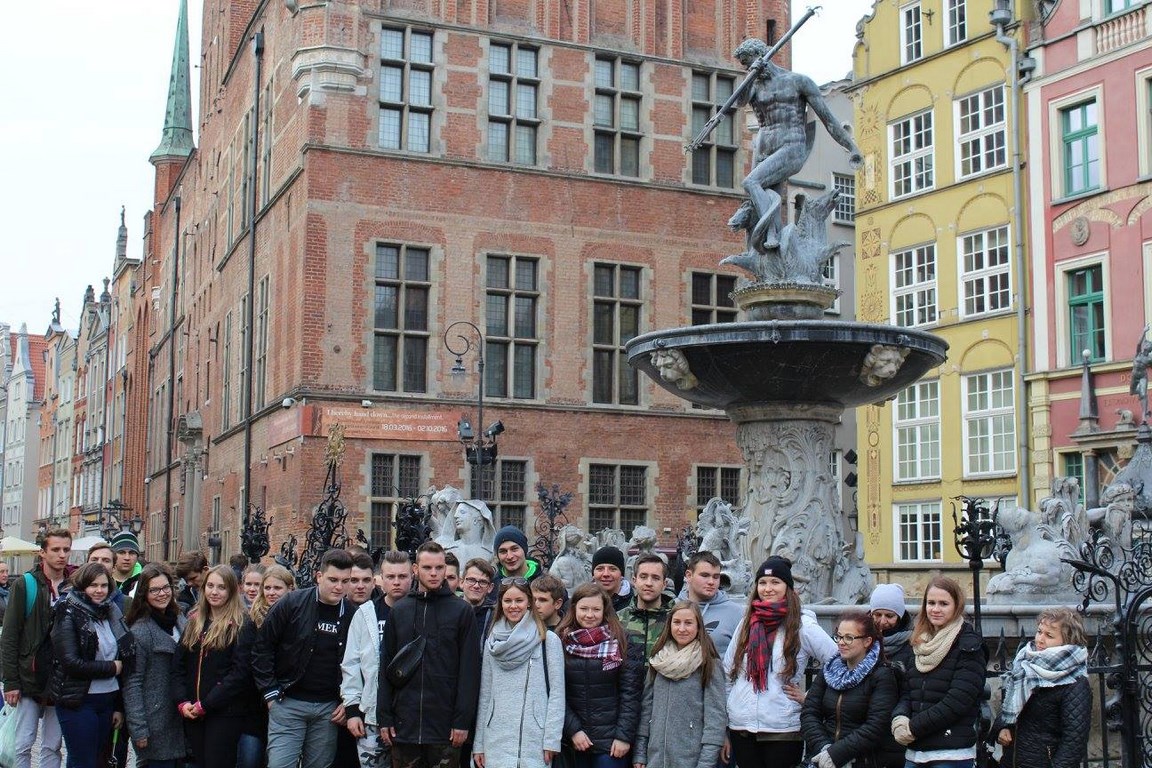 Pierwszym punktem zwiedzania było Westerplatte, czyli półwysep z obiektami tworzącymi w 1939 roku system obrony Wojskowej Składnicy Tranzytowej. Oprowadzani przez przewodnika, poznaliśmy tam przebieg działań obronnych prowadzonych przez mjr. H. Sucharskiego w ciągu siedmiu dni we wrześniu 1939r., a także późniejszą historię tego miejsca. Stamtąd przejechaliśmy prosto do Gdańska, a dokładniej na Stare Miasto. Zwiedzanie rozpoczęliśmy od wszystkim znanej Fontanny Neptuna i Dworu Artusa. Przemierzając kamienne uliczki przeszliśmy pod dawny ratusz, a następnie – Muzeum Bursztynu, które jak się okazało było swego czasu więzieniem. Na trasie naszego spaceru, pojawiło się również Drzewo Millenium Gdańska i Bazylika Mariacka. Po przemaszerowaniu tylu kilometrów, wszyscy byli zadowoleni, kiedy okazało się, że na pierwszy dzień to już koniec zwiedzania i jedziemy do Chłapowa, czyli miejsca noclegowego.