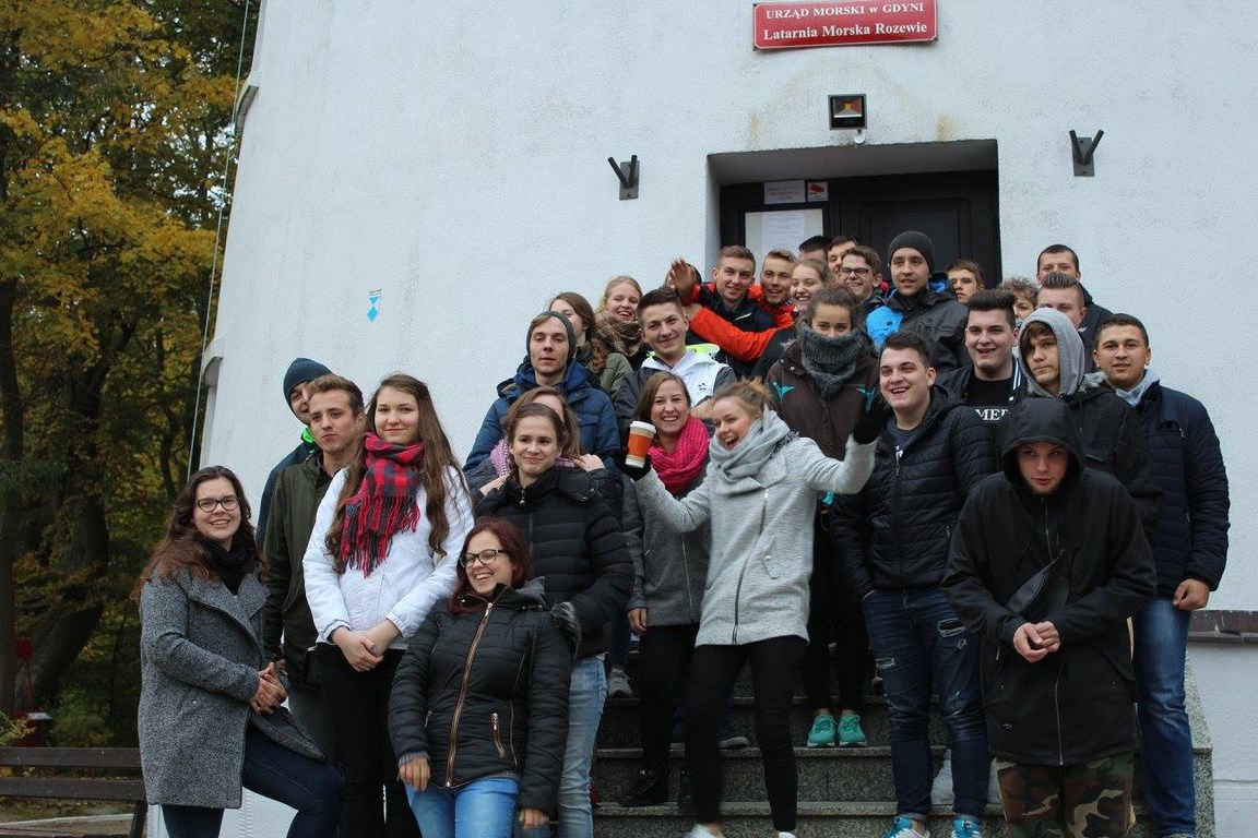 Po zwiedzaniu wróciliśmy do autokaru, by kontynuować podróż na cypel. Na miejscu mogliśmy przespacerować się wzdłuż plaży, gdzie powstało wiele ciekawych zdjęć. Kiedy już kwiaty we włosach potargał nam wiatr, obraliśmy kurs na Puck. Wracając do Chłapowa zrobiliśmy jeszcze jeden przystanek – w Jastrzębiej Górze, żeby wspiąć się na spotkanie z Latarnią Morską Rozewie. Na własne życzenie nie skończyliśmy dnia tak szybko jak było to zaplanowane. Zabraliśmy tylko ręczniki, zostawiliśmy niepotrzebne rzeczy i już pędziliśmy przez skarpy. Okazało się, że są wśród nas prawdziwe morsy! Przecież być nad morzem i nie wejść do wody to grzech… Świetnie się bawiliśmy biegając i skacząc przez fale…