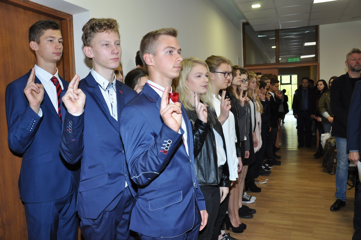 Zgodnie z tradycją szkoły w Zduńskiej Dąbrowie podczas obchodów tego wyjątkowego dla polskiego szkolnictwa dnia odbywa się równocześnie uroczystość złożenia przysięgi przez uczniów klas pierwszych. Nie inaczej było i teraz, kiedy to pierwszoklasiści w obecności swoich starszych kolegów, rodziców, dyrekcji oraz nauczycieli poprzysięgli dochować wierności wszystkim wartościom wynikającym z bycia uczniem Zespołu Szkół Centrum Kształcenia Rolniczego im. Jadwigi Dziubińskiej. Warto nadmienić również, iż w część oficjalnej uroczystości przedstawione zostały, w krótkim rysie historycznym postacie patronek szkoły w Zduńskiej Dąbrowie oraz nieistniejącego już liceum w Zdunach.