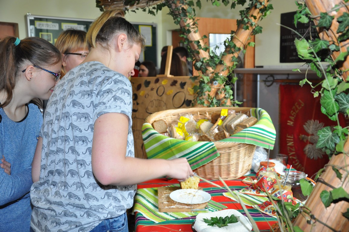 W ZSCKR w Zduńskiej Dąbrowie nigdy nie zapomina się o szacunku do chleba i dlatego, jak co roku, 26 października odbyły się kolejne obchody Dnia Żytniego Chleba. Na holu zorganizowano stoisko z różnymi gatunkami chleba. Na stole oprócz pieczywa pojawił się smalec i kiszony ogórek, wiejski biały ser, masło, miód oraz powidła śliwkowe. Społeczność szkolna mogła się częstować kanapkami z oferowanymi dodatkami.
