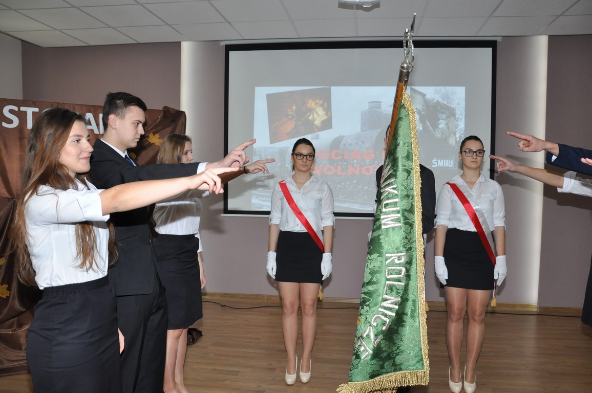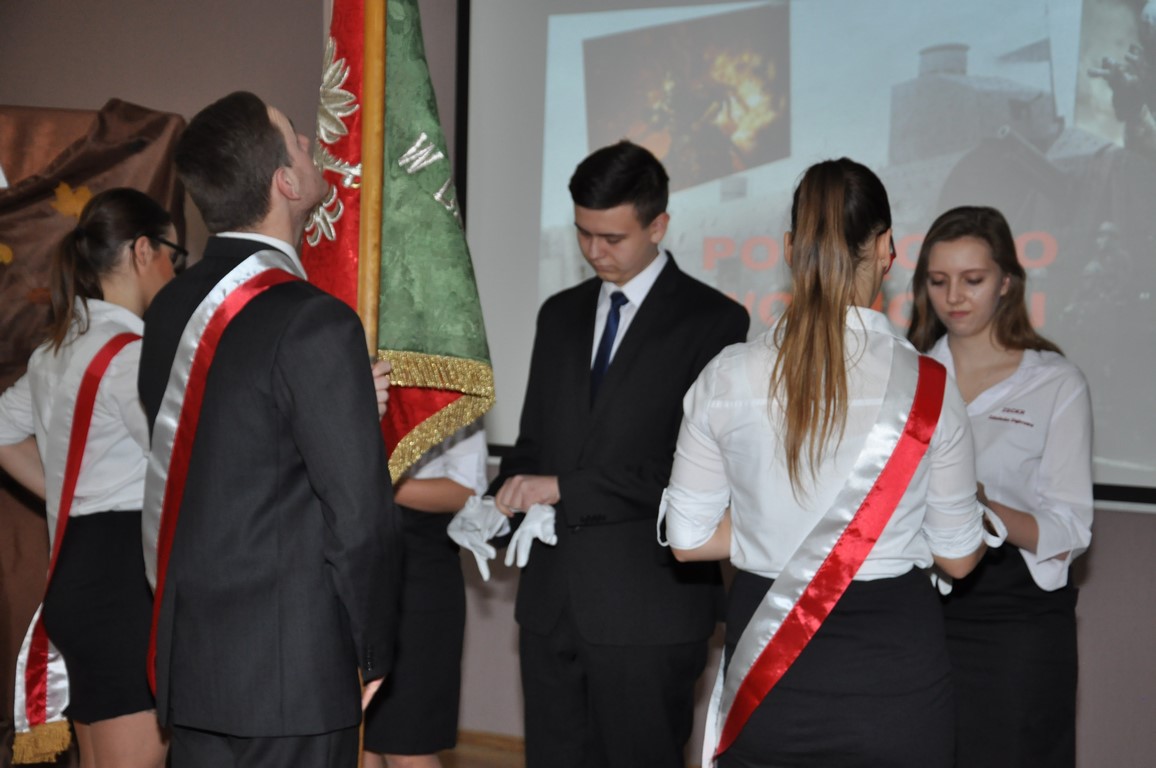 To już 99 rocznica odzyskania przez Polskę niepodległości w roku 1918. Dla większości z nas jest to czas radości i zadumy. Nic więc dziwnego, iż uczniowie szkoły w Zduńskiej Dąbrowie jak co roku postanowili w sposób właściwie podniosły upamiętnić to jedno z trzech najważniejszych świąt państwowych. Uroczystość odbyła się 10 listopada w sali wykładowej Zespołu Szkół i była połączona z ceremonią przekazania sztandaru szkoły młodszym uczniom.