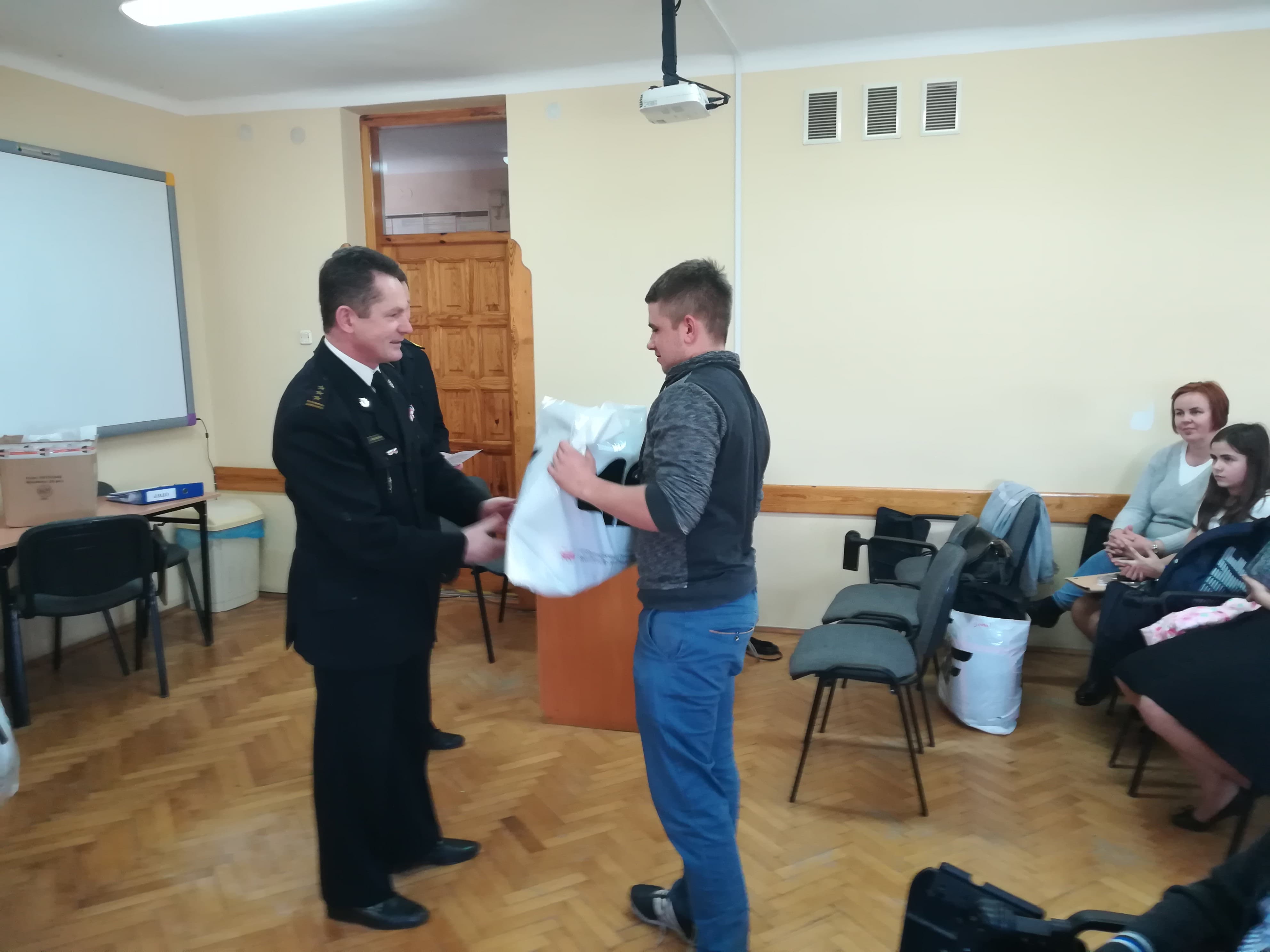 W środę, 11 kwietnia, uczniowie naszej szkoły wzięli udział w powiatowych eliminacjach Ogólnopolskiego Turnieju Wiedzy Pożarniczej, który w tym roku przebiegał pod hasłem: ,, Młodzież zapobiega pożarom”. Naszą szkołę reprezentowali: Natalia Kawecka z klasy I TW oraz Adam Czajka i Mateusz Dałek z klasy IV TR. W pierwszej kolejności uczestnicy turnieju zmierzyli się z testem zawierającym między innymi pytania zakresu przepisów przeciwpożarowych oraz zasad postępowania na wypadek pożaru. W drugim etapie eliminacji turnieju, do którego zakwalifikowali się wszyscy uczniowie z naszej szkoły, trzeba było udzielić odpowiedzi na pytania zadawane przez jury konkursu. W wyniku rywalizacji, która przebiegała w grupie uczniów uczęszczających do szkół ponadgimnazjalnych, Adam Czajka zajął II miejsce, a Natalia Kawecka III miejsce. Otrzymali oni atrakcyjne nagrody rzeczowe oraz pamiątkowe dyplomy.
