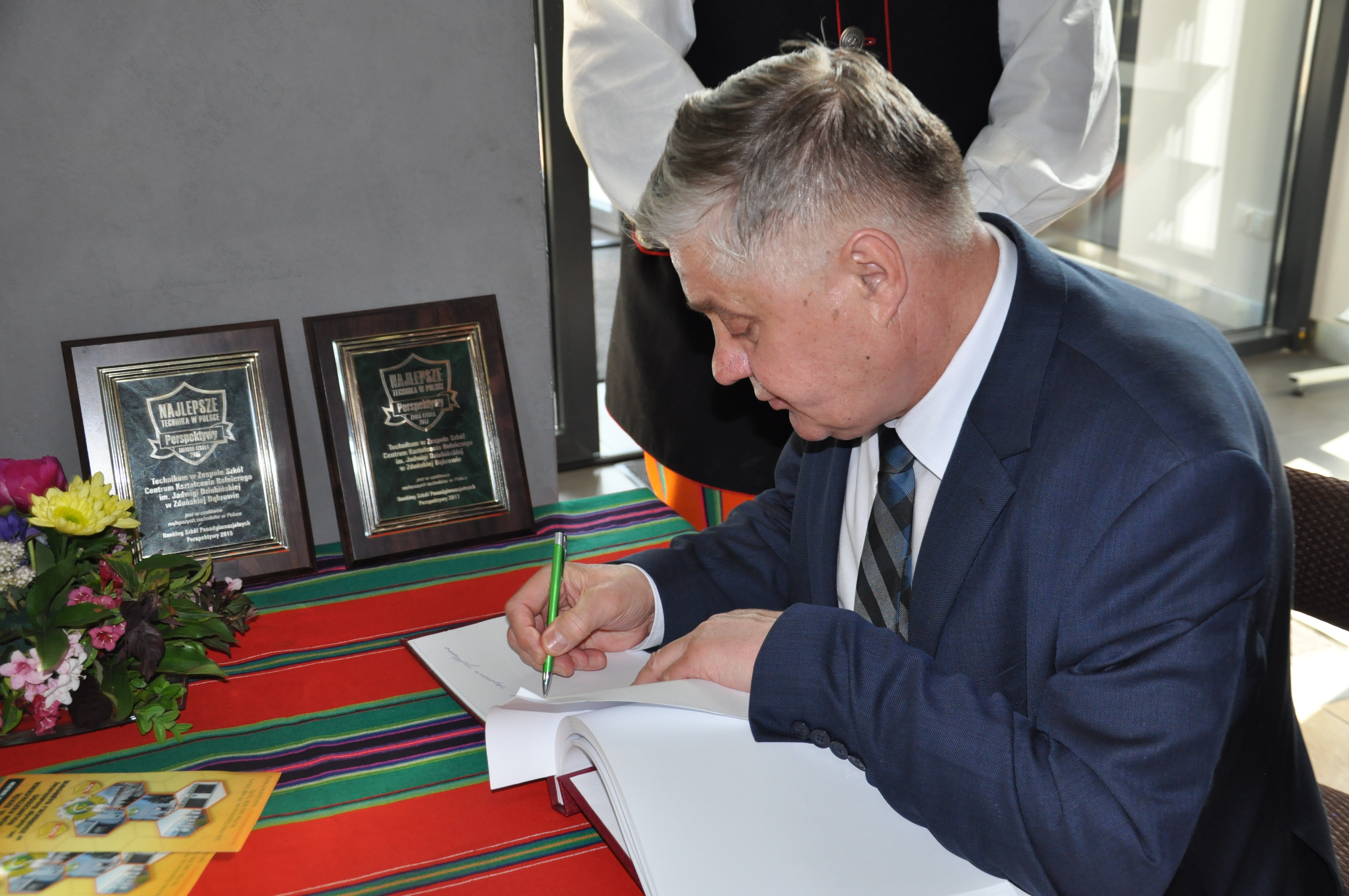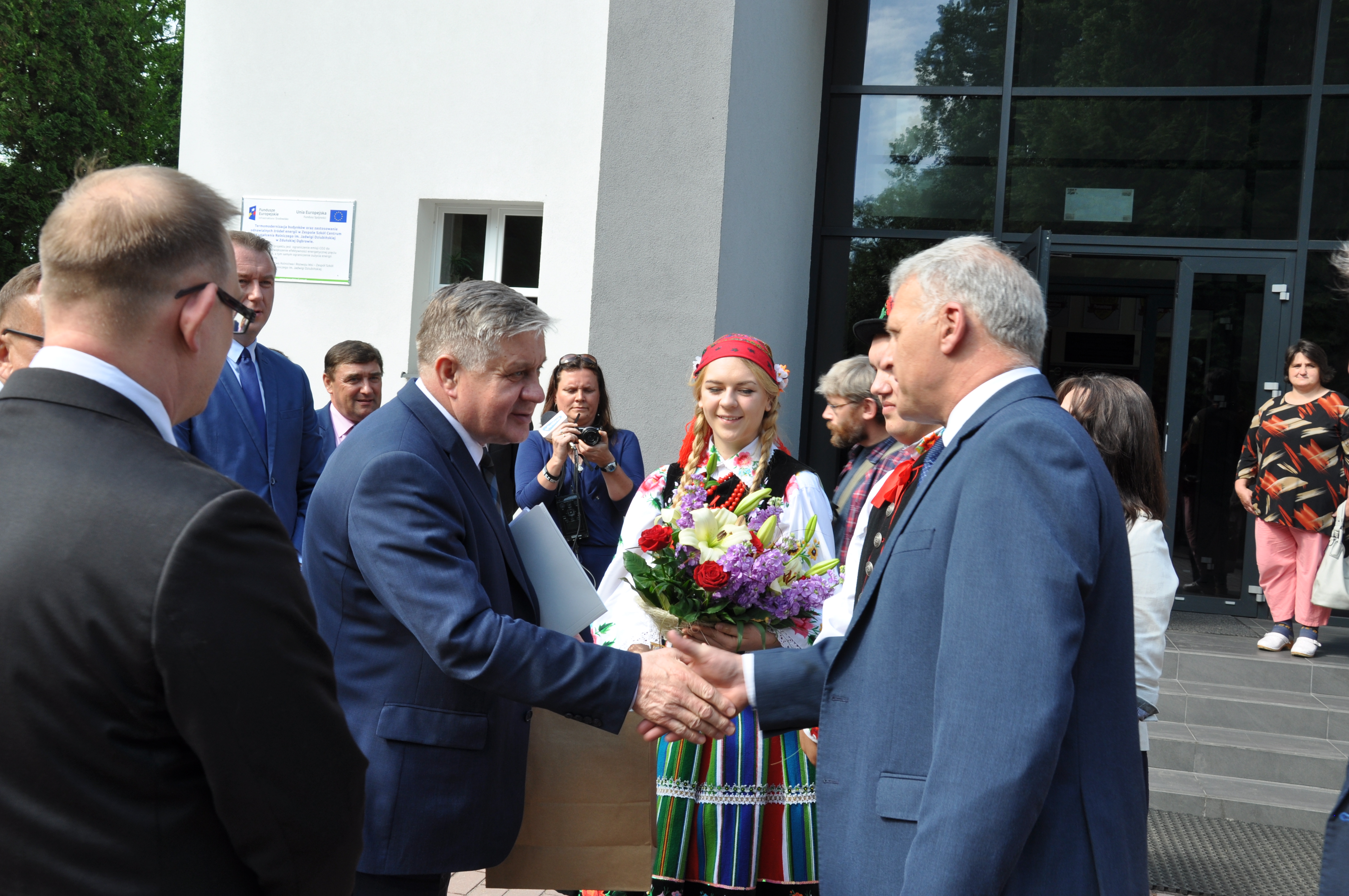 26 maja 2018 roku w Zespole Szkół Centrum Kształcenia Rolniczego w Zduńskiej Dąbrowie p. Krzysztof Jurgiel Minister Rolnictwa i Rozwoju Wsi wraz z senatorem p. Przemysławem Błaszczykiem i posłem p. Markiem Matuszewskim spotkali się z nauczycielami, pracownikami szkoły, uczniami oraz ich rodzicami. Goście zostali powitani przez całą społeczność szkolną. Przedstawiciele uczniów, ubrani w stroje łowickie, dziękując za przybycie wręczyli Panu Ministrowi kwiaty.