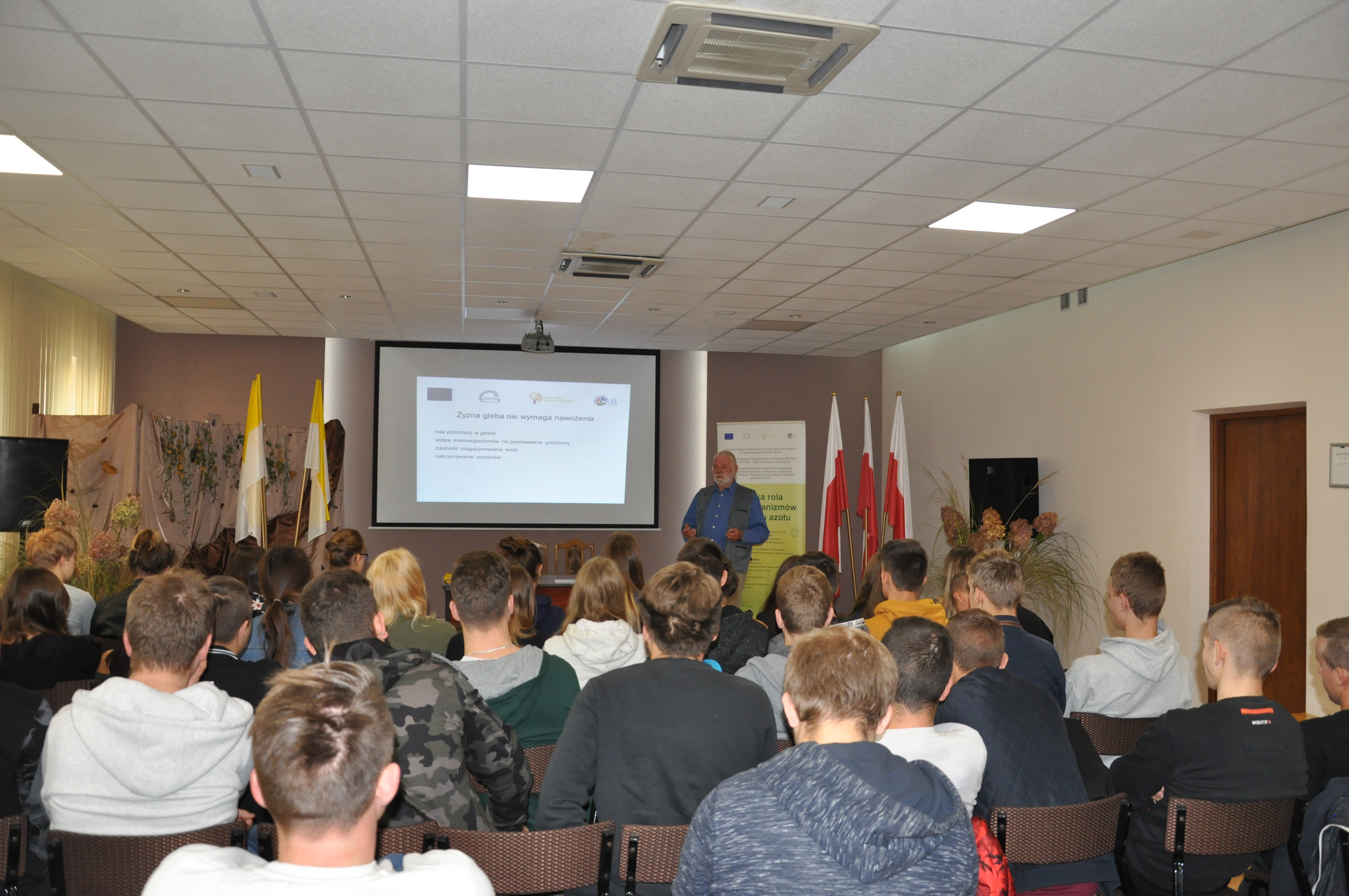 18 października 2018 roku uczniowie Technikum kształcącego w zawodzie technik rolnik uczestniczyli w szkoleniu na temat ,,Wykorzystania mikroorganizmów w obiegu azotu w przyrodzie”, które przeprowadził pan Andrzej Orłow – przedstawiciel firmy PPU MORS Elżbieta Orłow.