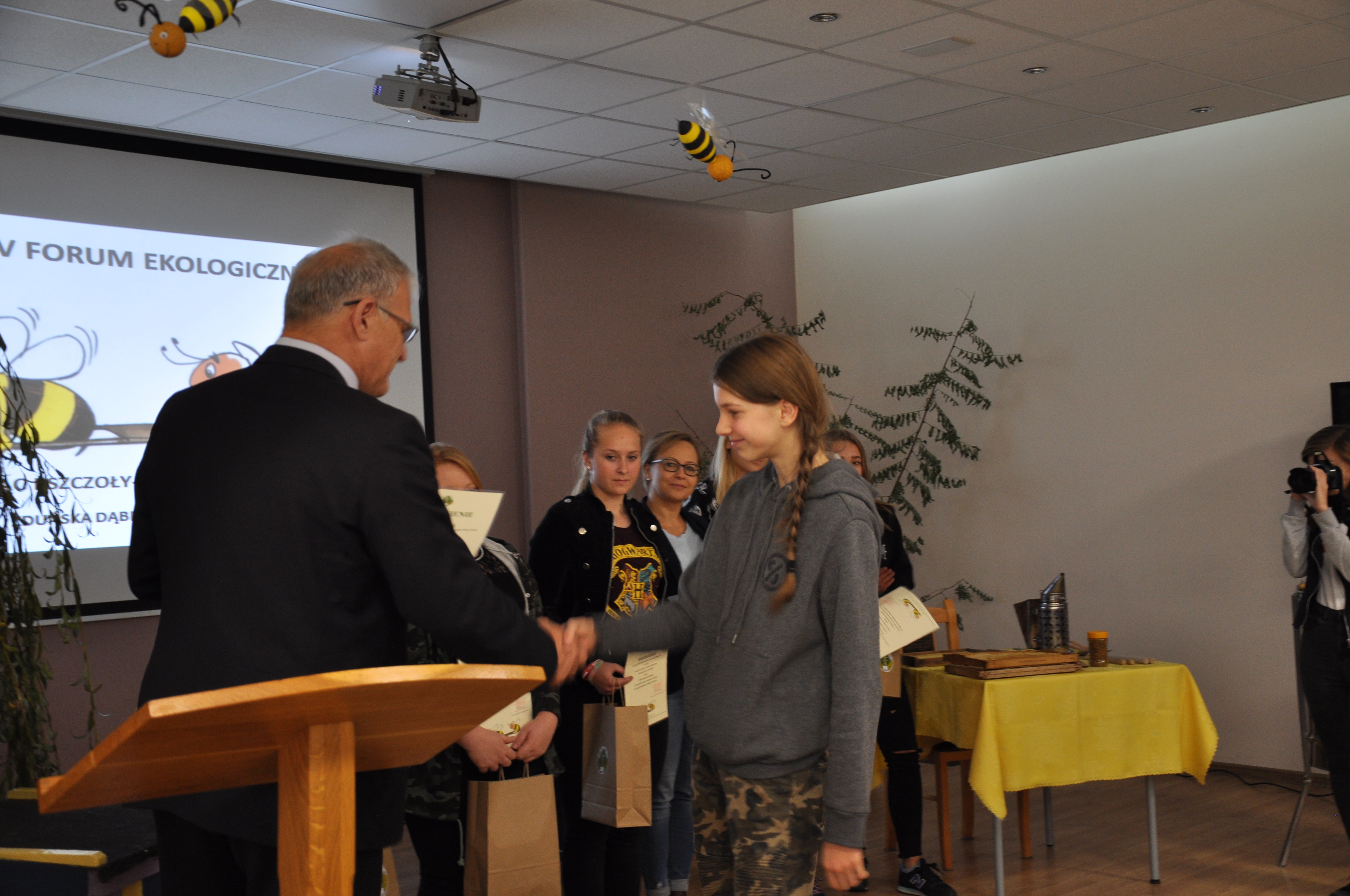 Po części wykładowej, która uświetniona została występami młodzieży z ZSCKR w Zduńskiej Dąbrowie, przyszedł czas na wręczenie nagród w konkursie plastycznym. W tym roku zwycięzcą konkursu plastycznego pt.,, Rola pszczół w przyrodzie” została uczennica szkoły podstawowej z Witoni – Weronika Maciejewska. Drugie miejsce zajęła Weronika Kosman ze szkoły podstawowej nr 2 w Łowiczu. Równorzędne III miejsce zajęli Szymon Taraska i Aleksandra Dylewska, obydwoje ze Szkoły Podstawowej nr 2 im. Adama Mickiewicza w Łowiczu. Z uwagi na wysoki poziom dostarczonych prac konkursowych, komisja konkursowa przyznała pięć wyróżnień, które otrzymali: Zuzanna Łykowska (ZSCKR w Zduńskiej Dąbrowie), Karina Muras i Zuzanna Majer (Szkoła Podstawowa w Nowych Zdunach), Alicja Szymczyk (Szkoła Podstawowa w Witoni), Łukasz Sałuda (szkoła podstawowa w Popowie) oraz Tatiana Wojtera (szkoła podstawowa w Bielawach). Oprócz dyplomów wszyscy laureaci konkursu otrzymali atrakcyjne nagrody rzeczowe.