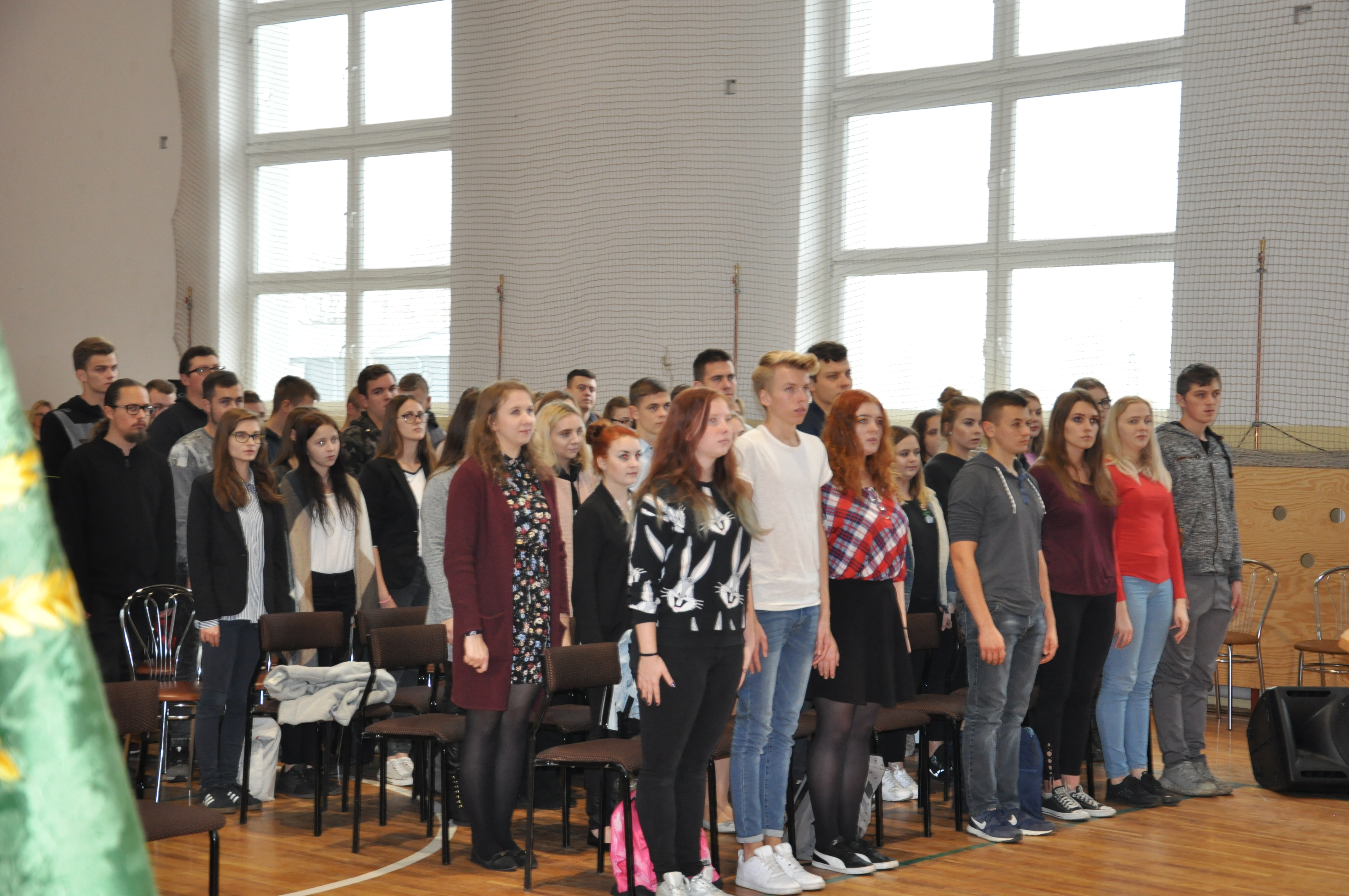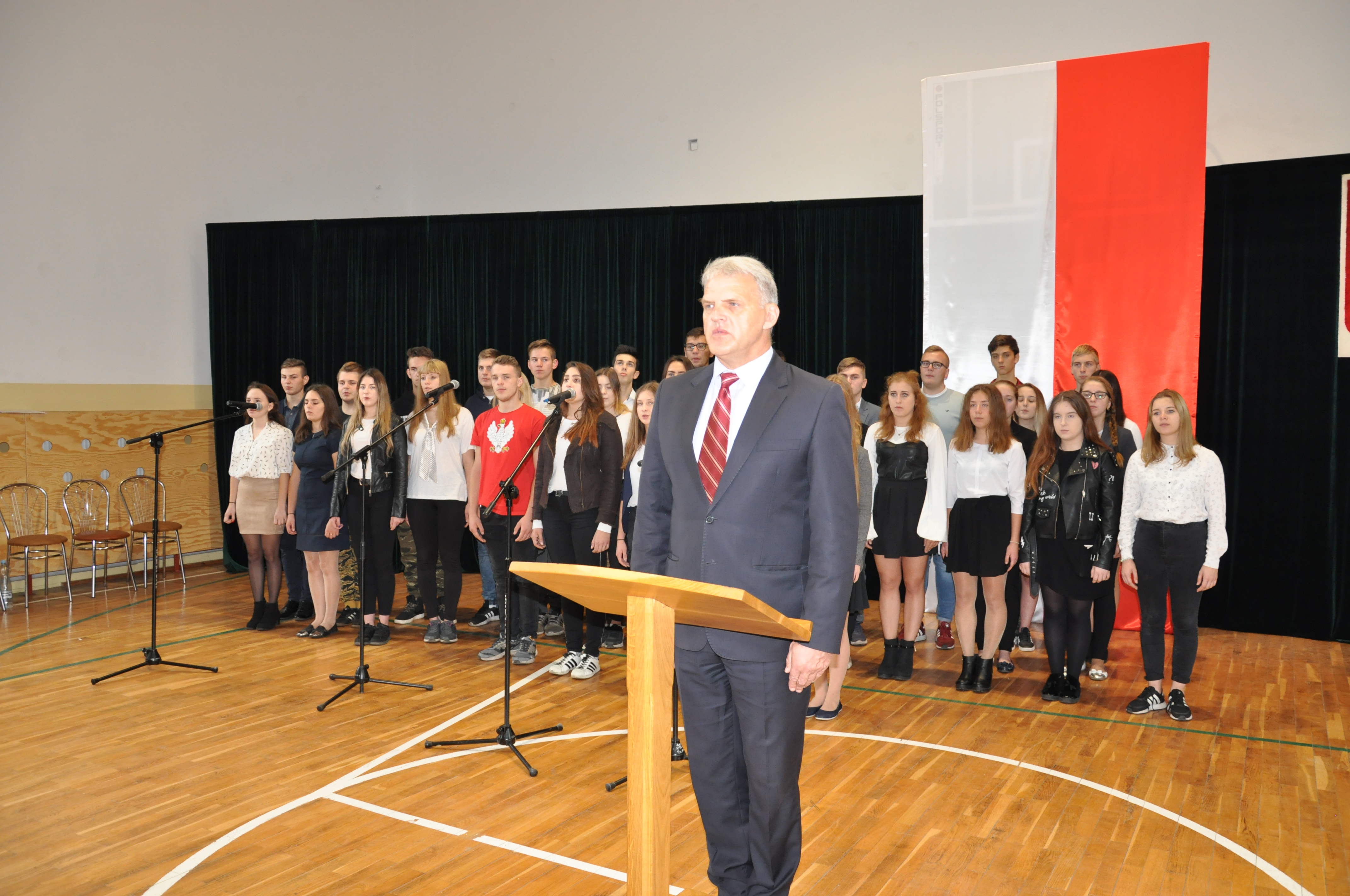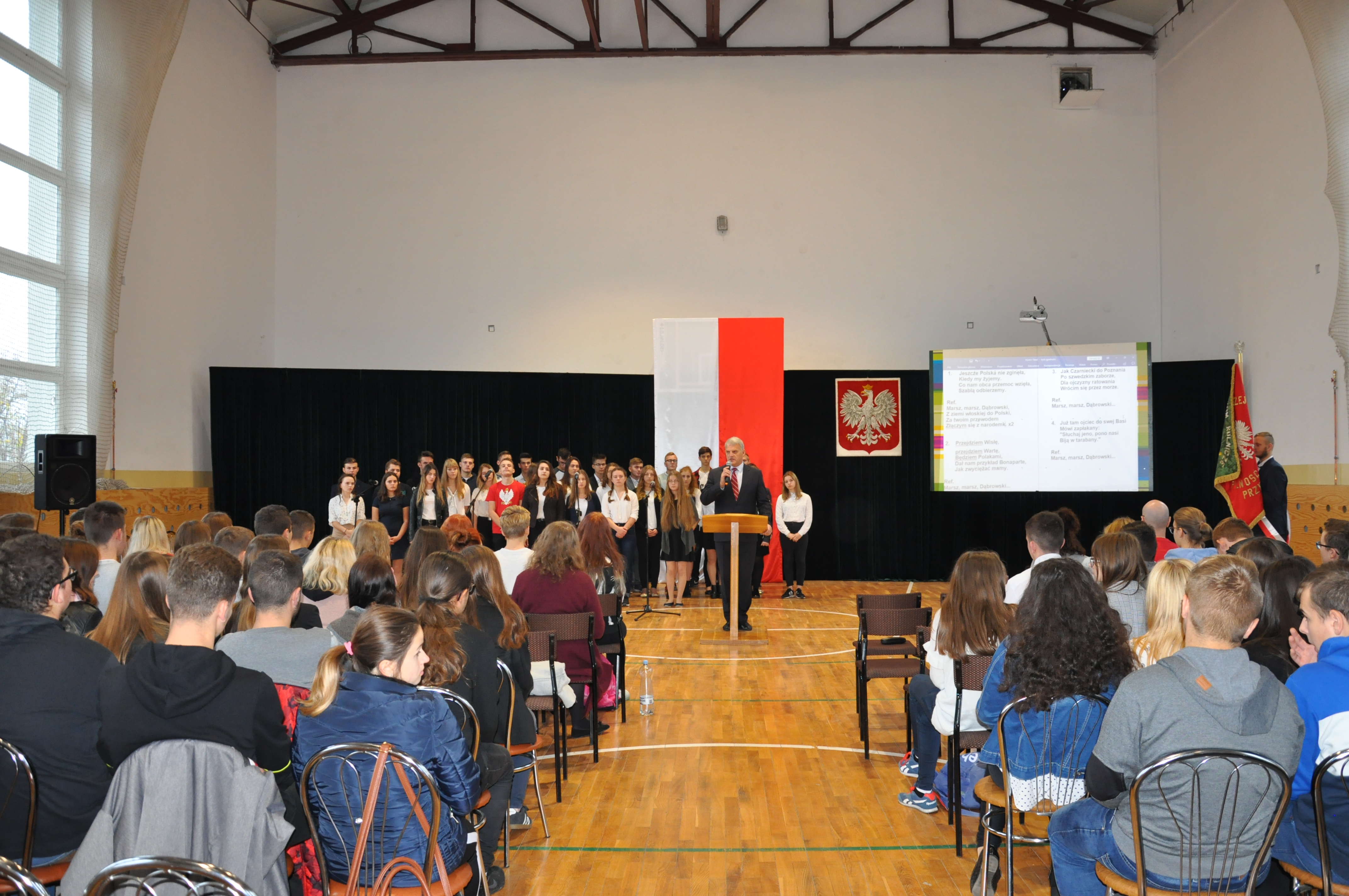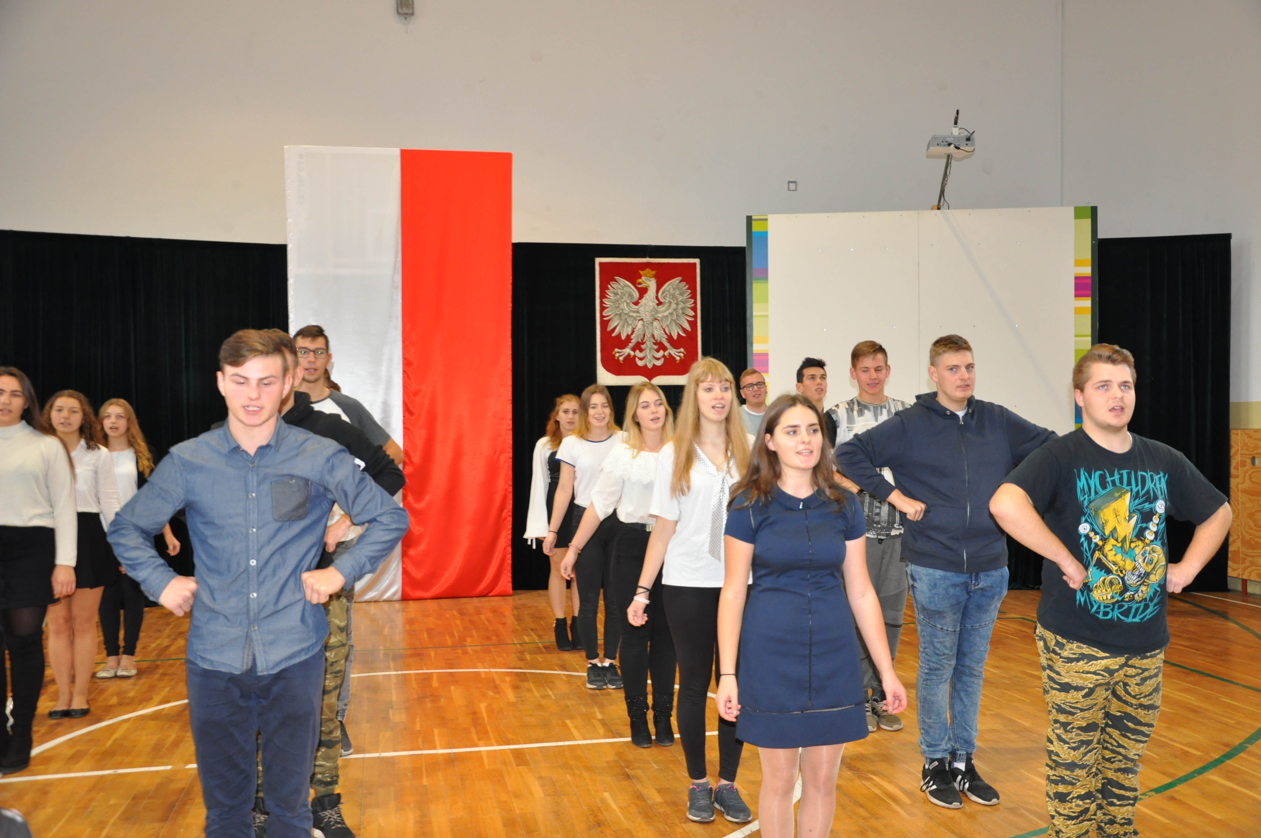 W ramach świętowania 100 rocznicy odzyskania przez Polskę niepodległości, w piątek, 9 listopada o godzinie 11.11 uczniowie, nauczyciele i pracownicy naszej szkoły zaśpiewali wspólnie cztery zwrotki hymnu państwowego.