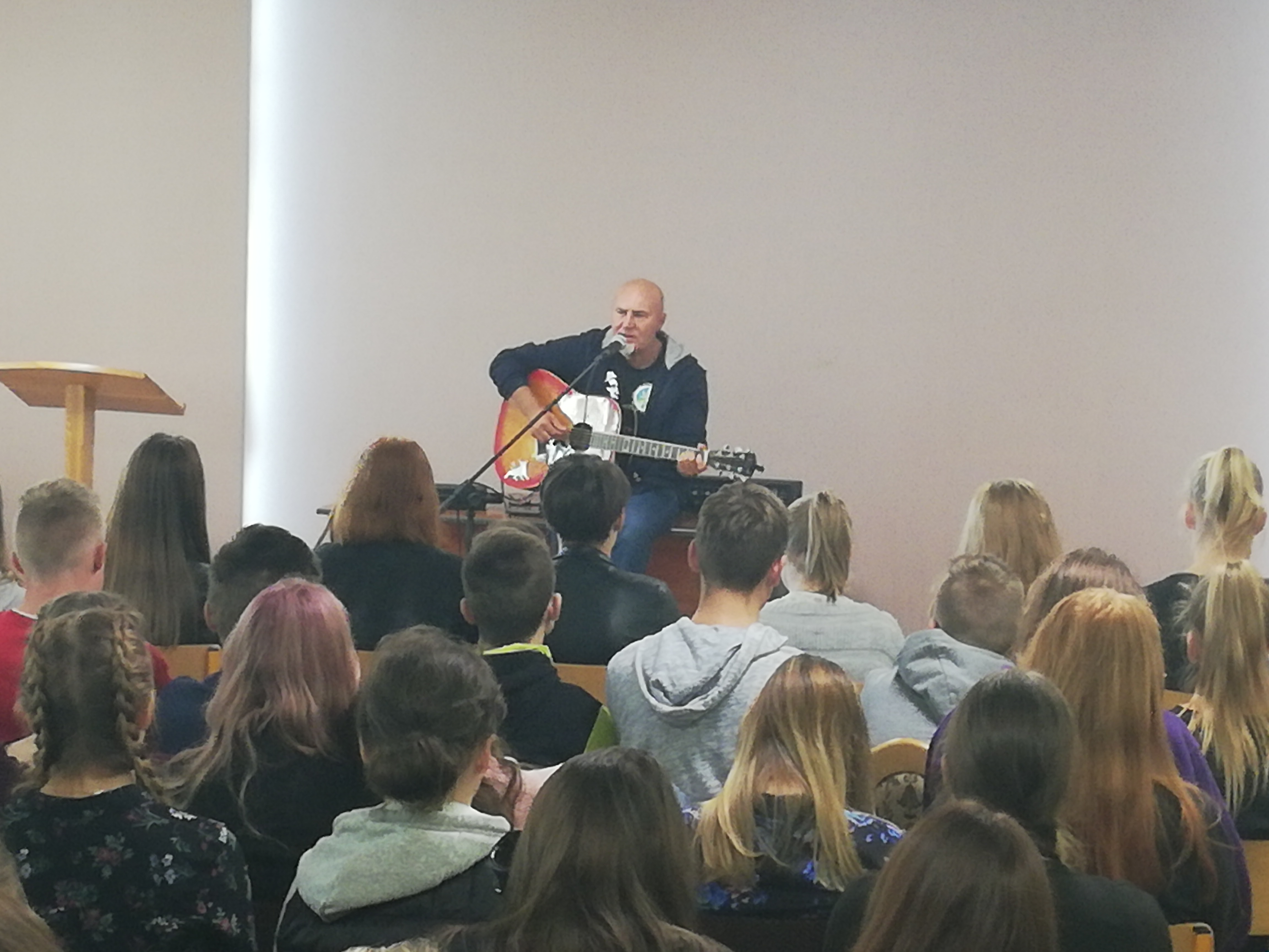 Jak co roku w naszej Szkole odbyły się profilaktyczne zajęcia edukacyjne, tym razem pod tytułem „Wspierajmy się”. Motywujący wykład z elementami edukacyjnymi i muzycznymi poprowadził Pan Sławomir Pyrko – profilaktyk-praktyk, terapeuta uzależnień, ale także muzyk, który na scenie występował razem z F.B.I. BLUES BAND, KASĄ CHORYCH, THE HARDWORKERS, BRACIA I SIOSTRY, BLUESFERAJNĄ, MARKIEM PIEKARCZYKIEM.