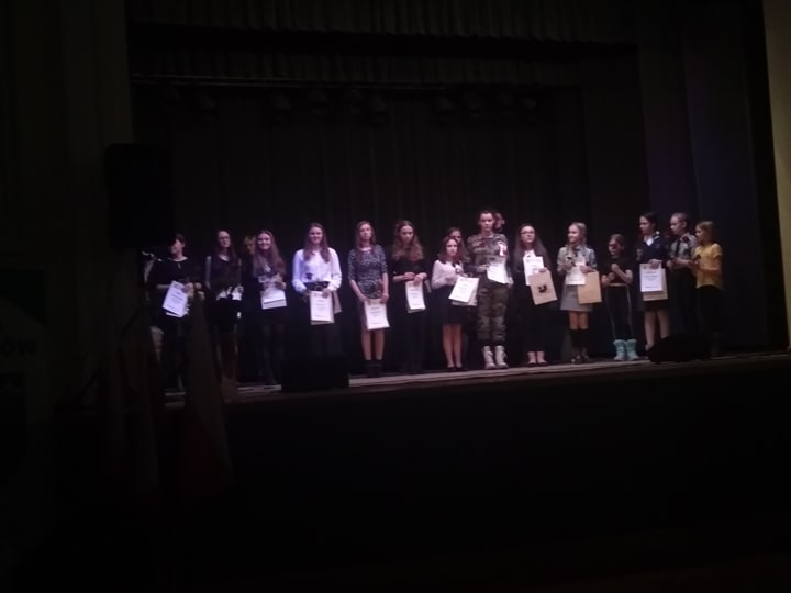W przeglądzie tym wzięło udział 2 uczniów z naszej szkoły, Marzena Witkowska uczennica klasy II i Jakub Żakieta uczeń klasy IV. Po przesłuchaniu wszystkich uczestników wyłoniono laureatów. Wśród nich znalazła się Marzena Witkowska, która zaśpiewała „Powrócisz tu” i „Ojczyzno ma „. Nasi uczniowie pięknie się zaprezentowali na scenie i zostali nagrodzeni wielkimi brawami.