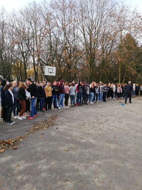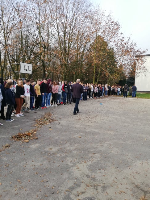 Dbając o bezpieczeństwo naszych uczniów, nauczycieli oraz pracowników administracji i obsługi, 27 listopada 2019 roku została przeprowadzona próbna ewakuacja. Po usłyszeniu sygnału alarmowego wszyscy znajdujący się w budynku szkolnym, zachowując wytyczne zawarte w instrukcji bezpieczeństwa pożarowego, bez paniki przedostali się drogami ewakuacyjnymi do punktu zbiórki, którym było boisko szkolne. Głównym celem przeprowadzonych ćwiczeń było zapoznanie uczniów i pracowników szkoły z praktycznym zastosowaniem procedur dotyczących zachowania się w przypadku wybuchu pożaru lub powstania innego zagrożenia dla życia i zdrowia. Pan dyrektor Stanisław Kosmowski podziękował wszystkim za sprawną ewakuację. Po odwołaniu alarmu uczniowie wrócili na lekcje.