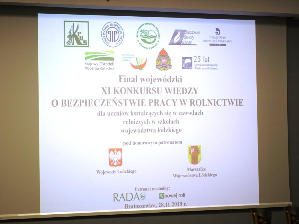Konkurs, odbył się w 28 listopada 2019 roku w Łódzkim Ośrodku Doradztwa Rolniczego w Bratoszewicach. Jest on skierowany do uczniów kształcących się w zawodach rolniczych ze szkół województwa łódzkiego. Głównymi organizatorami i fundatorami nagród są: Oddział Regionalny KRUS w Łodzi, Okręgowy Inspektorat Pracy w Łodzi, ŁODR w Bratoszewicach, Kuratorium Oświaty w Łodzi, Towarzystwo Ubezpieczeń Wzajemnych „TUW” w Łodzi oraz instytucje wchodzące w skład wojewódzkiej komisji ds. BHP w rolnictwie indywidualnym: Oddział Terenowy Krajowego Ośrodka Wsparcia Rolnictwa w Łodzi, Łódzki Oddział Regionalny Agencji Restrukturyzacji i Modernizacji Rolnictwa, Izba Rolnicza Województwa Łódzkiego, Duszpasterstwo Rolników Archidiecezji Łódzkiej, Komenda Wojewódzka Państwowej Straży Pożarnej w Łodzi oraz Marszałek Województwa Łódzkiego Grzegorz Schreiber.