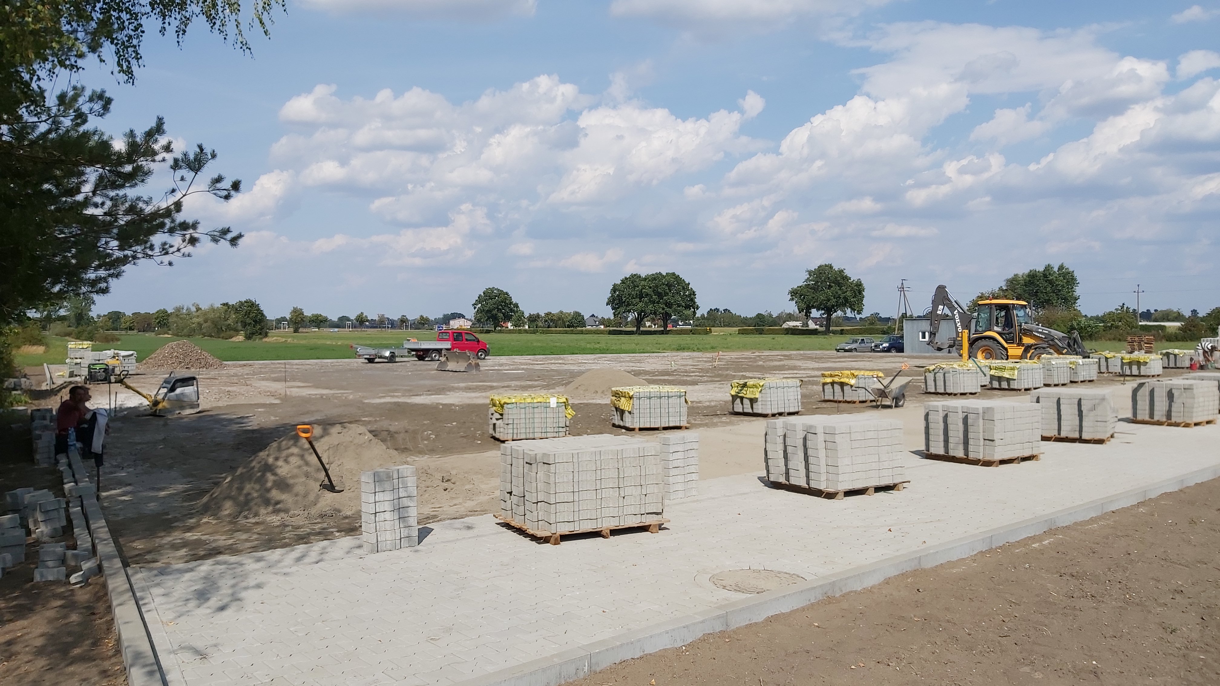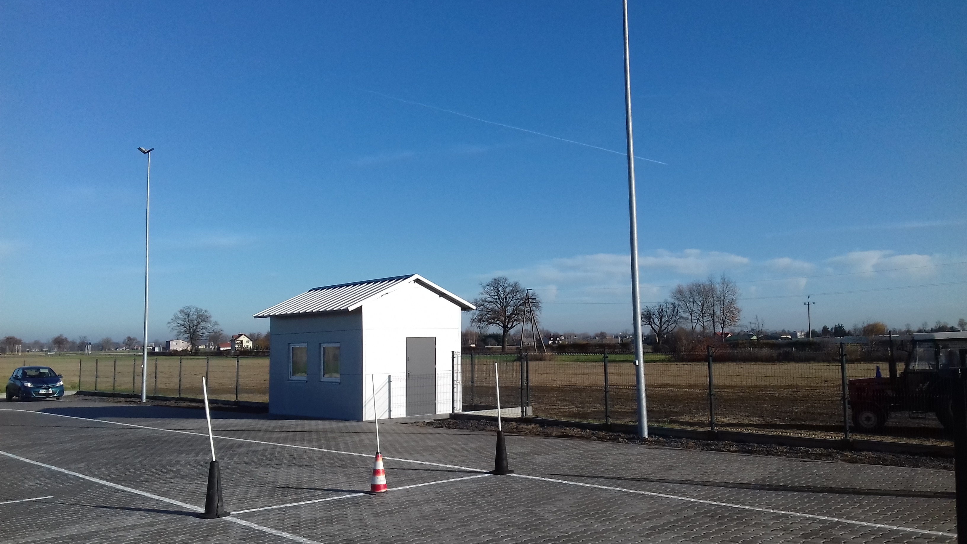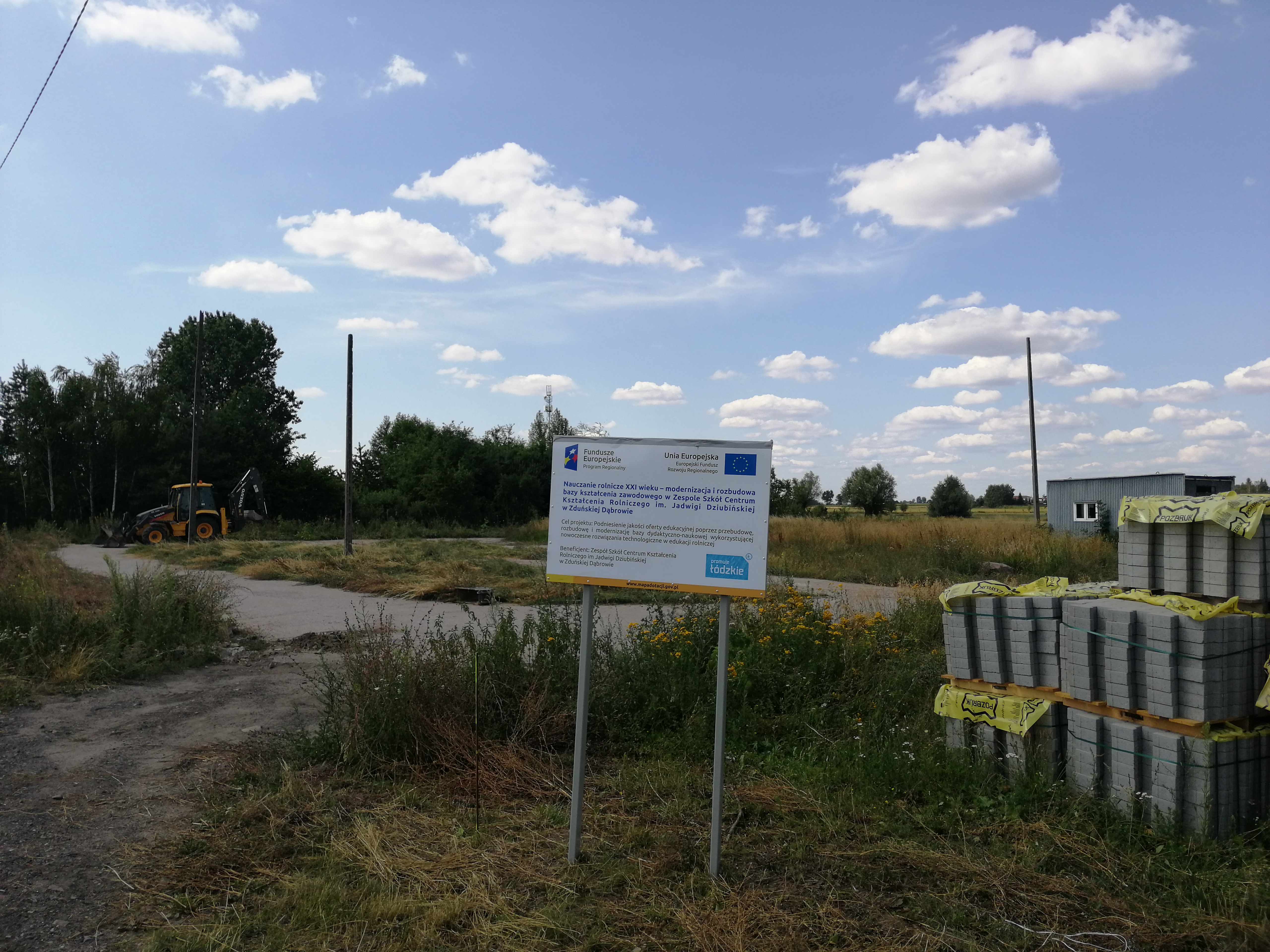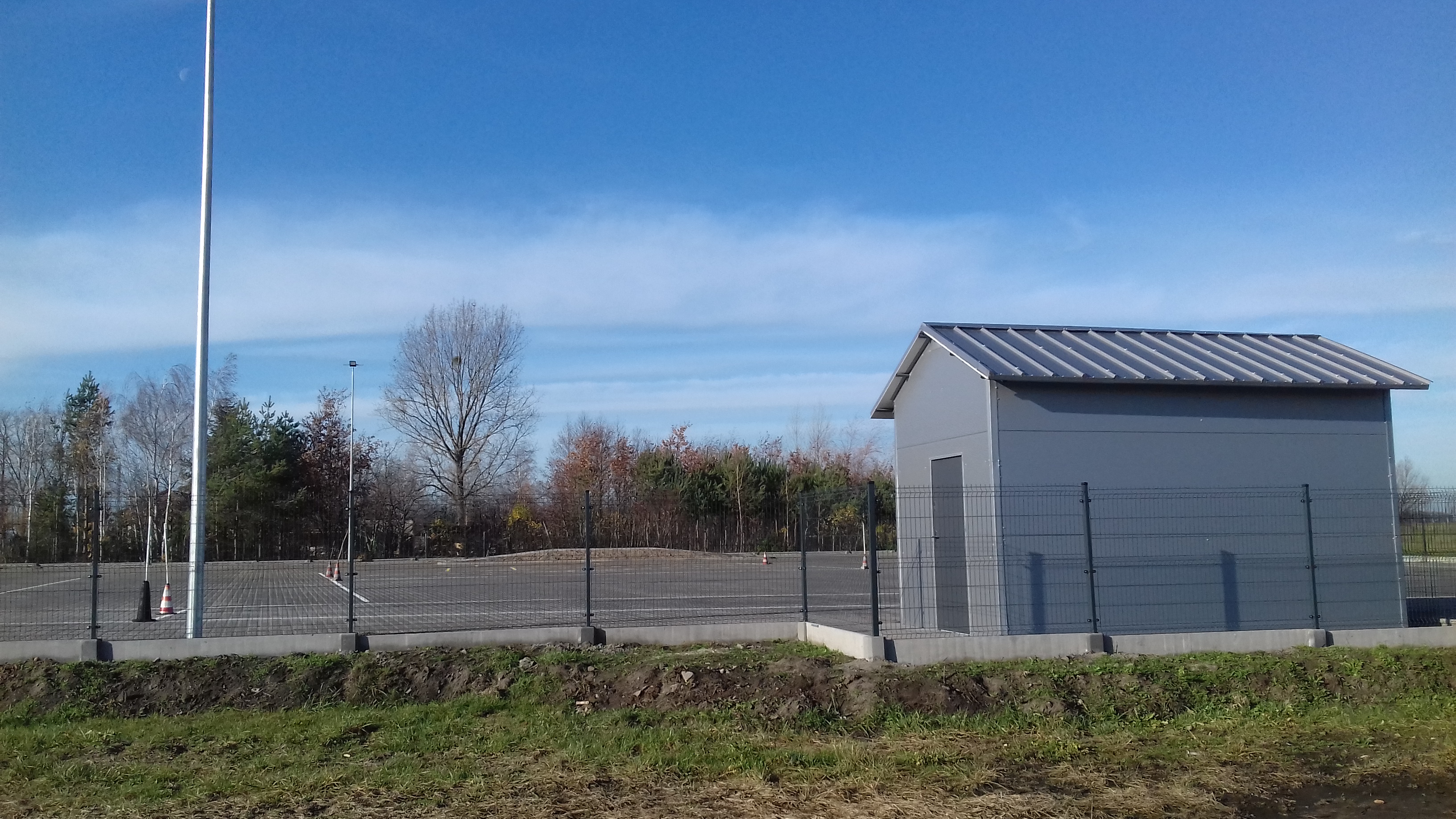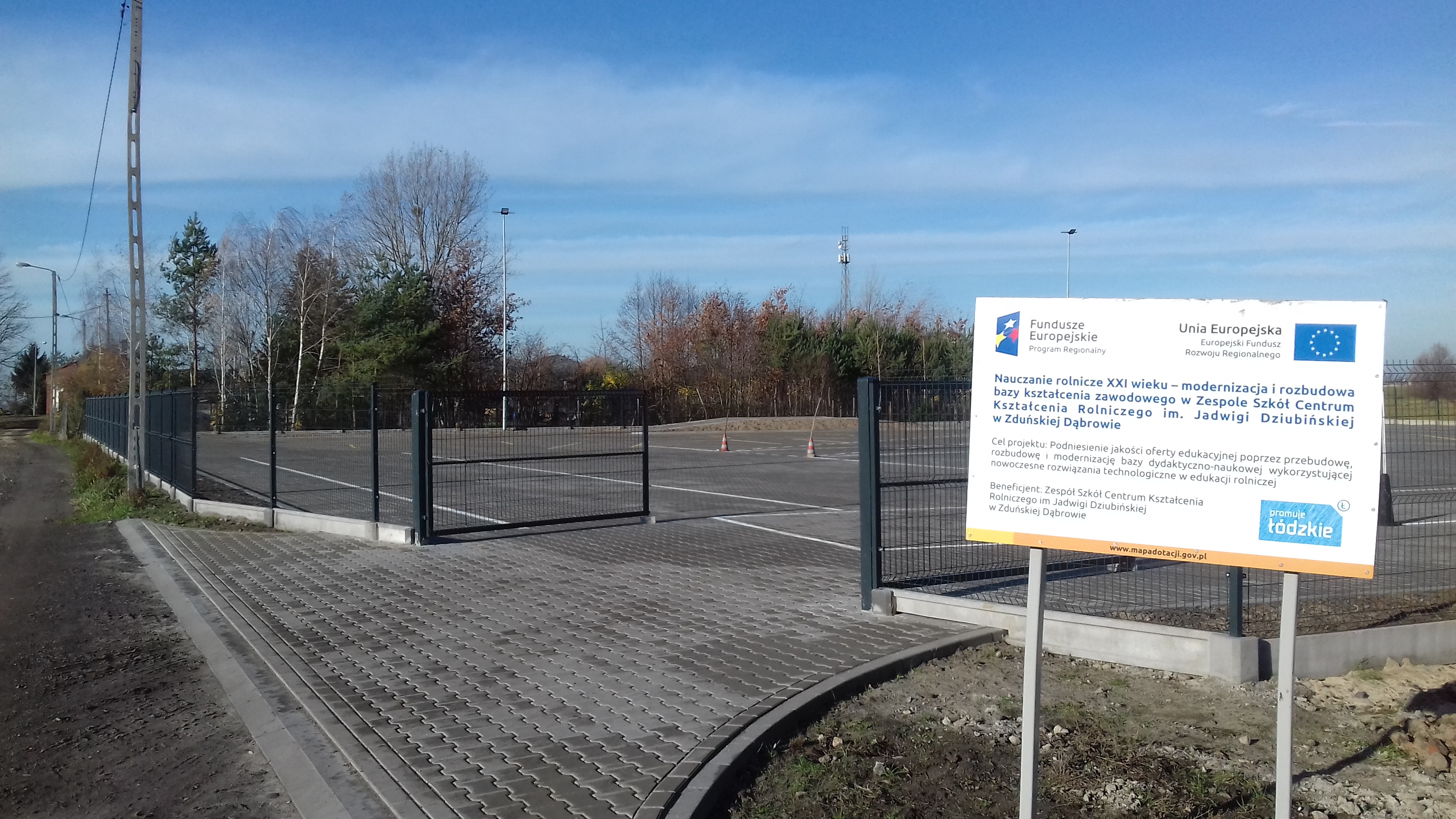 Przebudowa i rozbudowa poligonu nauki jazdy na nowoczesny plac manewrowy. Firma wykonawcza ENERGO-BUD Przemysław Trafalski OLESZCZE 46, 99-319 Dobrzelin, na podstawie opracowanych projektów budowlanych, wykonała prace budowalne na terenie starego poligonu do nauki jazdy. Teren starego poligonu został utwardzony za pomocą kostki przemysłowej typu H grubości 8 cm. Pod kostką teren został ustabilizowany i zagęszczony kruszywem i podsypką betonową zgodnie z projektem przebudowy. Na placu manewrowym zgodnie z Rozporządzeniem dot. Szkolenia kandydatów na kierowców zostały wymalowane linie do nauki jazdy do szkolenia kierowców na kat. B i T. Została wybudowana górka podjazdowa oraz budynek dla instruktora nauki jazdy. Wokół placu zostały ustawione lampy oświetleniowe a do budynku doprowadzono instalację elektryczną. Plac został ogrodzony za pomocą siatki panelowej. W ogrodzeniu zamontowano bramę wjazdową. Między placem manewrowym a ogrodzeniem została nawieziona ziemia i posiano trawę. Do pełnego wyposażenia placu zakupiono zgodnie ze specyfikacją znaki drogowe i pachołki ograniczające parkingi i wyznaczające tor jazdy. Roboty realizowano w okresie od dnia 16.05.2019 r. do dnia 31.10.2019 r. Ostateczny odbiór placu manewrowego przez komisję został przeprowadzony w dniu 31.10.2019 r. Plac manewrowy jest współfinansowany przez Unię Europejską z Europejskiego Funduszu Rozwoju Regionalnego w Ramach Programu Operacyjnego Województwa Łódzkiego na lata 2014-2020.