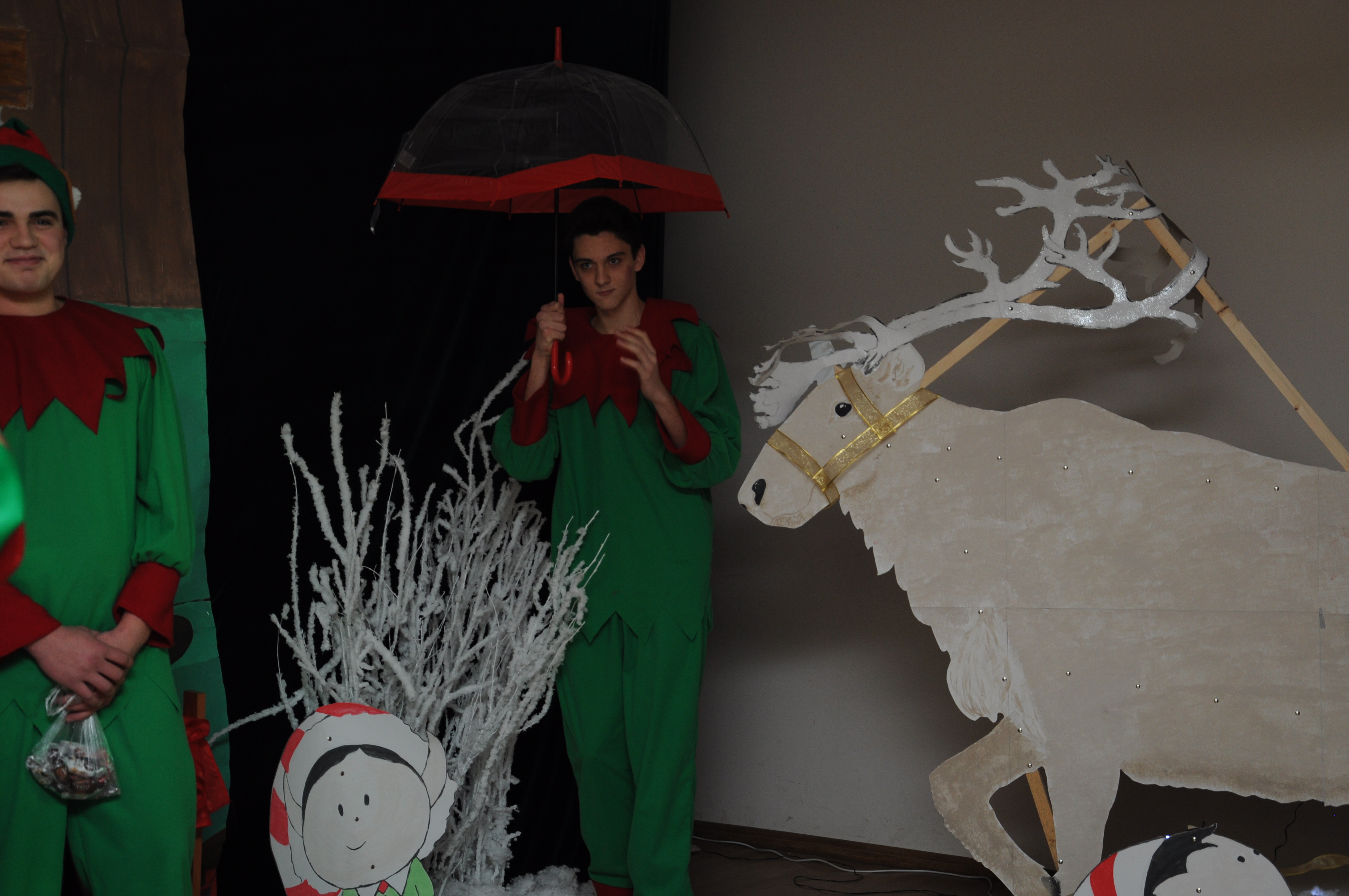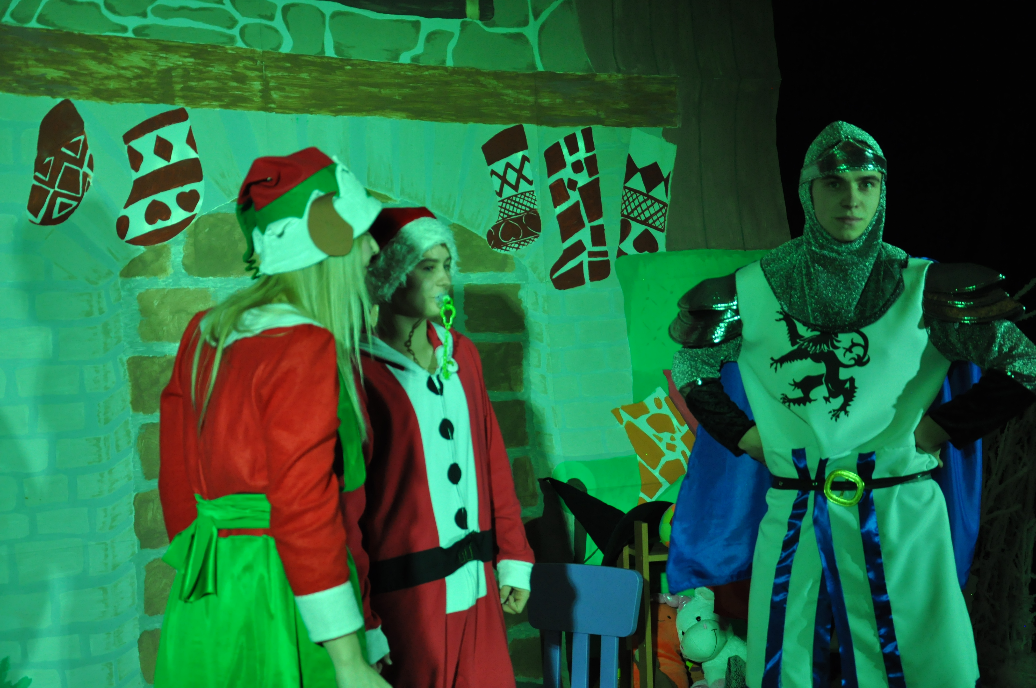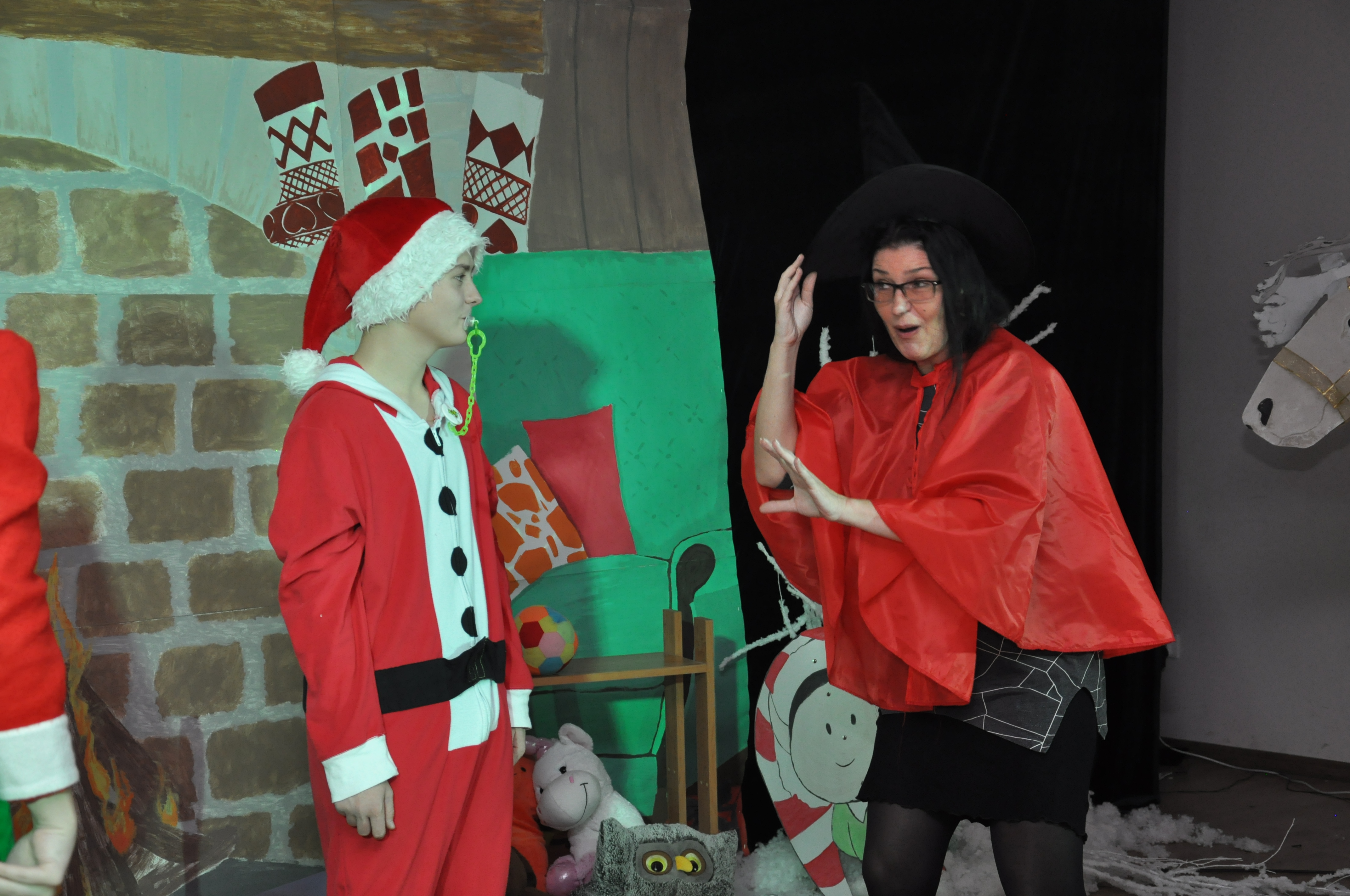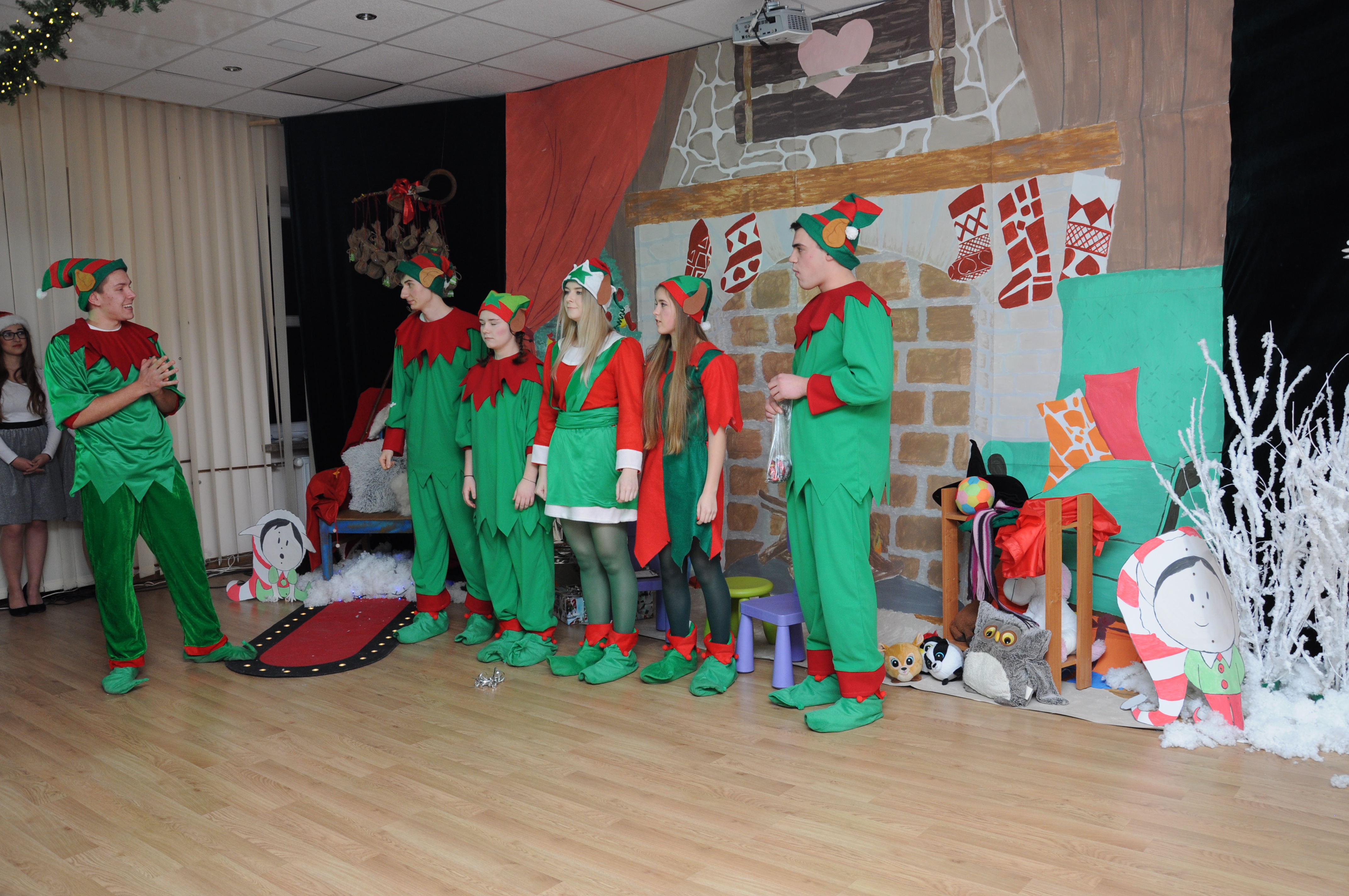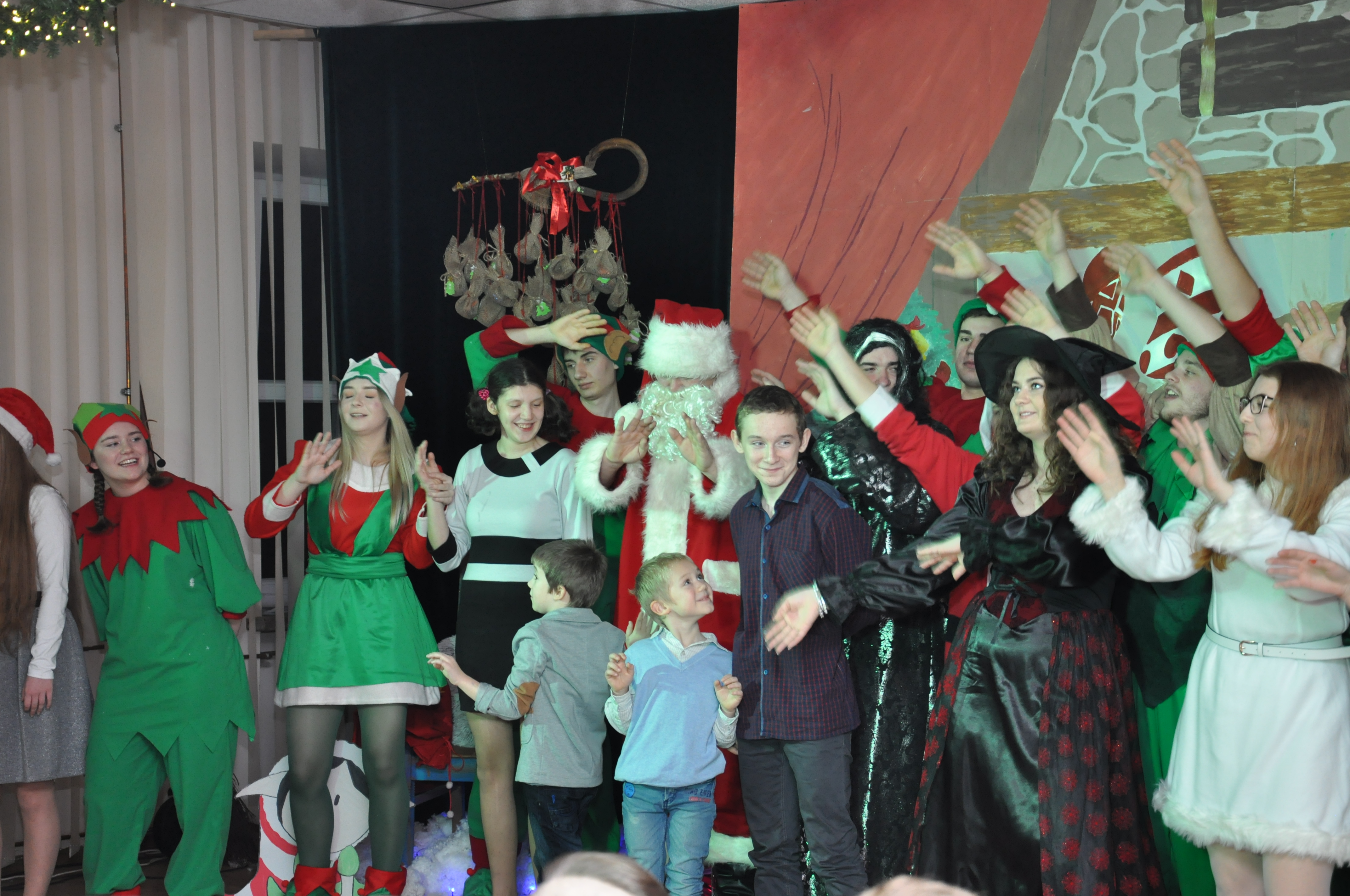 Po wzruszającej przemowie na barwnie udekorowaną scenę sali konferencyjnej szkoły w Zduńskiej Dąbrowie wkroczyli uczniowie, którzy zaprezentowali publiczności jasełkową inscenizację pod wdzięcznym tytułem: „Świąteczny galimatias w krainie Świętego Mikołaja”. Postacie elfów, czarownic, rycerzy i oczywiście Świętego Mikołaja ukazane w sytuacjach zabawnych gagów wprawiły, zwłaszcza najmłodsze audytorium, w nastój rozbawienia wywołujący na twarzach naszych milusińskich grymas uśmiechu oraz radości płynącej prosto z serca. Świąteczną atmosferę podczas występu skutecznie podsycały również przepiękne, polskie piosenki w wykonaniu uczennic naszej szkoły.