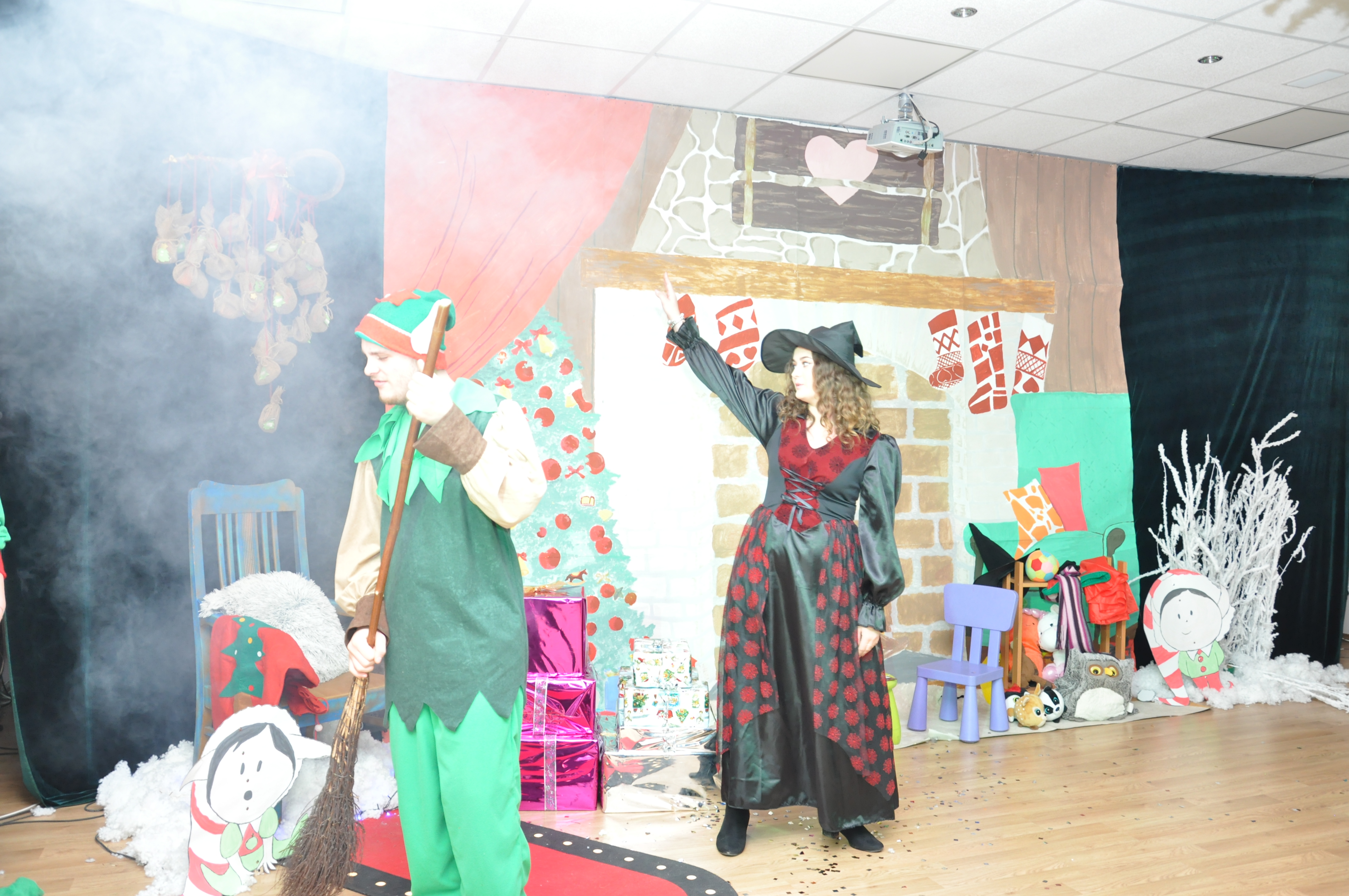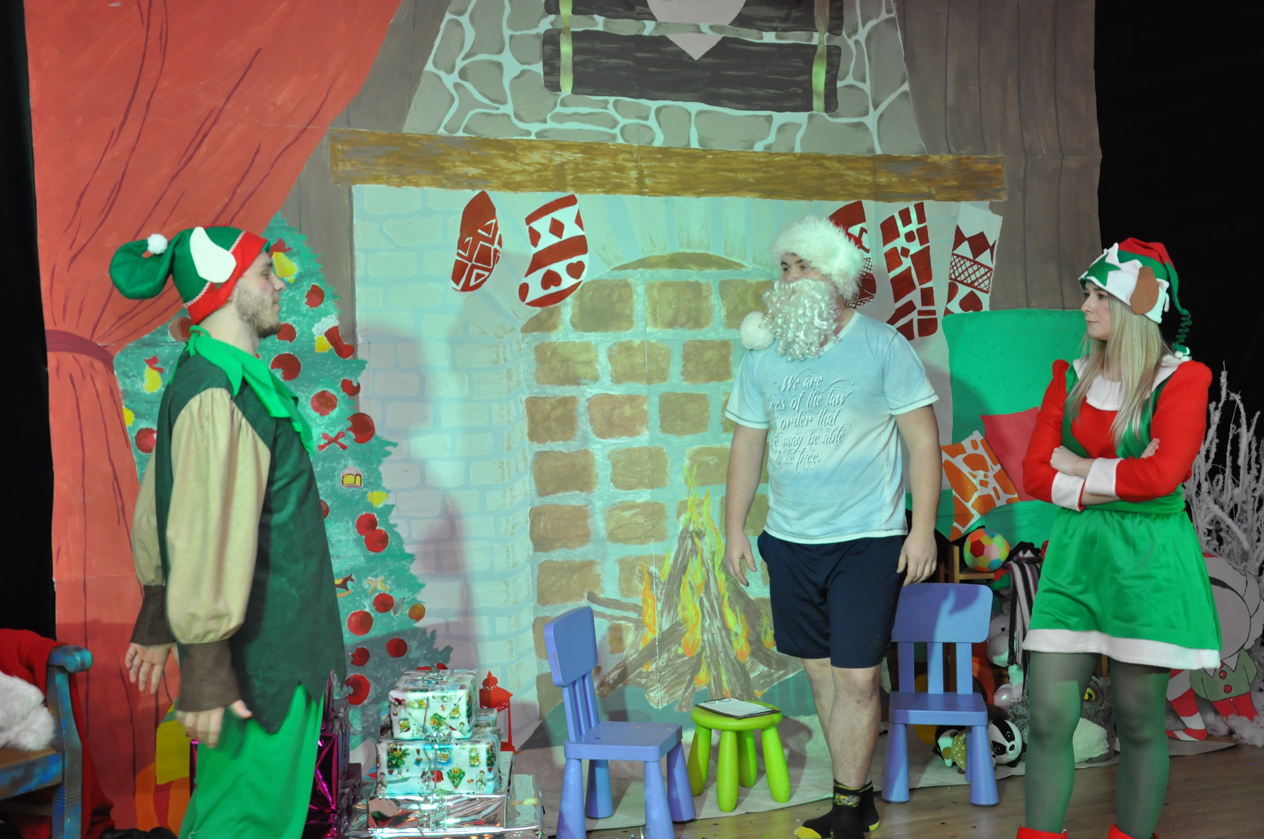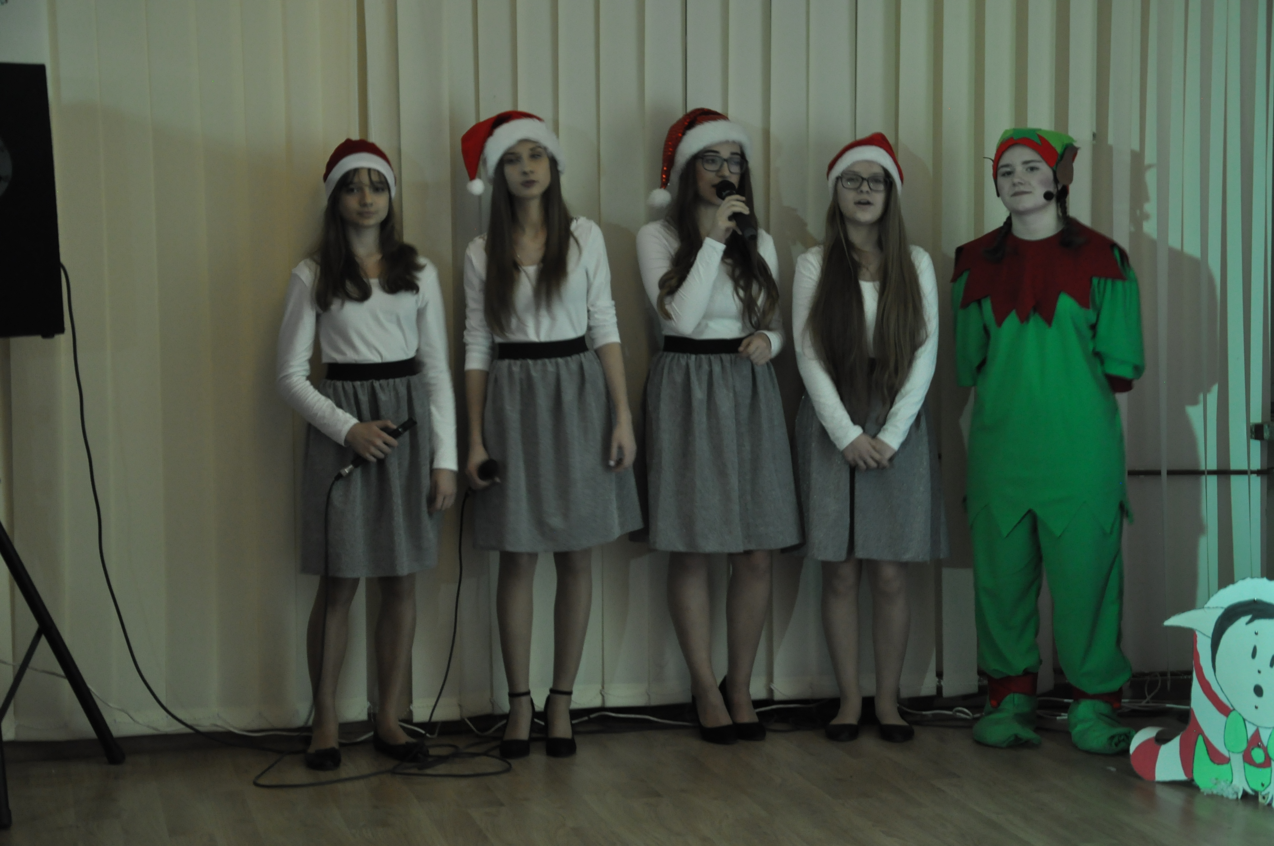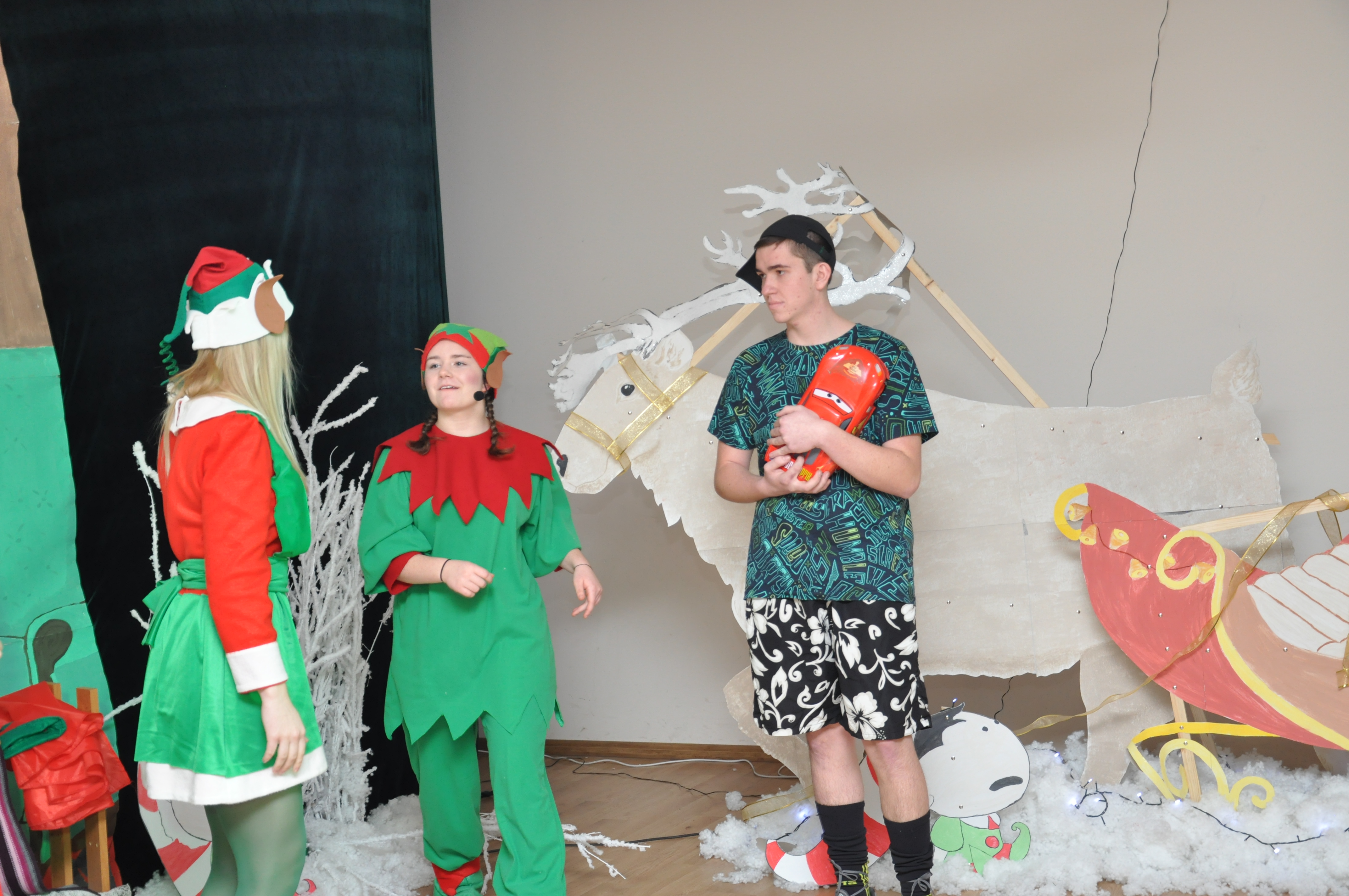Po wzruszającej przemowie na barwnie udekorowaną scenę sali konferencyjnej szkoły w Zduńskiej Dąbrowie wkroczyli uczniowie, którzy zaprezentowali publiczności jasełkową inscenizację pod wdzięcznym tytułem: „Świąteczny galimatias w krainie Świętego Mikołaja”. Postacie elfów, czarownic, rycerzy i oczywiście Świętego Mikołaja ukazane w sytuacjach zabawnych gagów wprawiły, zwłaszcza najmłodsze audytorium, w nastój rozbawienia wywołujący na twarzach naszych milusińskich grymas uśmiechu oraz radości płynącej prosto z serca. Świąteczną atmosferę podczas występu skutecznie podsycały również przepiękne, polskie piosenki w wykonaniu uczennic naszej szkoły.