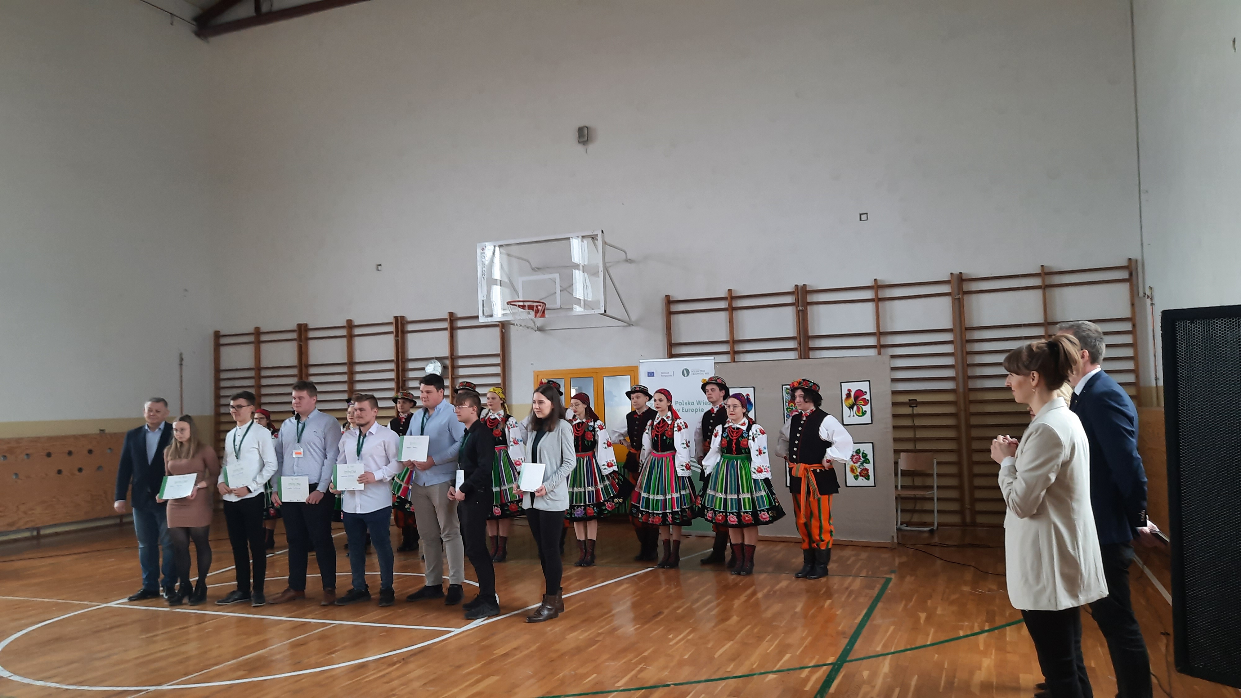 Piątek był już dniem pełnym zmagań. Uczestnicy z 12 placówek rywalizowali ze sobą podczas pisania testu, który składał się z 50 pytań. Finał etapu regionalnego okazał się być szczęśliwy dla drużyny naszej szkoły, ponieważ zajmując drugie miejsce zakwalifikowała się do etapu krajowego Olimpiady. Serdecznie gratulujemy zwycięzcom i życzymy powodzenia w ostatnim, decydującym etapie. Miłym zwieńczeniem zmagań konkursowych był występ szkolnego zespołu ludowego ,,Dąbrowskie Pasiaki”.