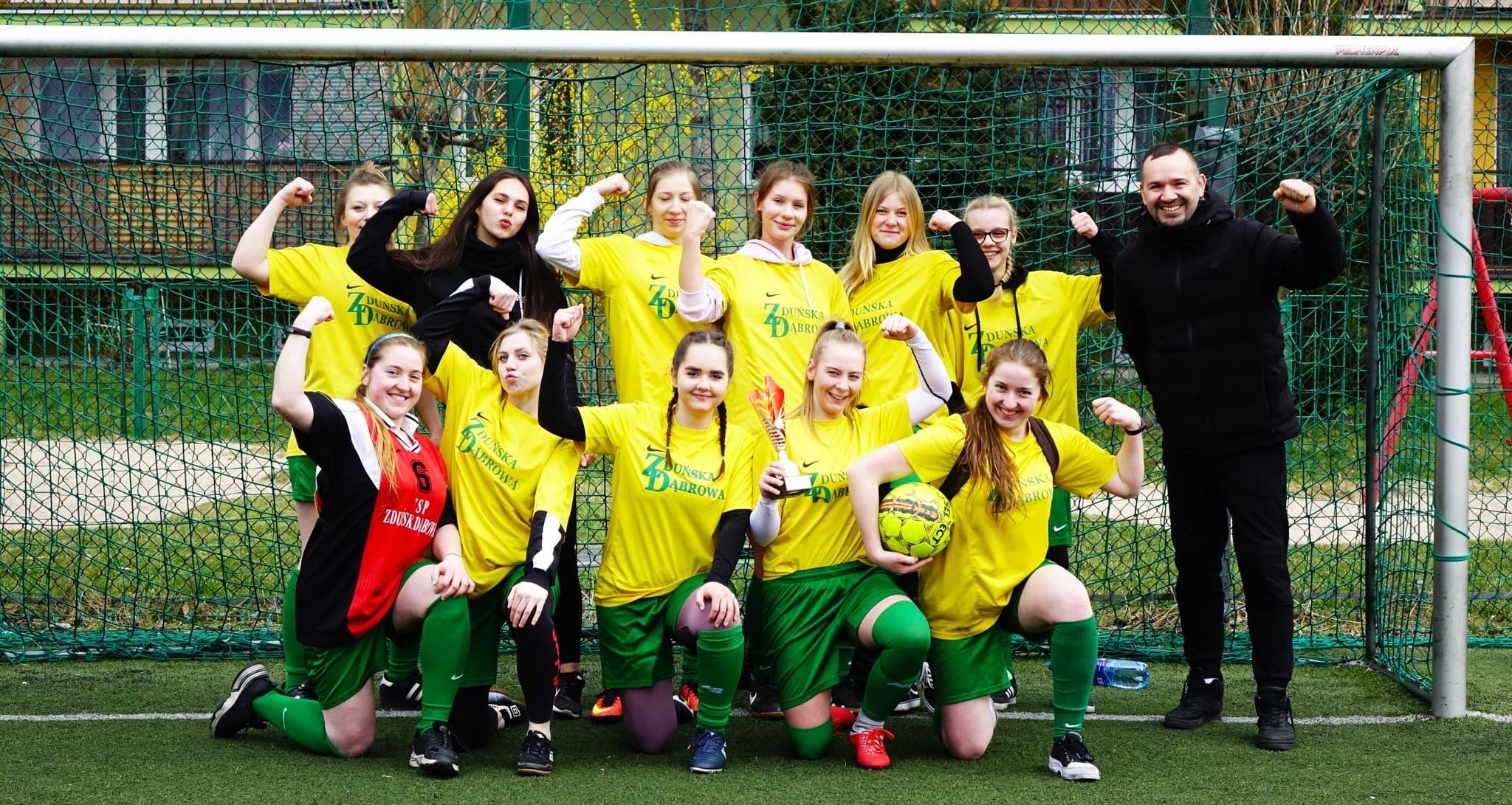 Znakomity występ zanotowały piłkarki nożne naszej szkoły podczas Powiatowej Licealiady w piłce nożnej dziewcząt. Zawody rozegrano na „Orliku” przy ulicy Bolimowskiej w Łowiczu. Nasz zespół znalazł się w grupie A, rywalizując z I LO w Łowiczu oraz ZSP CKZ nr 2 w Łowiczu. Eliminacje grupowe rozpoczęły się po naszej myśli, prowadziliśmy już 2:0 z I LO i niestety zamiast 3 punktów zremisowaliśmy pierwsze spotkanie 2:2. Drugi mecz rozegraliśmy z dziewczętami z „Blichu”. Po zaciętej walce mecz znów kończy się podziałem punktów, mimo kilku bardzo dobrych okazji do strzelenia bramki. W półfinale walczyliśmy z dziewczętami z ZSP nr 4 w Łowiczu. Dziewczęta z „Ekonomika” były faworytem całego turnieju, więc czekało nas bardzo trudne spotkanie. Dobra gra od początku zaowocowała piękną bramką w wykonaniu Julii Klocińskiej i do przerwy prowadziliśmy 1:0. W drugiej części spotkania nasze rywalki doprowadziły niestety do wyrównania i mecz miały rozstrzygnąć rzuty karne, w których nie daliśmy naszym rywalkom szans. Pewnie wykonane rzuty karne przez Marysię Stępniewską i Aleksandrę Marosek, do tego dwie kapitalne parady bramkarskie Kingi Kowalczyk dały nam upragniony awans do finału. Warto podkreślić, że Kinga, oprócz dwóch obronionych rzutów karnych zaliczyła świetny występ w całym turnieju popisując się bardzo dobrymi interwencjami w bramce. W finale nasze dziewczęta znów spotkały się z I LO. Bohaterką spotkania została Julia Klocińska, która jak się okazało strzeliła jedyną bramkę w tym meczu. Wynik końcowy 1:0 i …..mamy to!!! Pierwsze miejsce w zawodach i awans do etapu rejonowego. GRATULUJEMU I ŻYCZYMY DALSZYCH SUKCESÓW.