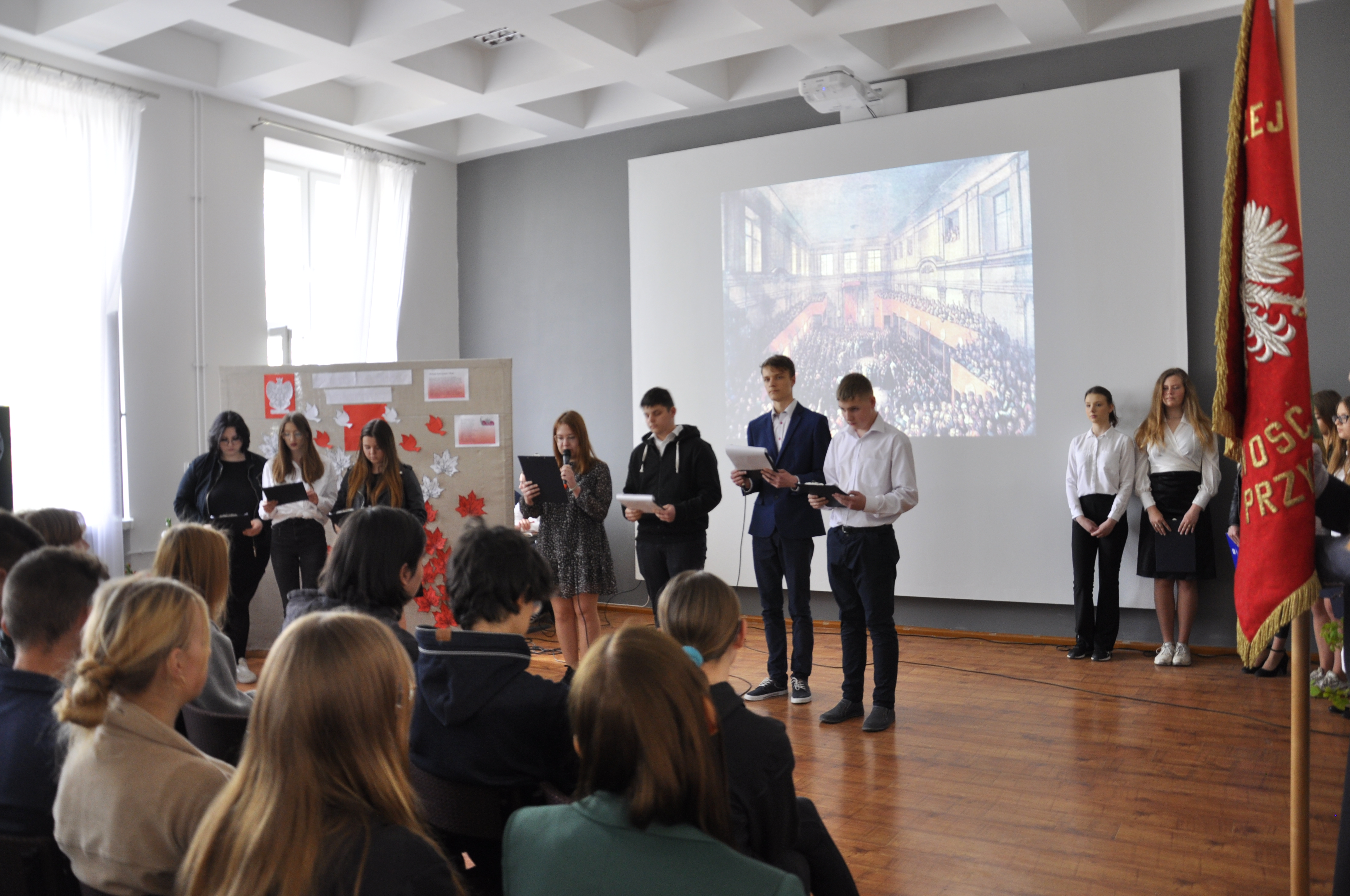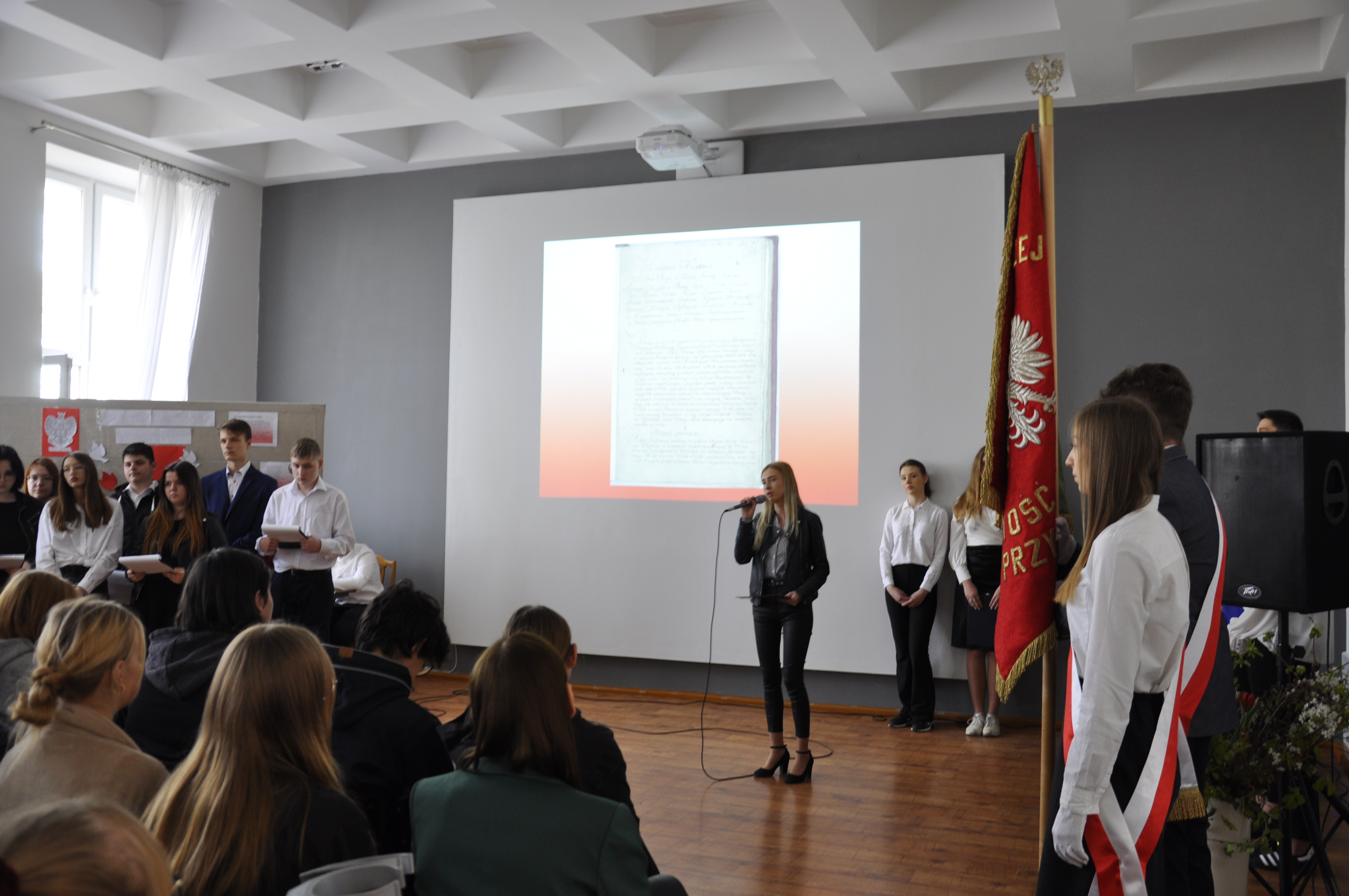 W czwartkowe przedpołudnie 28 kwietnia 2022 roku uczniowie Zespołu Szkół Centrum Kształcenia Rolniczego im. Jadwigi Dziubińskiej w Zduńskiej Dąbrowie uczestniczyli w akademii przygotowanej z okazji obchodów 231 rocznicy uchwalenia Konstytucji 3 Maja.