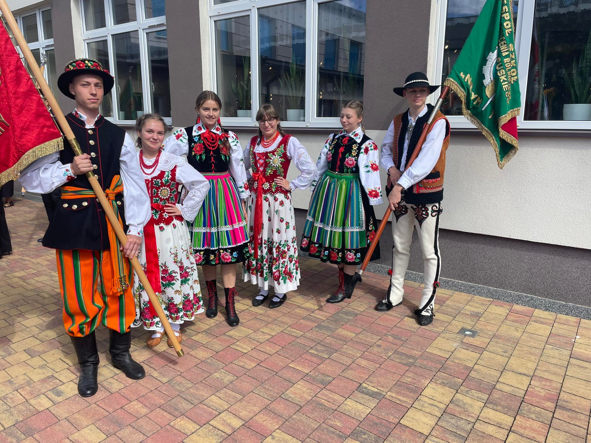 5 września 2022 roku delegacja Zespołu Szkół Centrum Kształcenia Rolniczego im. Jadwigi Dziubińskiej w Zduńskiej Dąbrowie z panem Dyrektorem Stanisławem Kosmowskim na czele wzięła udział w centralnej inauguracji roku szkolnego 2022/2023 szkół rolniczych prowadzonych przez Ministra Rolnictwa i Rozwoju Wsi, która miała miejsce w Zespole Szkół Centrum Kształcenia Rolniczego im. Jadwigi Dziubińskiej w Golądkowie. Uczniowską brać naszej szkoły reprezentowali członkowie pocztu sztandarowego w dwóch zmianach występujących zarówno w strojach galowych jak i regionalnych. Wraz z przedstawicielami ponad pięćdziesięciu innych szkół rolniczych podległych MRiRW wzięli oni udział w uroczystej mszy świętej, która odbyła się w kościele parafialnym p.w. Świętej Trójcy w Winnicy, a następnie w oficjalnej części tego niezwykle ważnego w kalendarzu edukacyjnym przedsięwzięcia mającego miejsce już na terenie samej szkoły w Golądkowie. Zza kulisowych rozmów uczestników imprezy dało się wysnuć wniosek, iż największe wrażenie na nich zrobili uczniowie naszej szkoły oraz szkoły w Nowym Targu ubrani w regionalne stroje łowickie oraz góralskie. Tak to już jest, że wszędzie tam gdzie pojawią się łowickie dziewczęta i chłopaki jak parowe młyny, tam wyrazom zachwytu, uznania i szacunku dla właściwego pielęgnowania lokalnych tradycji nie ma końca.