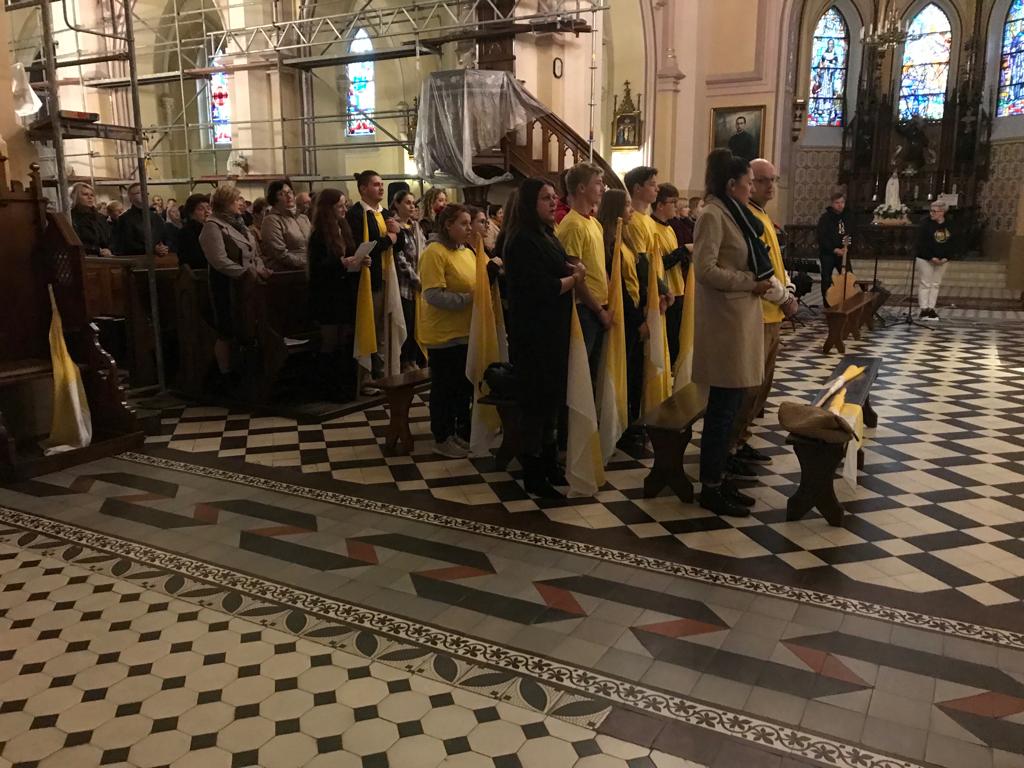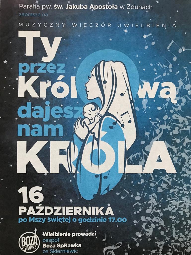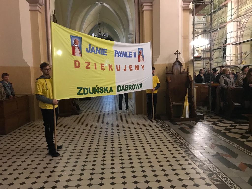 Uczniowie i nauczyciele (25 osób) jako przedstawiciele ZSCKR w Zduńskiej Dąbrowie uczestniczyli 16 października w parafialnych obchodach Dnia Papieskiego w kościele pw. Św. Jakuba apostoła w Zdunach. W programie była Msza święta dziękczynna za życie i pontyfikat papieża Jana Pawła II, a następnie koncert uwielbienia zespołu Boża SpRawka ze Skierniewic.