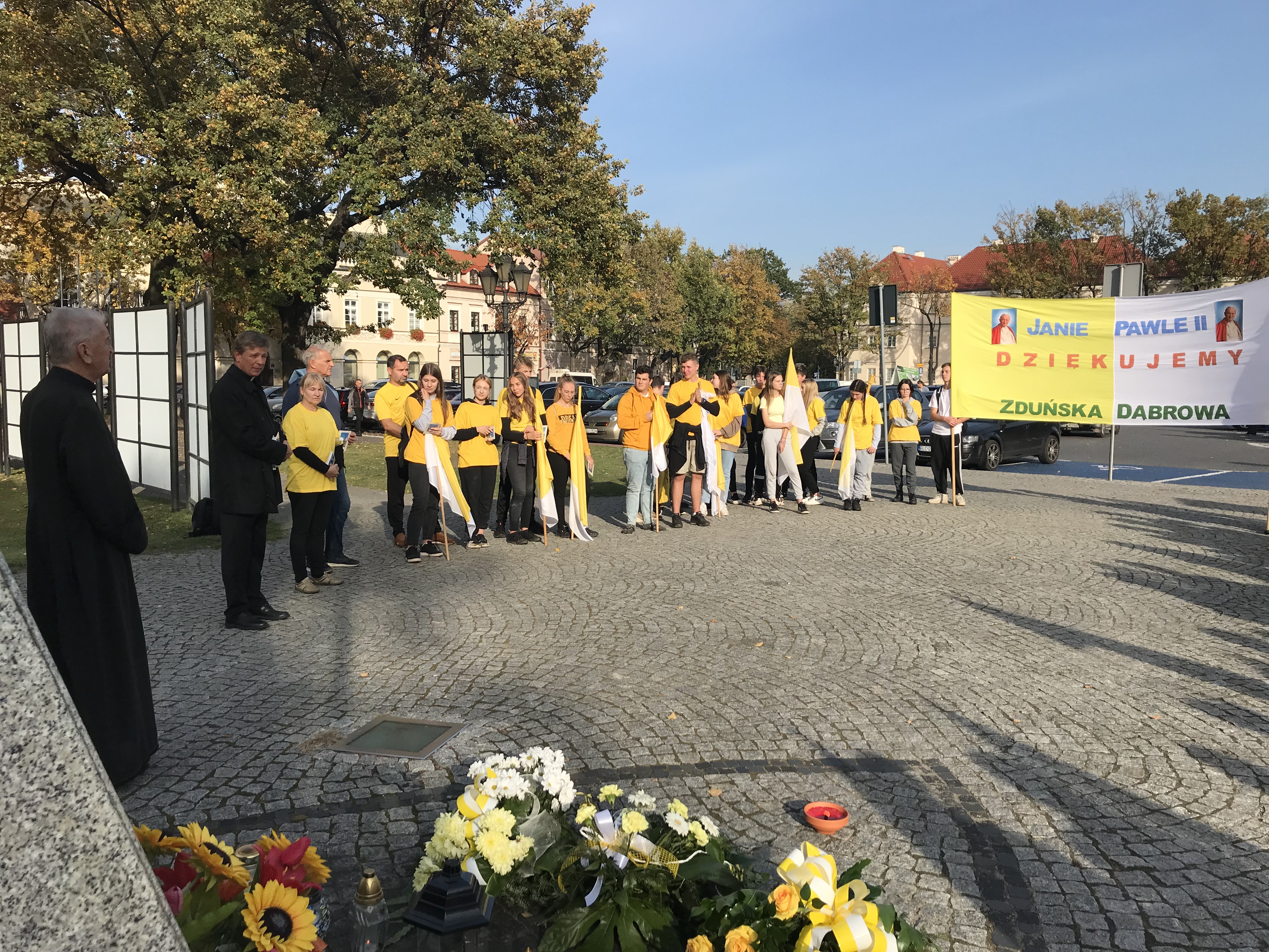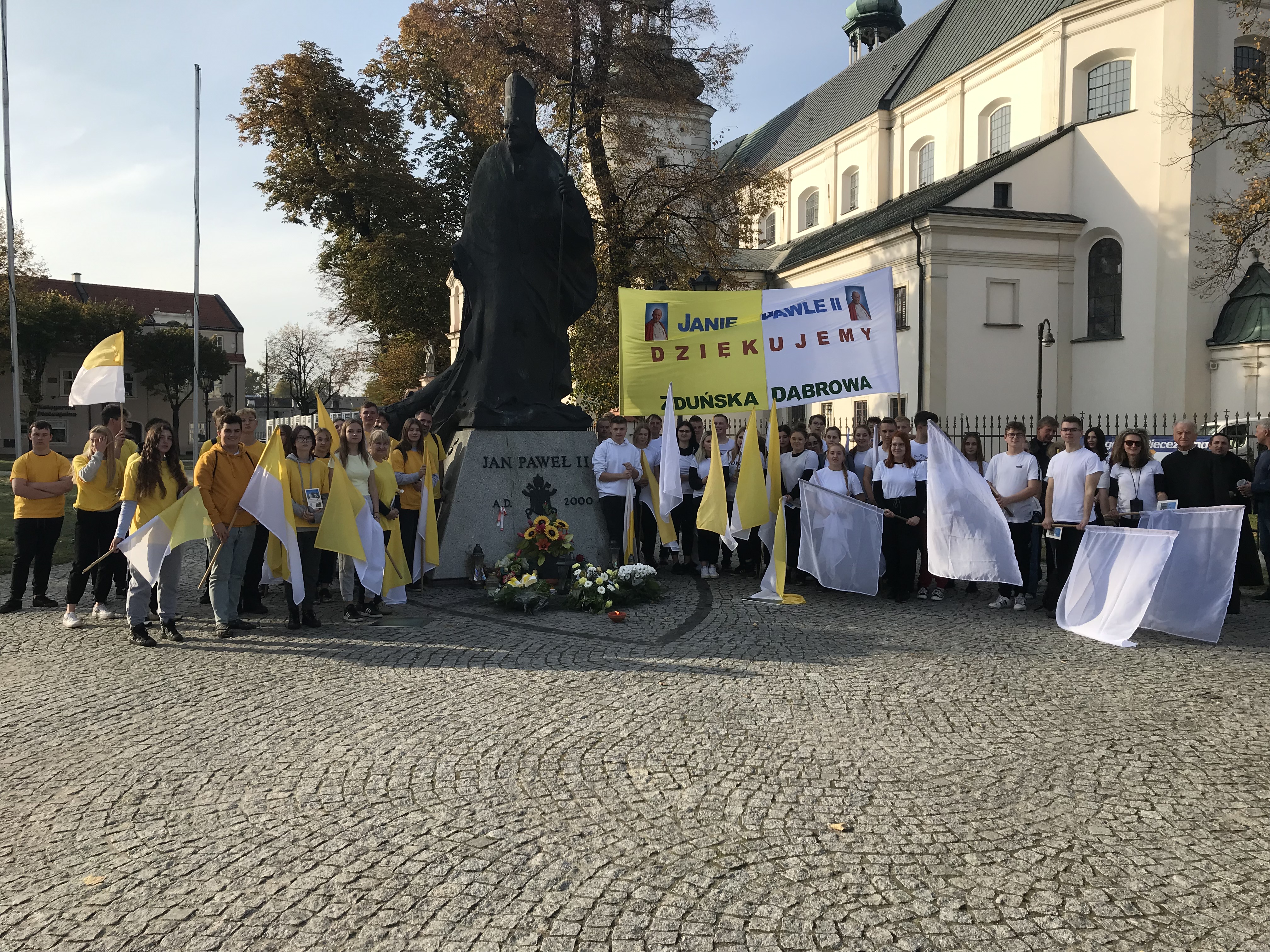 Po parafialno-kościelnych obchodach Dnia Papieskiego (m.in. Różaniec, Msza święta i koncert uwielbienia skierniewickiego zespołu Boża SpRawka), które miały miejsce 16 października, następnego dnia w Zespole Szkół Centrum Kształcenia Rolniczego w Zduńskiej Dąbrowie przeżywaliśmy kolejny już szkolny Dzień Papieski. W pierwszej części spotkania nasze uczennice zinterpretowały ogólnopolskie, tegoroczne hasło „Blask Prawdy” XXII Dnia Papieskiego, zorganizowanego przez fundację „Dzieło Nowego Tysiąclecia”. Przedstawiły także w tej części główne założenia nauczania papieża w tym zakresie. Następnie miało miejsce spotkanie ze świadkiem. Jako głównego prelegenta zaprosiliśmy ks. prałata Jerzego Borsa, który opowiadał licznie zgromadzonym uczniom (podział na dwie grupy szkolne) o swoich wielokrotnych kontaktach z papieżem. W drugiej części obchodów uczniowie wraz z nauczycielami – opiekunami: dyr S. Kosmowskim, J. Gajdą, K. Chlebnym, S. Milczarek, J. Gajewskim, I. Masłowską i A. Frankiewiczem udali się na Papieski Spływ Kajakowy na rzece Bzurze, na odcinku Strugienice – Łowicz. Wraz z nami płynęli absolwenci szkoły, a także uczniowie z zaprzyjaźnionej, sąsiedniej Szkoły Podstawowej w Bąkowie Górnym, pod opieką nauczyciela M. Wójcika). W ciepłym, jesiennym dniu, łącznie w spływie uczestniczyło 60 osób. Po zakończonym spływie wszyscy przeszliśmy pod pomnik Jana Pawła II na Starym Rynku. Czekali tam już na nas księża: J. Bors (świadek opowiadający o JPII), D. Kuźmiński – proboszcz parafii katedralnej ze swoim wikariuszem P. Olszewskim. Zaśpiewaliśmy „Barkę”, uczniowie złożyli pod pomnikiem kwiaty i zapalone znicza, odmówiliśmy modlitwę, przemówili krótko jeszcze do nas kapłani. Po powrocie do szkoły, a właściwie do internatu, ostatnim akcentem była agapa – wspólny posiłek przygotowany przez wychowawczynie internatu: K. Muras i K. Dzik oraz panie z obsługi żywieniowej.
