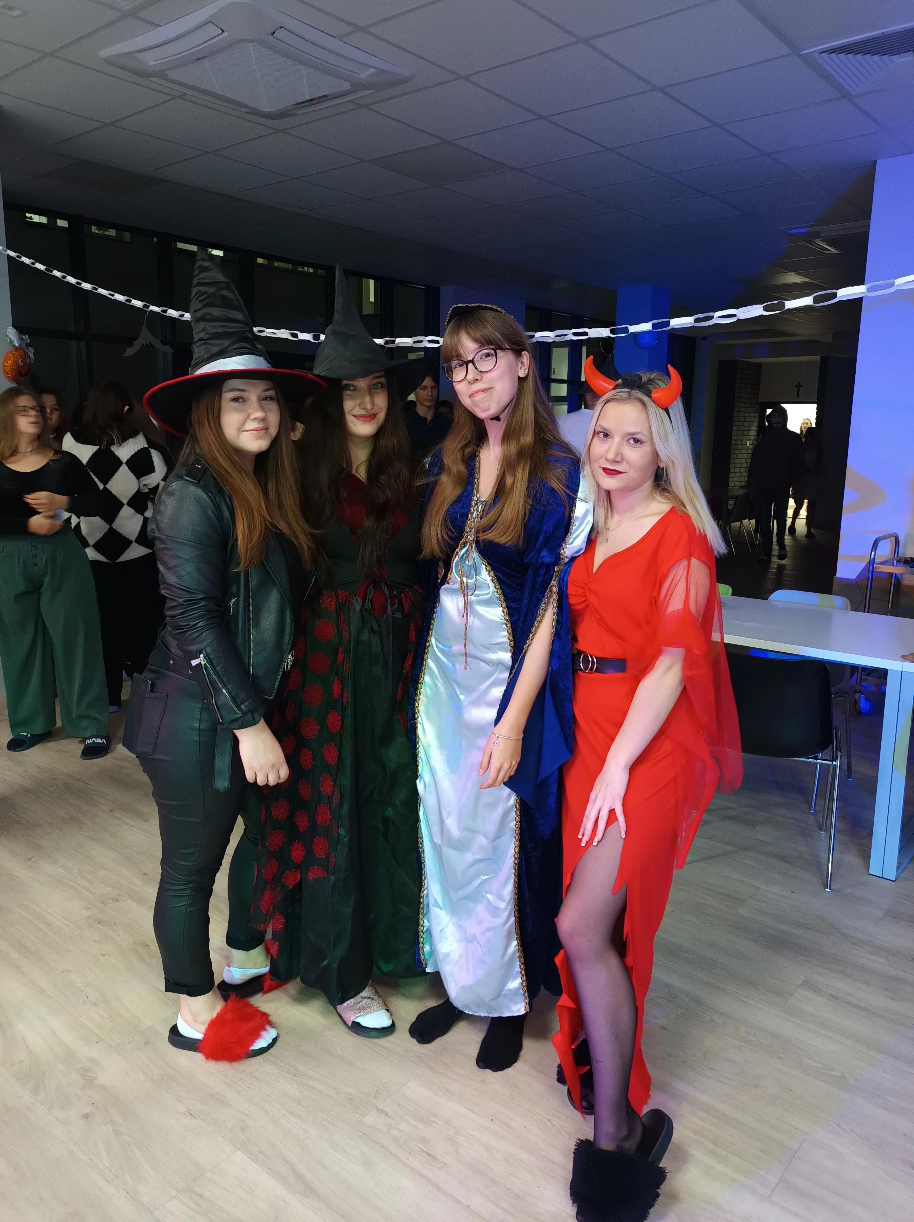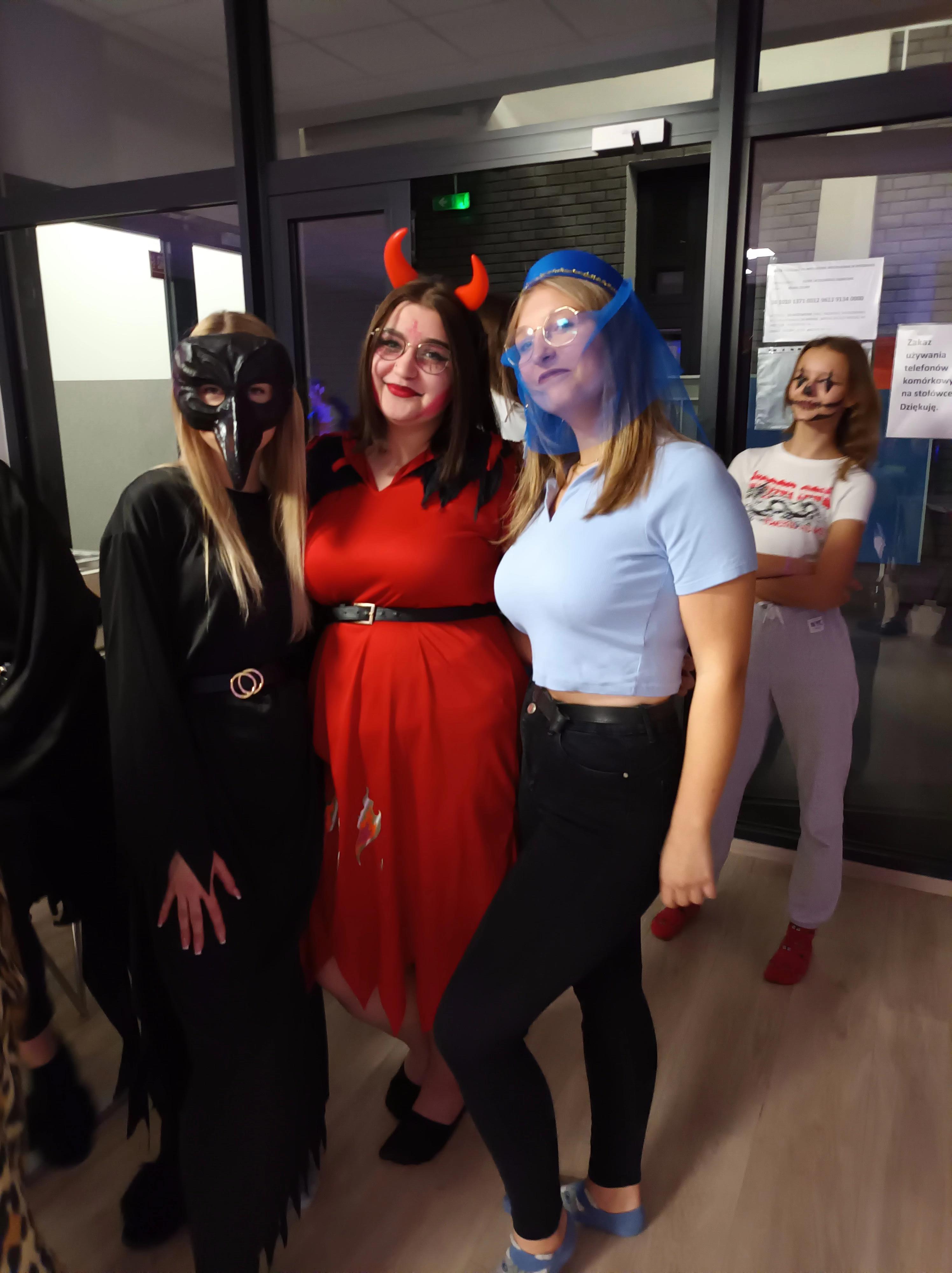 Oj działo się, działo… Z inicjatywy wychowanki Wiktorii Wojtaczki, przy pomocy wychowawczyni pani Kamili Muras, odbyła się w internacie dyskoteka integracyjno – halloweenowa. O godzinie 18:00, w mrocznym klimacie, wśród efektownych dekoracji młodzież przebrana w różne, ciekawe stroje – raczej śmieszne niż upiorne – rozpoczęła zabawę taneczną. Na parkiecie można było napotkać m.in. teletubisie, jaskiniowców, wróbla, wrony, damę dworu. Nie zabrakło też diablicy i ducha. Wszyscy bawili się przy rytmach tanecznej muzyki, którą wybierał DJ Kacper Witkowski. Na wychowanków czekał również słodki poczęstunek przygotowany przez wychowawców internatu.