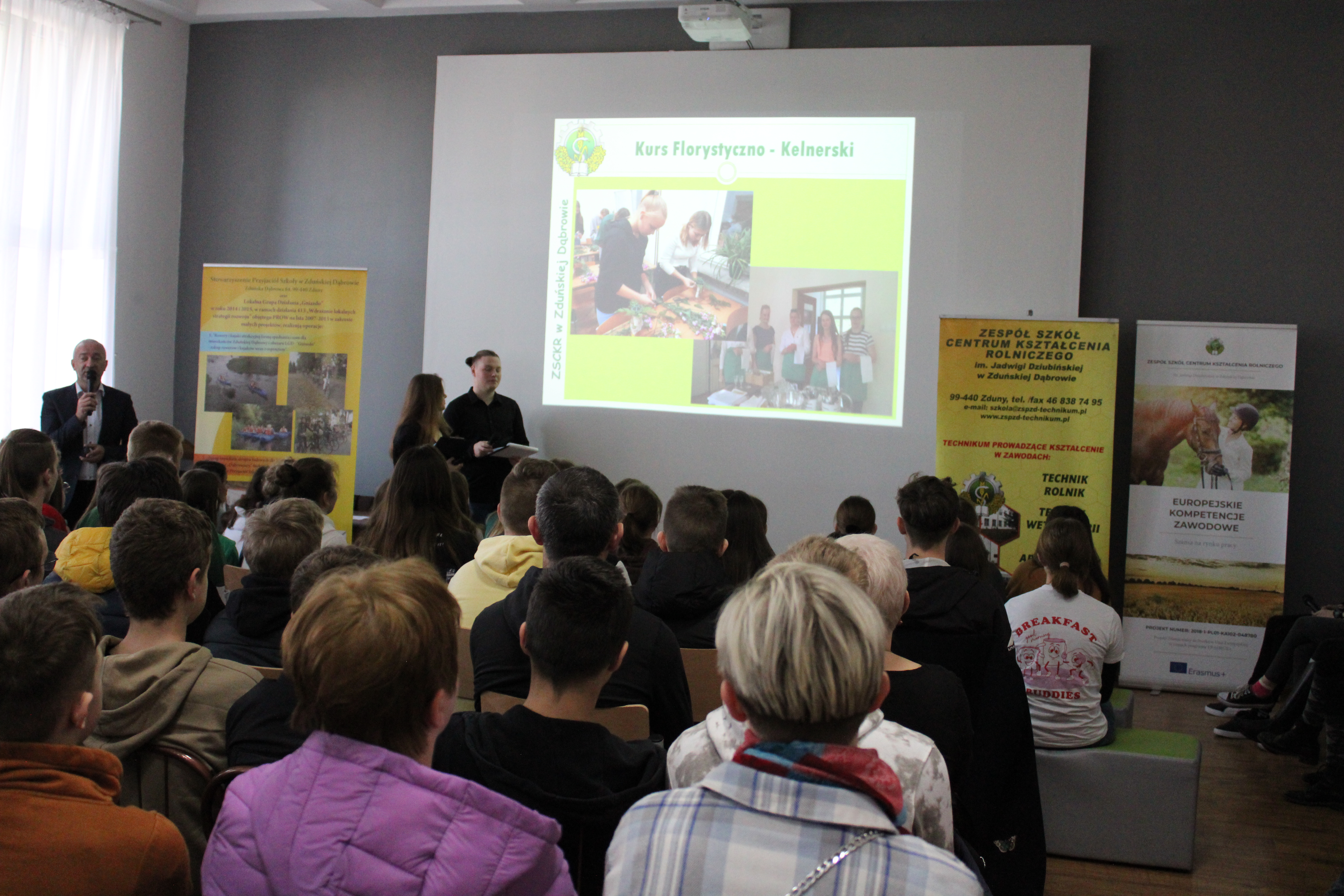Na odwiedzających w tym dniu ZSCKR czekało wiele atrakcji, gdyż w poszczególnych obiektach szkoły, na specjalnie przygotowanych stanowiskach tematycznych, ósmoklasiści mogli wziąć bezpośredni udział w zajęciach warsztatowych dzięki czemu mieli okazję przekonają się jak wygląda edukacyjna codzienność w Zduńskiej Dąbrowie. W budynku szkoły młodzież mogła uczestniczyć w zajęciach florystycznych, przyjrzeć się doświadczeniom laboratoryjnym oraz zwiedzić pracownie i inne pomieszczenia obiektu. W kompleksie o profilu zawodowym ósmoklasiści mieli okazję zobaczyć warsztaty z groomingu, a także zabiegi chirurgiczne wykonywane przez uczniów pod czujnym okiem lekarzy weterynarii. Zwiedzający mogli również obejrzeć salę analityczno-chemiczną. W budynku architektury krajobrazu uczniowie mieli możliwość obserwować etapy tworzenia dekoracji kwiatowych oraz uprawę warzyw z rozsady. Ósmoklasiści mieli również okazję zwiedzić ogródek meteorologiczny. Niewątpliwie jedną z atrakcji dla odwiedzających był symulator kombajnu zbożowego zaprezentowany w hali maszyn. Dużym zainteresowaniem cieszyły się również pozostałe maszyny rolnicze. W oborze dydaktycznej uczniowie mogli obserwować sposób działania nowoczesnego robota udojowego i robota sprzątającego oraz przyjrzeć się zabiegom inseminacji wykonywanym przez przyszłych techników weterynarii. Na sali gimnastycznej zaś obejrzeć zorganizowany pokazach gier sportowych. Chętni uczniowie ostatnich klas mieli również okazję na przejażdżkę konną. Zainteresowani mogli też zwiedzić internat, przed którym rozmieszczony został sprzęt turystyczny w postaci kajaków oraz rowerów mających na celu w sposób efektywny organizować czas wolny uczniom ze Zduńskiej Dąbrowy.