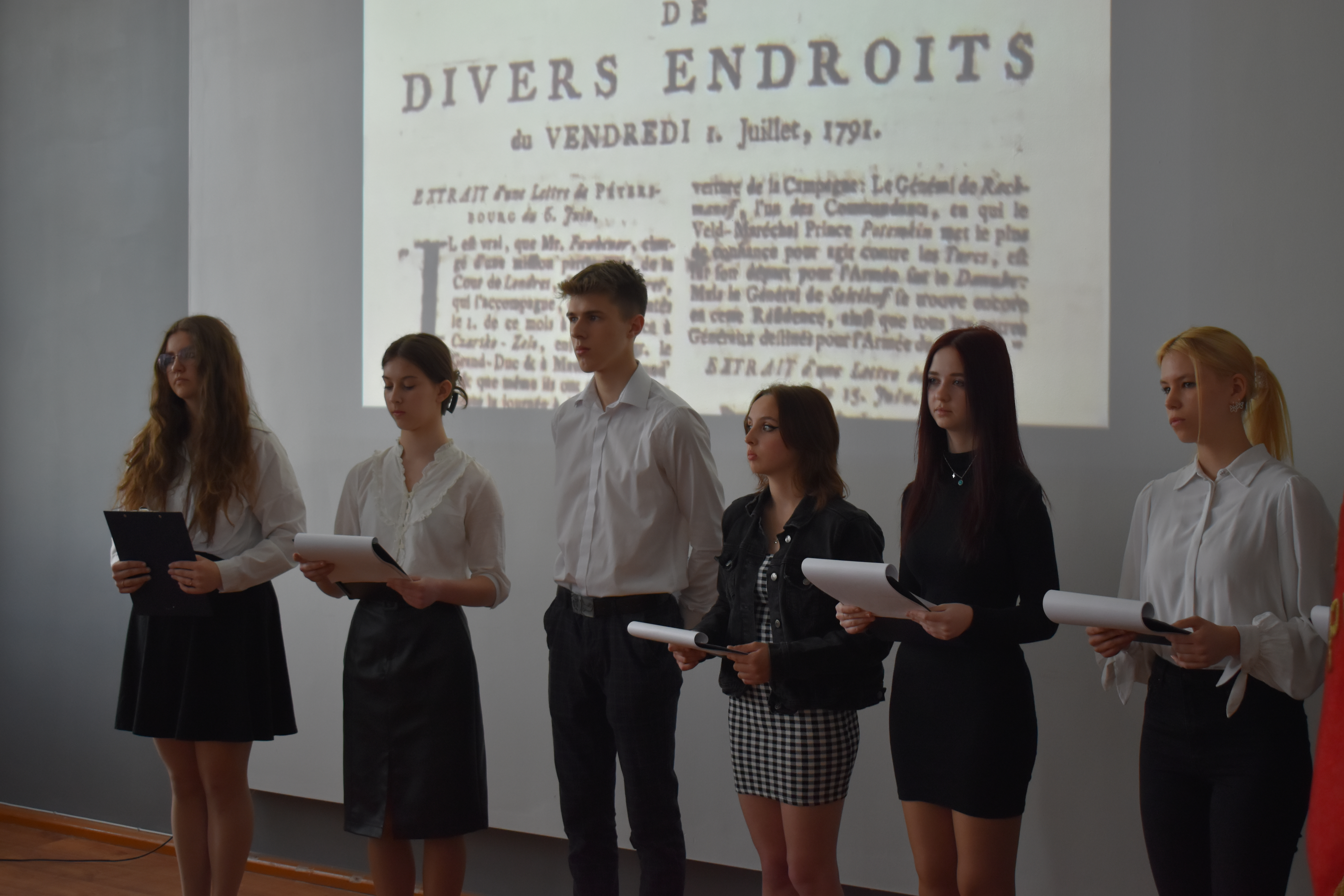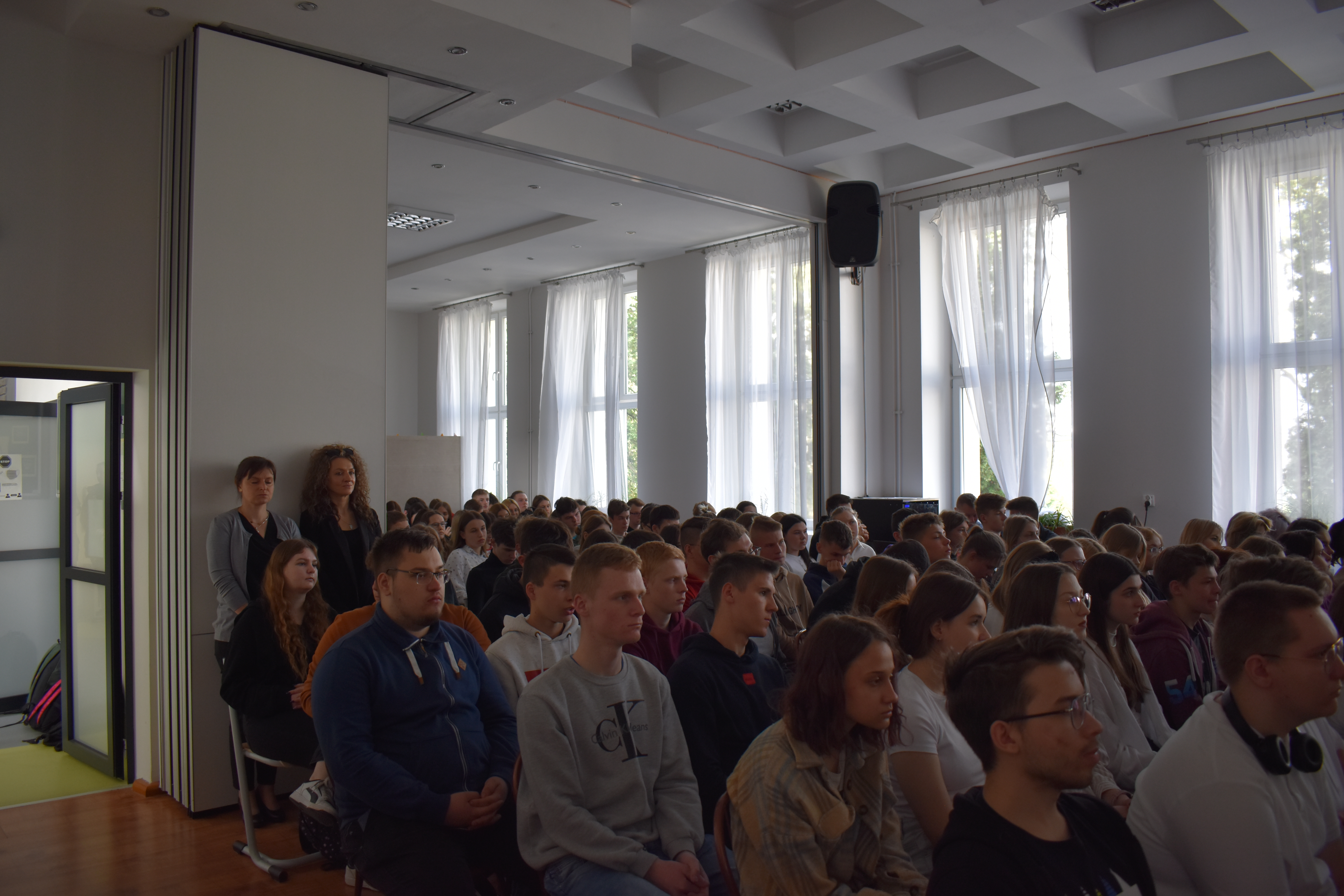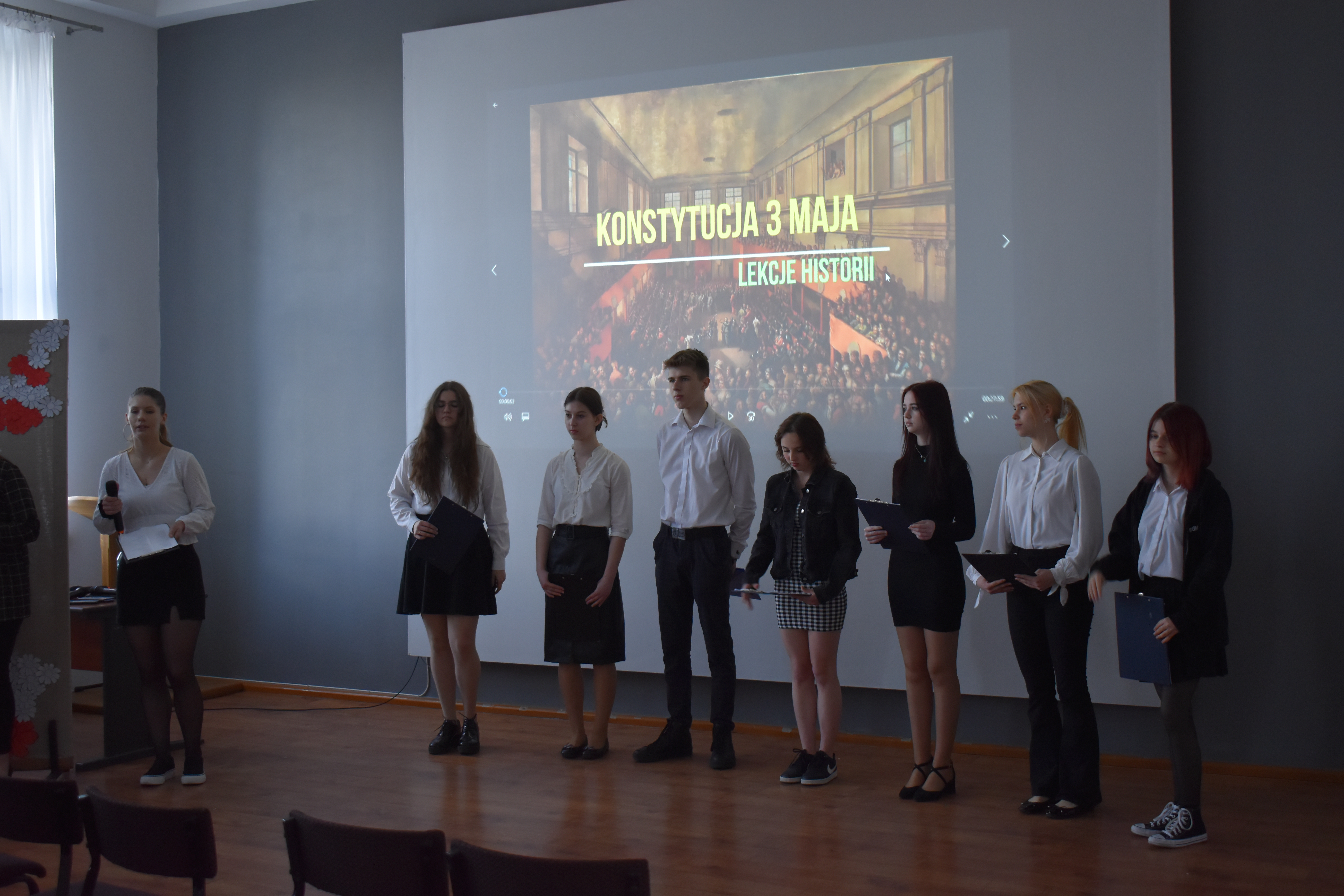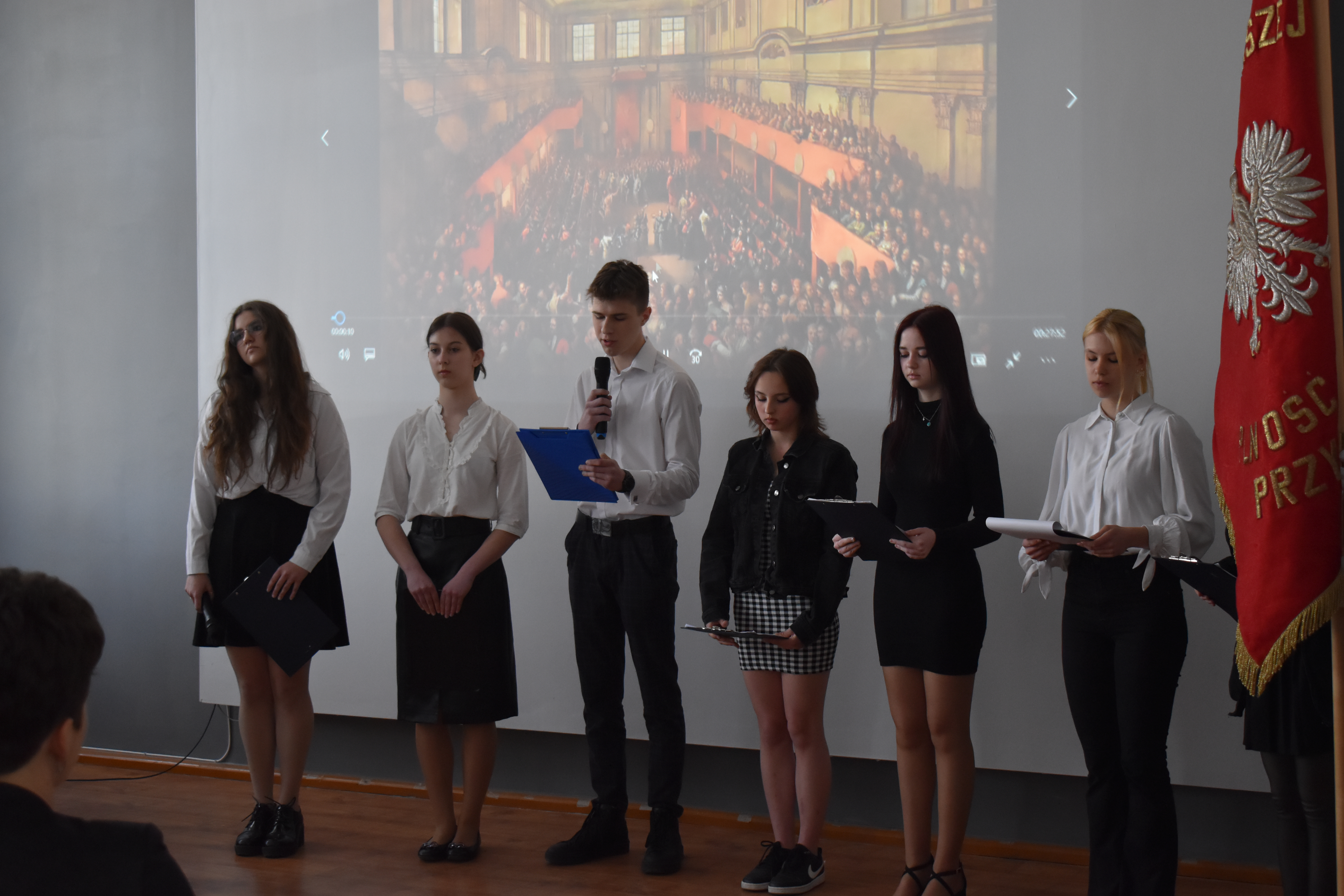 W czwartkowe przedpołudnie 27 kwietnia szkolne mury w Zduńskiej Dąbrowie przepełnione były majowym klimatem wielkiego narodowego święta związanego z uchwaleniem w roku 1791 pierwszej w Europie, a drugiej na świecie konstytucji. Zgodnie z wieloletnią tradycją, czyniąc zadość patriotycznym wartościom, uczniowie naszej placówki przygotowali jak co roku uroczystą akademię z okazji 232 rocznicy powołania do życia tego wyjątkowego dla historii Polski aktu normatywnego. Część oficjalna przedsięwzięcia rozpoczęła się od wprowadzenia pocztu sztandarowego, wspólnego odśpiewania hymnu narodowego i okolicznościowego przemówienia dyrektora szkoły – pana Stanisława Kosmowskiego. W dalszej kolejności scena sali multimedialnej naszej placówki należała już do młodych artystów, którzy pod kierunkiem nauczycieli zaprezentowali widowni niezwykle barwny pod względem merytorycznym, słowno-muzyczny montaż, przeplatanymi nastrojowymi pieśniami oraz patriotycznymi wierszami, dodatkowo okraszonymi niezwykle wymownym filmem edukacyjnym wyświetlanym podczas występu, a mającym na celu ukazać młodzieży realia Polski okresu XVIII wieku. Wielkie zaangażowanie i ciężka praca uczniów przygotowujących akademię zaowocowały wyjątkowym spektaklem pobudzającym historyczne zmysły publiki , która odwzajemniła się gromkimi brawami i wyrazami uznania.