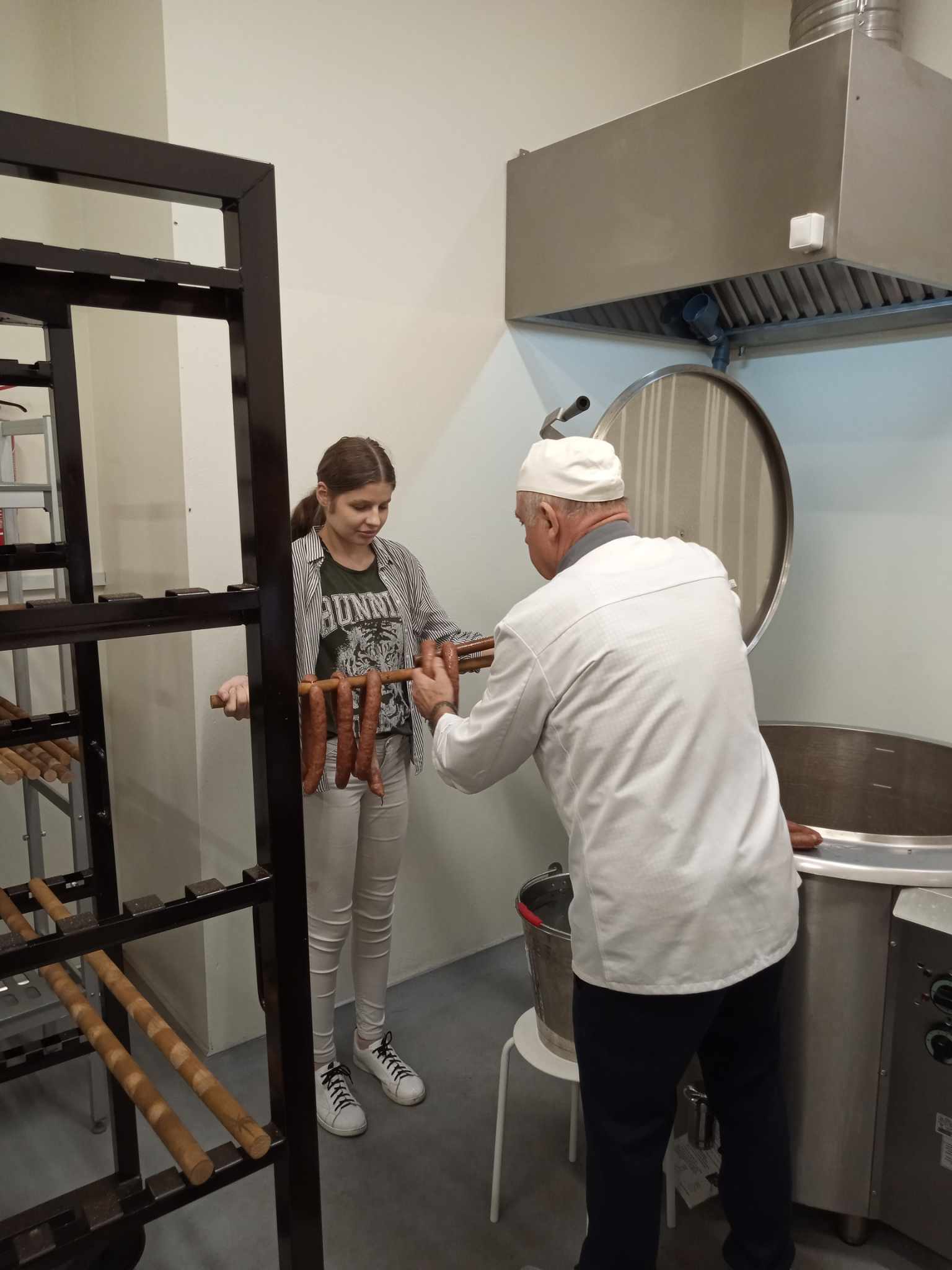 W dniu 11.10.2023r. uczniowie klas V technikum weterynaryjnego ZSCKR im J. Dziubińskiej w Zduńskiej Dąbrowie brali udział w warsztatach dotyczących przetwórstwa produktów rolnych obejmujących produkcję wędlin i tłoczenie oleju na zimno. Poziom wiedzy i doświadczenie prowadzących warsztaty były niezwykłe imponujące. Dla wszystkich uczestników było to bardzo ważne doświadczenie. Mieli oni możliwość poznać procesy produkcji wędlin i tłoczenia oleju od podstaw. Pokazano nam różne techniki, narzędzia oraz sposoby pozyskania surowców używanych w tych procesach. Omówione zostały kluczowe zagadnienia związane z Dobrą Praktyką Higieniczną i Produkcyjną.