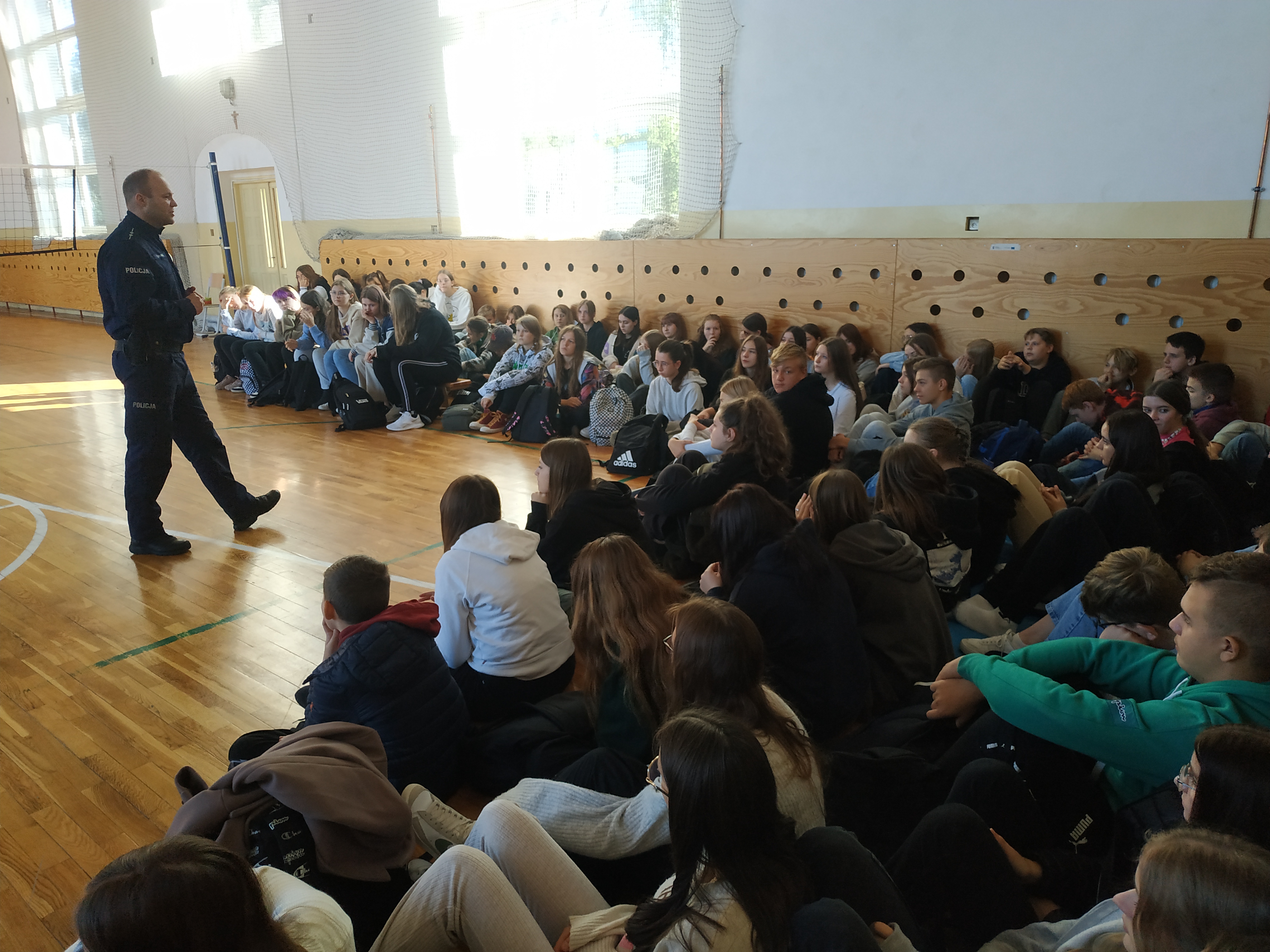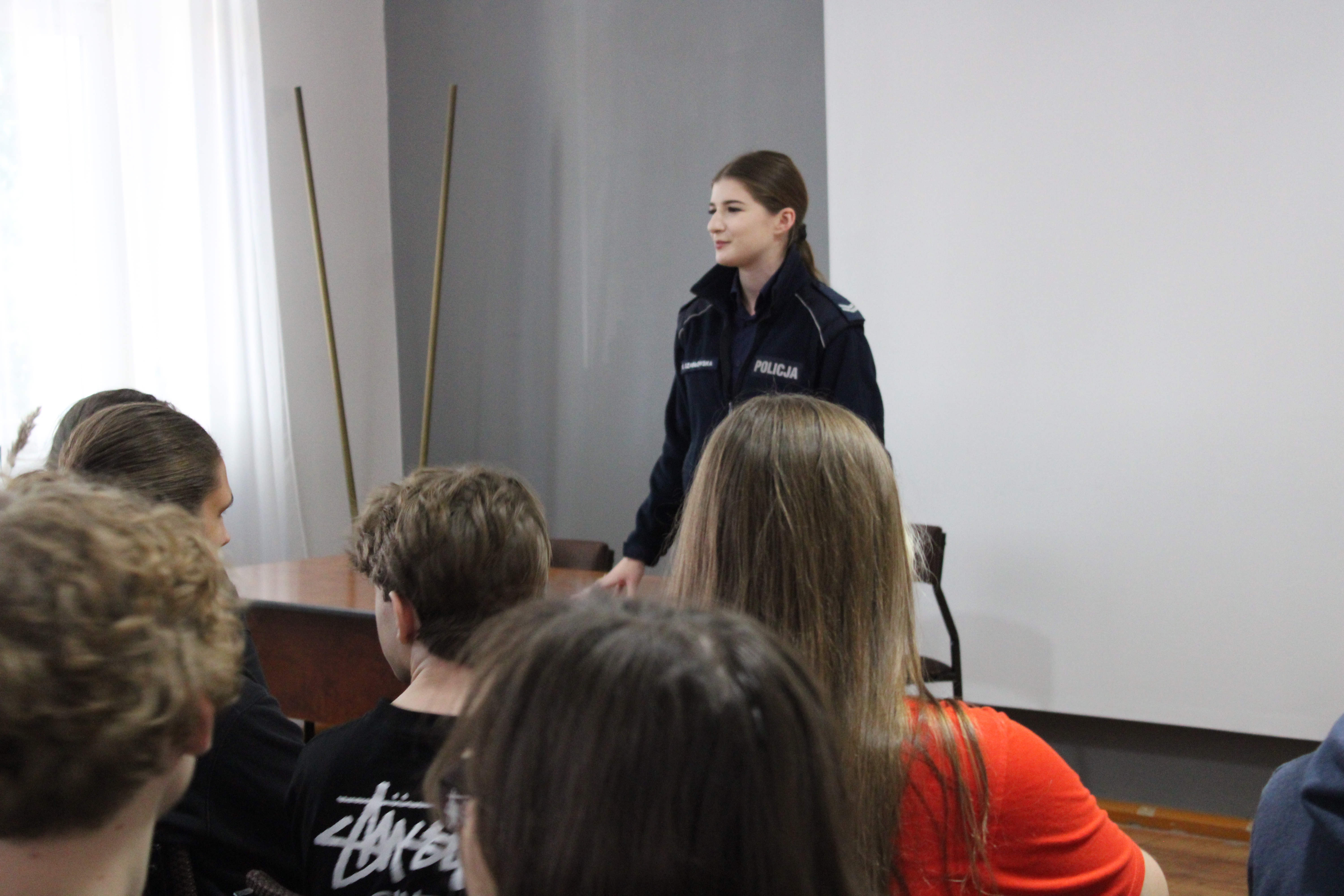 17 października 2023 roku uczniowie klas pierwszym uczestniczyli w spotkaniu o charakterze profilaktycznym z przedstawicielami Komendy Powiatowej Policji w Łowiczu. Głównym celem spotkania było kształtowanie i promowanie pozytywnych postaw w zakresie szeroko pojętego bezpieczeństwa. Poruszono także kwestię odpowiedzialności karnej osób w wieku nastoletnim. Funkcjonariusze odpowiadając na pytania, uświadomili młodzieży konsekwencje zdrowotne i prawne, jakie mogą wynikać z nierozważnego i beztroskiego zachowania.