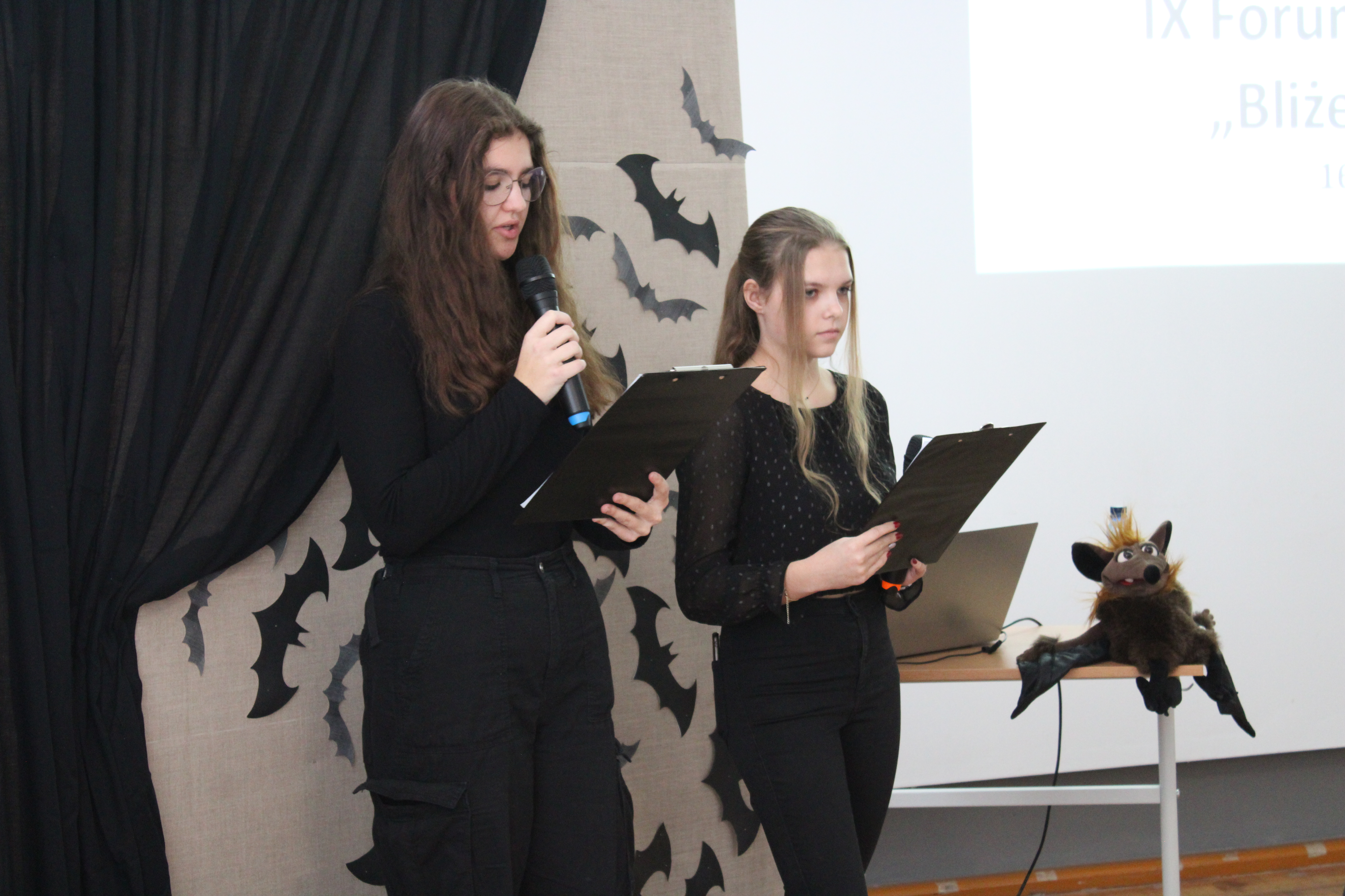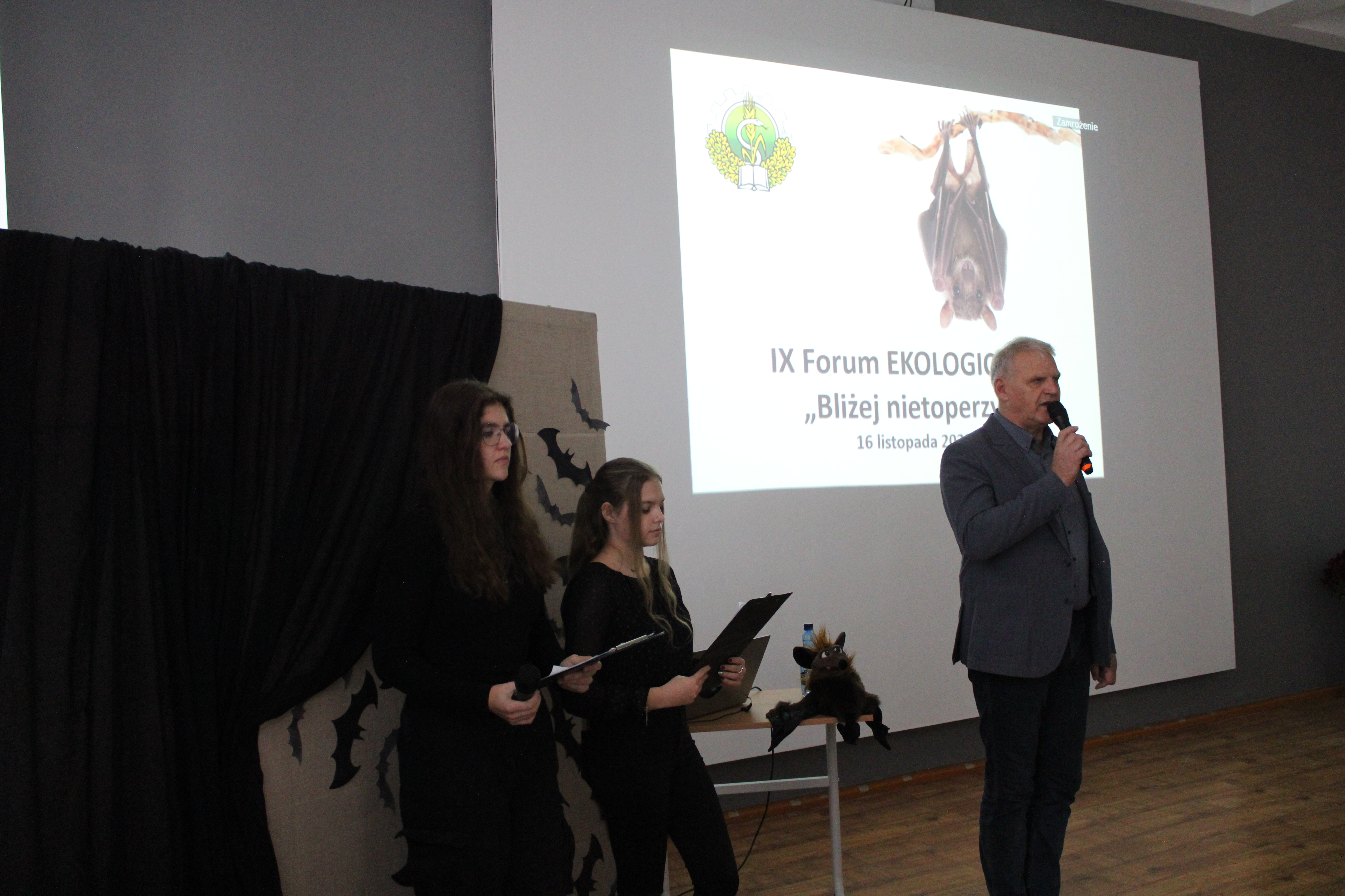 16 listopada odbyło w naszej szkole dziewiąte już z kolei Forum Ekologiczne, tym razem pod hasłem „Bliżej nietoperzy”. Gościliśmy w murach ZSCKR w Zduńskiej Dąbrowie uczniów klas VII i VIII ze szkół podstawowych wraz z opiekunami. Oficjalną część spotkania rozpoczął dyrektor szkoły -Pan Stanisław Kosmowski, który powitał przybyłych gości i po krótce przybliżył tematykę spotkania.