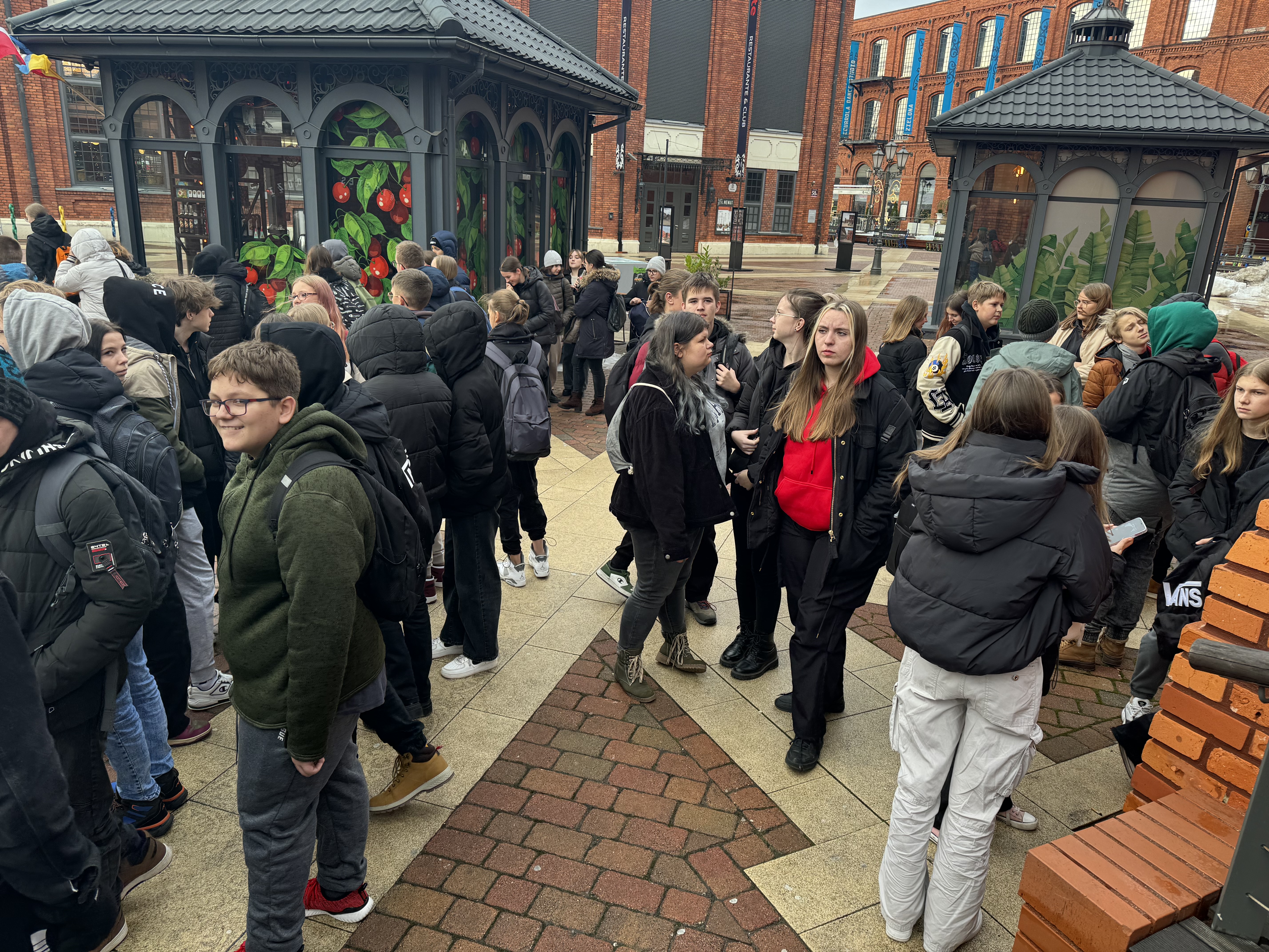 Kolejnym i ostatnim punktem wycieczki była łódzka Manufaktura gdzie młodzież zapoznała się z architekturą największego centrum handlowo-usługowo-rozrywkowego w Polsce. Dominujące tu pofabryczne budynki z nieotynkowanej cegły w pewnym stopniu pozwoliły poczuć atmosferę minionych czasów.