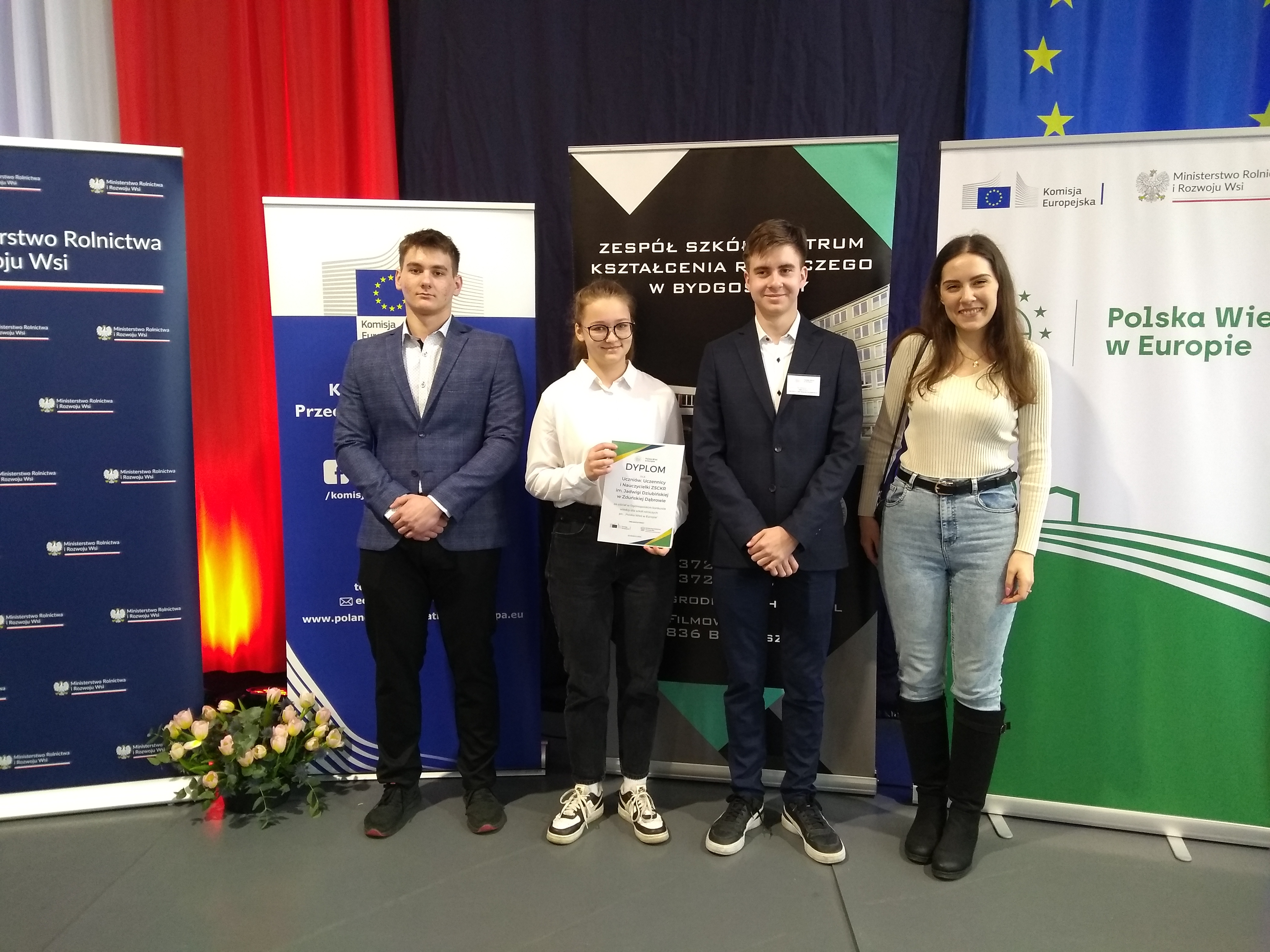 W dniach 21-22 marca w ZSCKR w Bydgoszczy odbył się etap regionalny Olimpiady ,,Polska wieś w Europie”. Wzięli w nim udział uczniowie klasy III kształcący się w zawodzie technik rolnik – Amelia Drabik, Adam Kołaczyk oraz Wiktor Gortat.