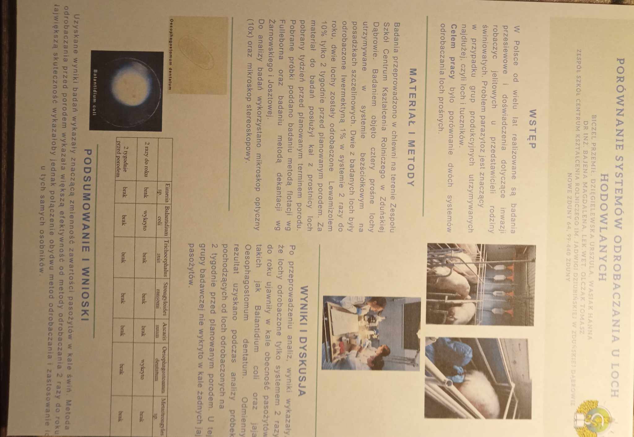 Miejsce II – „Porównanie systemów odrobaczania u loch hodowlanych” – uczniowie klasy III TW – Przemił Biczel, Urszula Dzięgielewska, Hanna Wasiak.