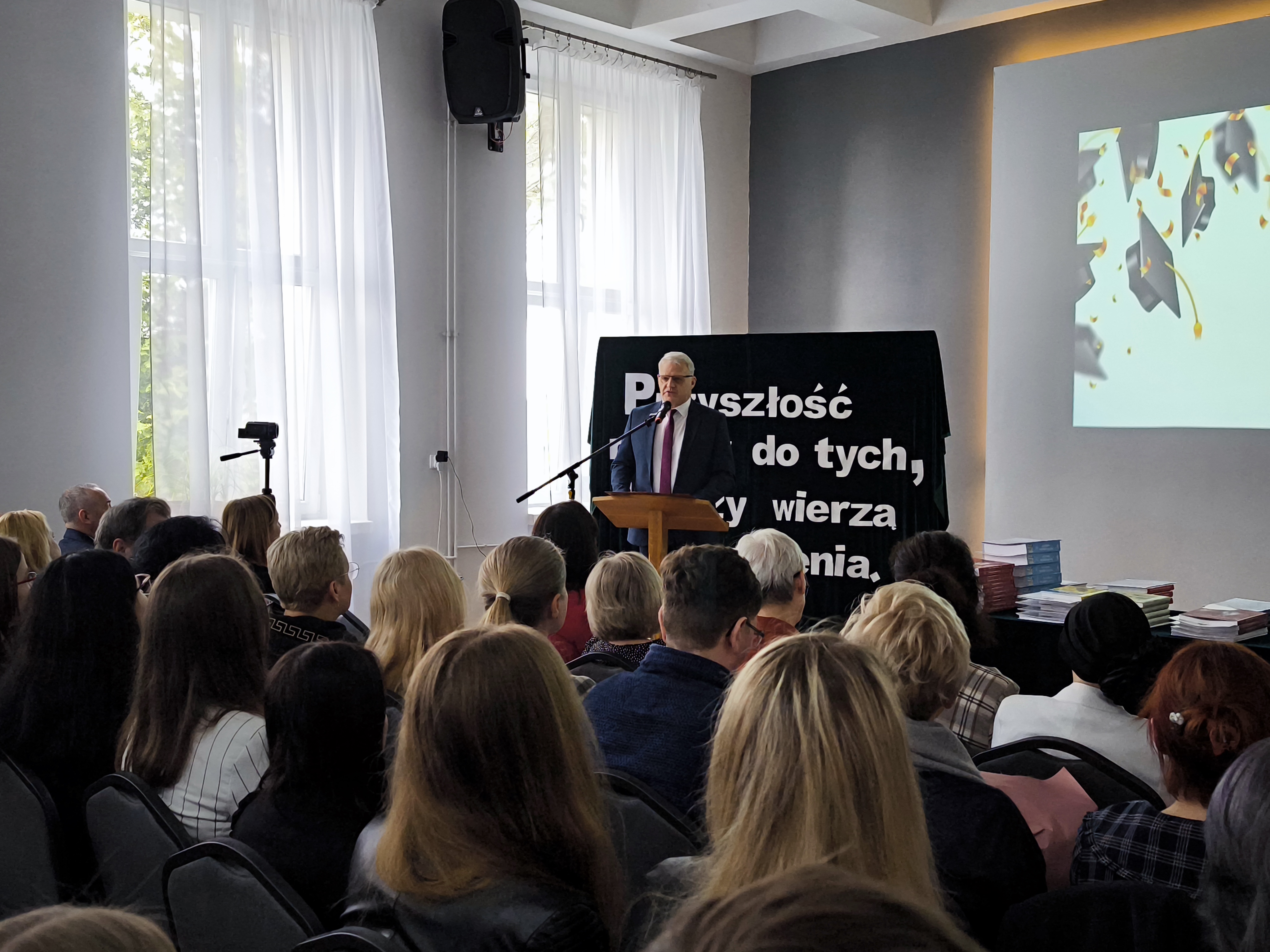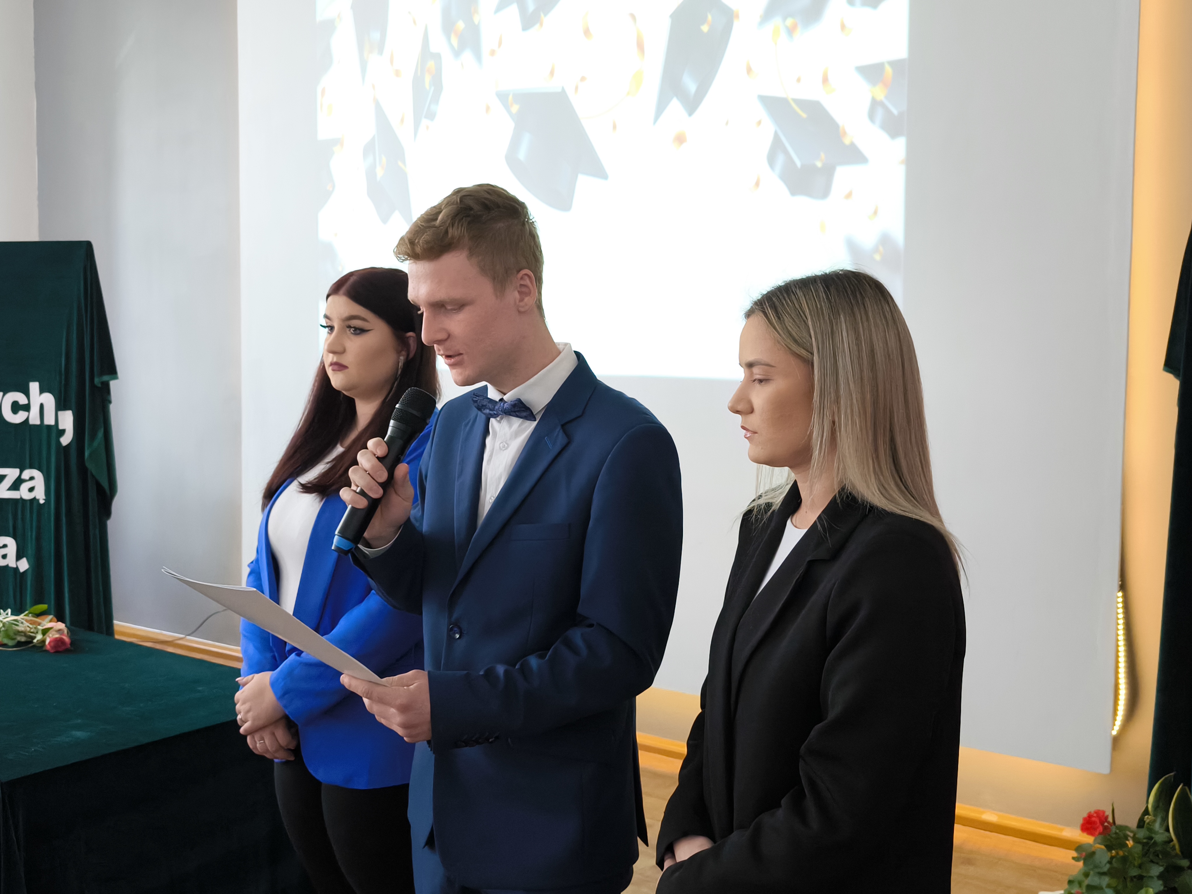 Uroczystość rozpoczęła się od przemówieniem Dyrektora Szkoły – Pana Stanisława Kosmowskiego, po którym nastąpiło wręczenie abiturientom świadectw i nagród za najlepsze wyniki w nauce, wzorową postawę uczniowską, a także reprezentowanie szkoły w olimpiadach i konkursach lub w zawodach sportowych. Na ręce Ich rodziców zostały zaś złożone listy gratulacyjne.