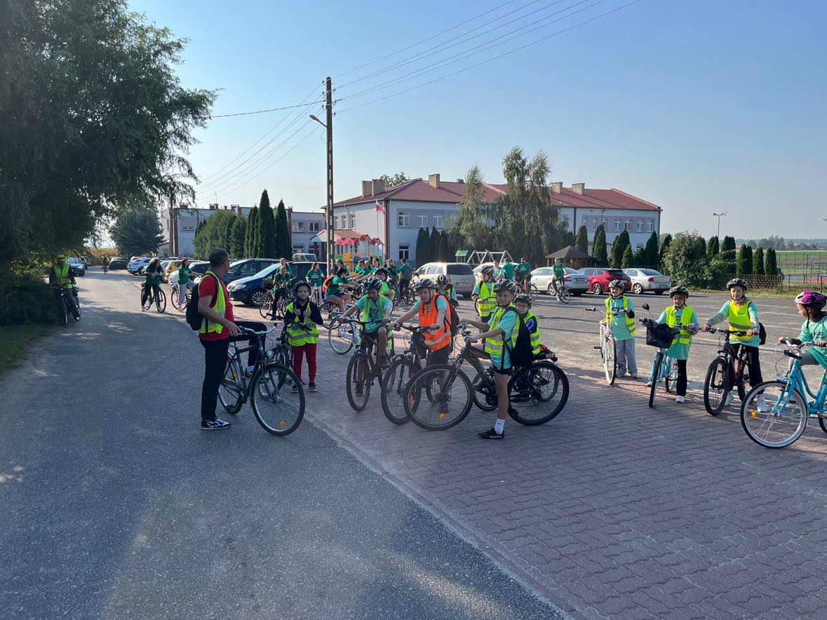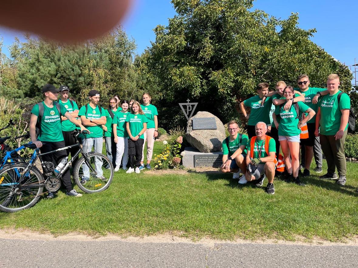 Grupa uczniów Szkoły Podstawowej w Bąkowie Górnym i Zespołu Szkół Centrum Kształcenia Rolniczego im. Jadwigi Dziubińskiej w Zduńskiej Dąbrowie wzięła udział w Rajdzie rowerowym szlakiem Krystyny Idzikowskiej i bł. ks. Franciszka Drzewieckiego.