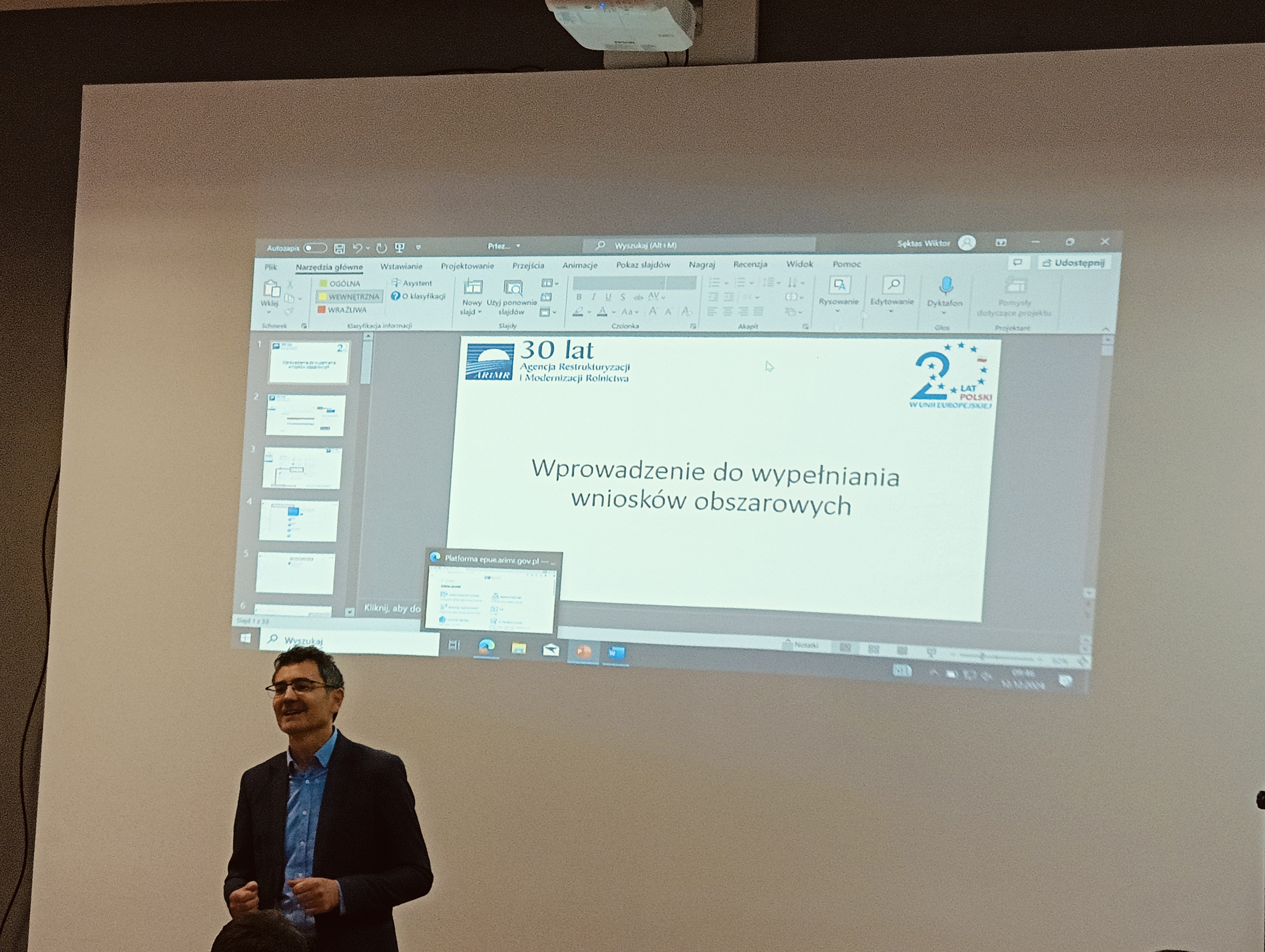 12 grudnia 2024 roku w naszej szkole odbyło się szkolenie z zakresu „Praktycznych aspektów ubiegania się o płatności w Agencji Restrukturyzacji i Modernizacji Rolnictwa”. W spotkaniu uczestniczyli uczniowie klas 4 i 5 Technikum kształcącego w zawodzie technik rolnik. Szkolenie przeprowadzili pracownicy ARiMR w formie teoretycznej jak również i praktycznej w terenie.