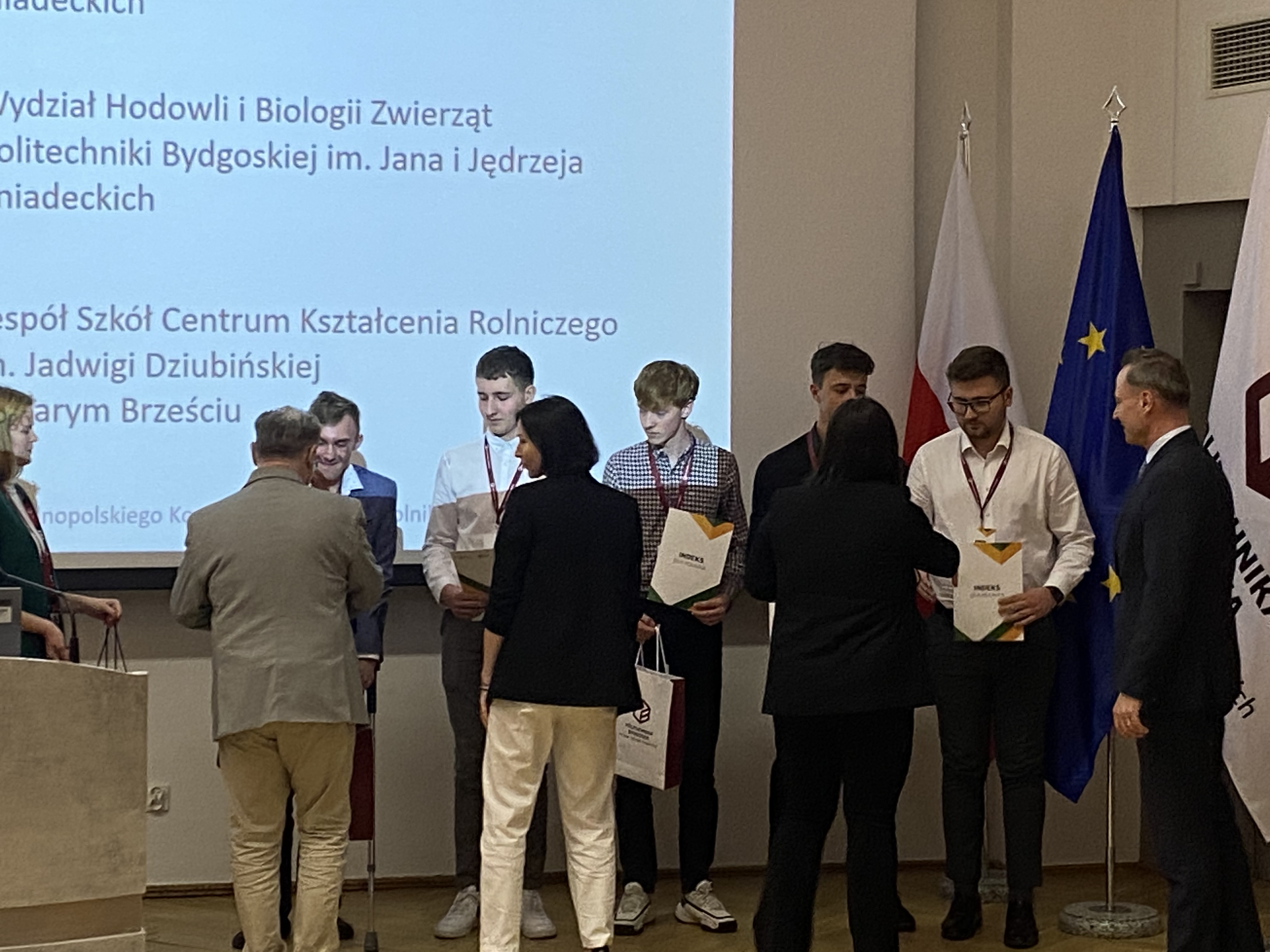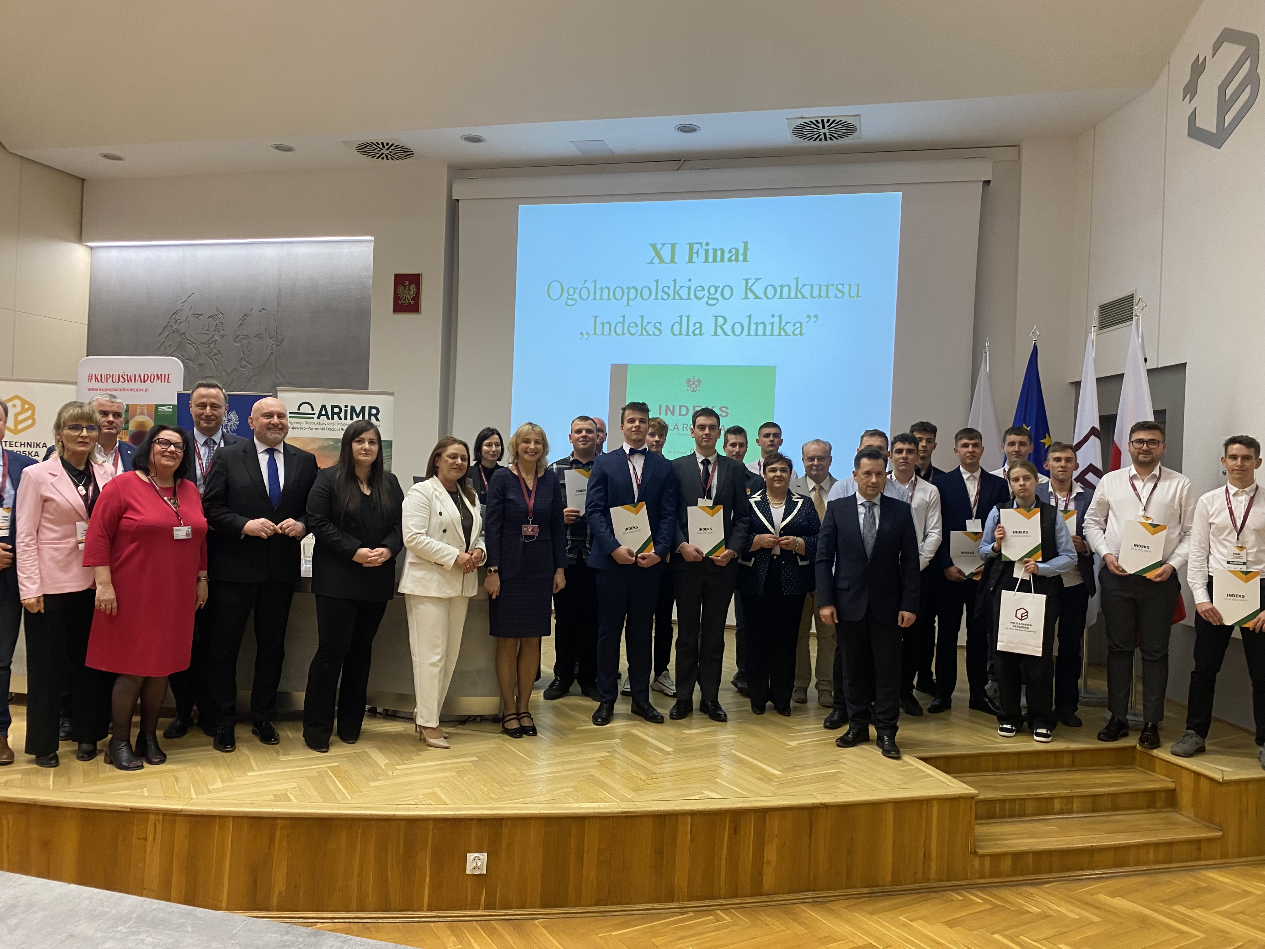 Po podsumowaniu wyników, podczas uroczystej gali wręczenia „Indeksów” odczytano nazwiska 12 laureatów, wśród najlepszych znaleźli się: na 4 miejscu Adam Biernaciak, a na 8 pozycji Hubert Bilski – obaj są uczniami IV klasy technikum kształcącego w zawodzie technik rolnik. Oprócz wielu słów uznania na temat poziomu wiedzy, otrzymali zaświadczenia upoważniające do podjęcia kształcenia na Wydziałach Rolnictwa i Biotechnologii lub Hodowli i Biologii Zwierząt Politechniki Bydgoskiej oraz zostali uhonorowany nagrodami od sponsorów.