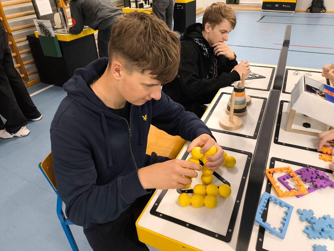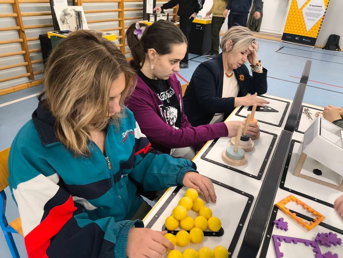 I tak właśnie było. Każdy z wychowanków, a także wychowawców, znalazł tego dnia coś dla siebie. Niektóre z eksponatów wymagały zręczności, niektóre logicznego myślenia, a jeszcze inne współpracy w grupie. Wśród nich znalazły się m.in. Sznurkografy, Szyfr Cezara, Wstęga Mobiusa, Zakręcone Figury czy Świetlne Iluzje. Ciekawe ponadto były: Wieża Hanoi, Sferostożki, Magiczny Trójkąt oraz Parkietaże. To była naprawdę fajna zabawa w miłej atmosferze.