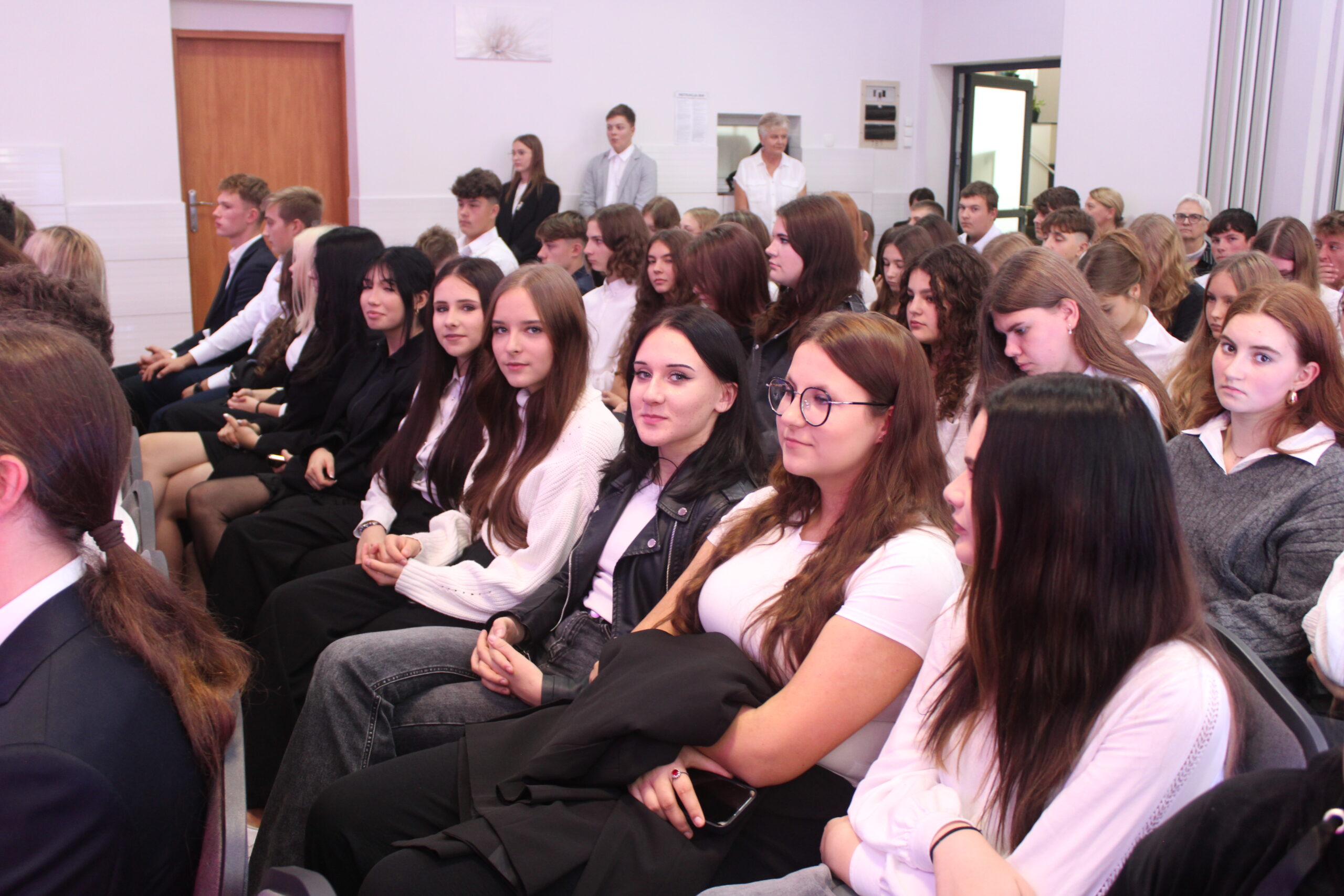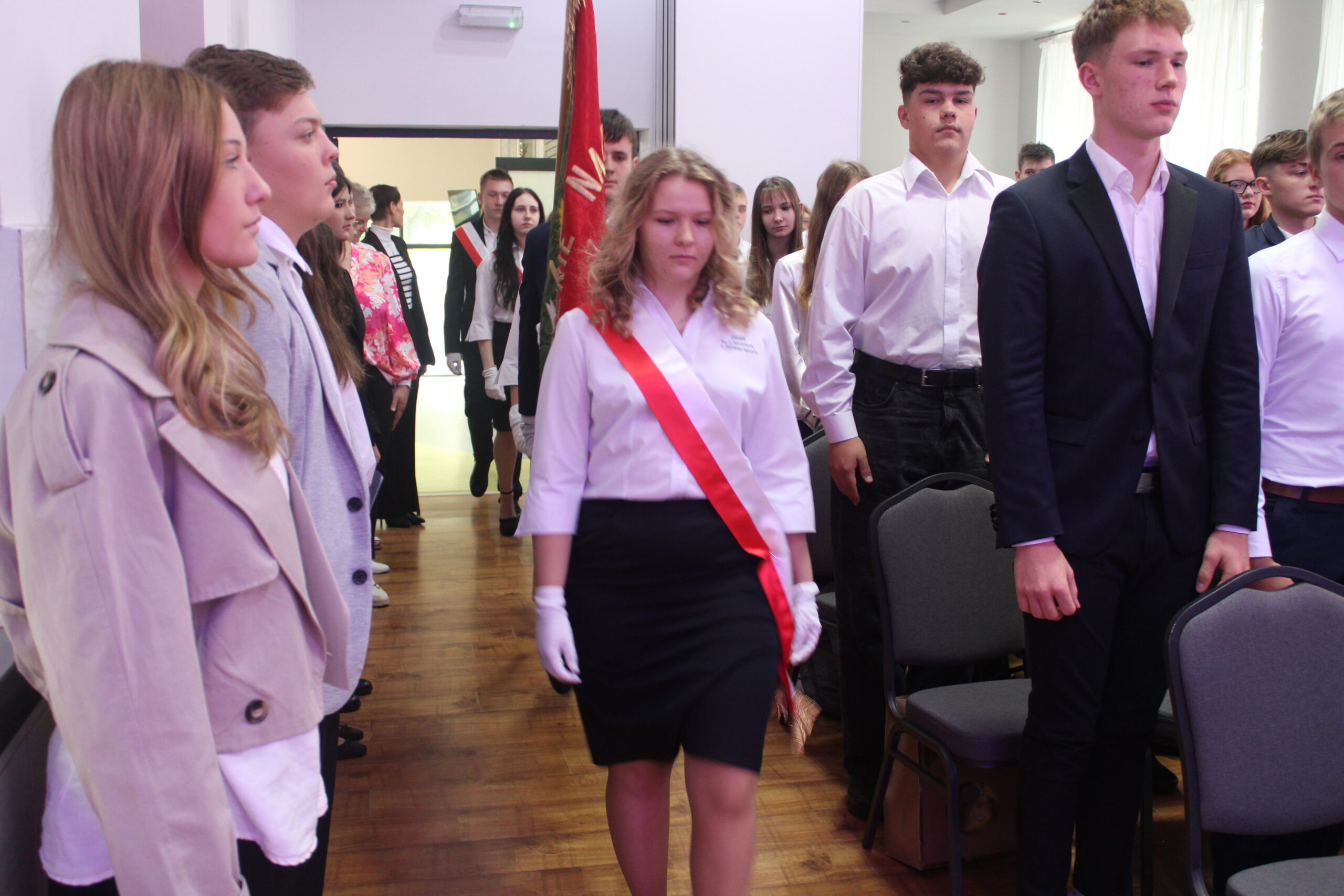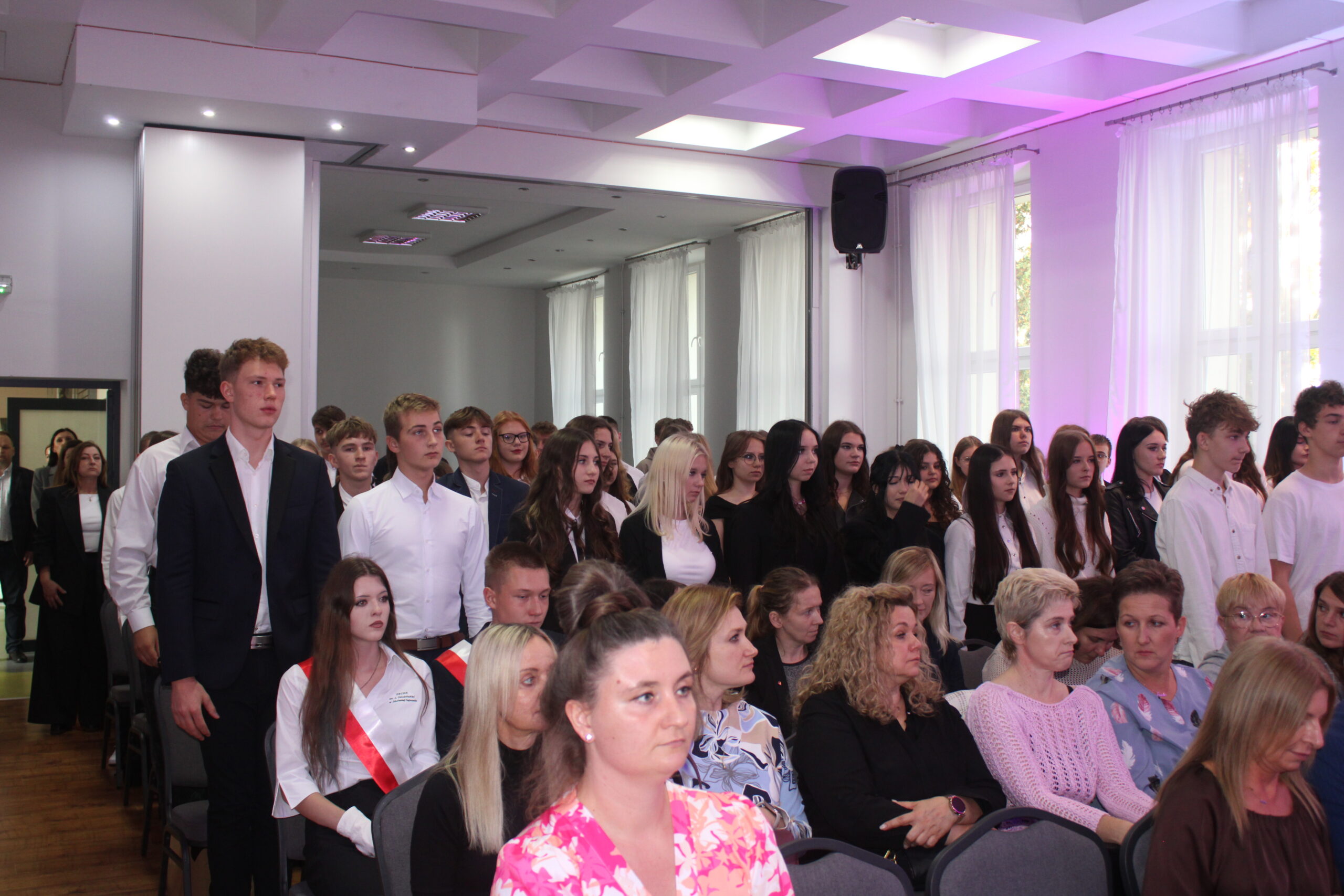 Szczególnie podniosłym momentem uroczystości było ślubowanie uczniów klas pierwszych. Młodzież, w obecności dyrekcji, wychowawców, nauczycieli, pracowników i starszych kolegów, złożyła uroczystą przysięgę na sztandar szkoły, zobowiązując się do pilności w nauce, przestrzegania szkolnych zasad oraz godnego reprezentowania Zespołu Szkół w Zduńskiej Dąbrowie. Akt ślubowania zakończyło tradycyjne przyjęcie pierwszoklasistów w poczet społeczności uczniowskiej.
