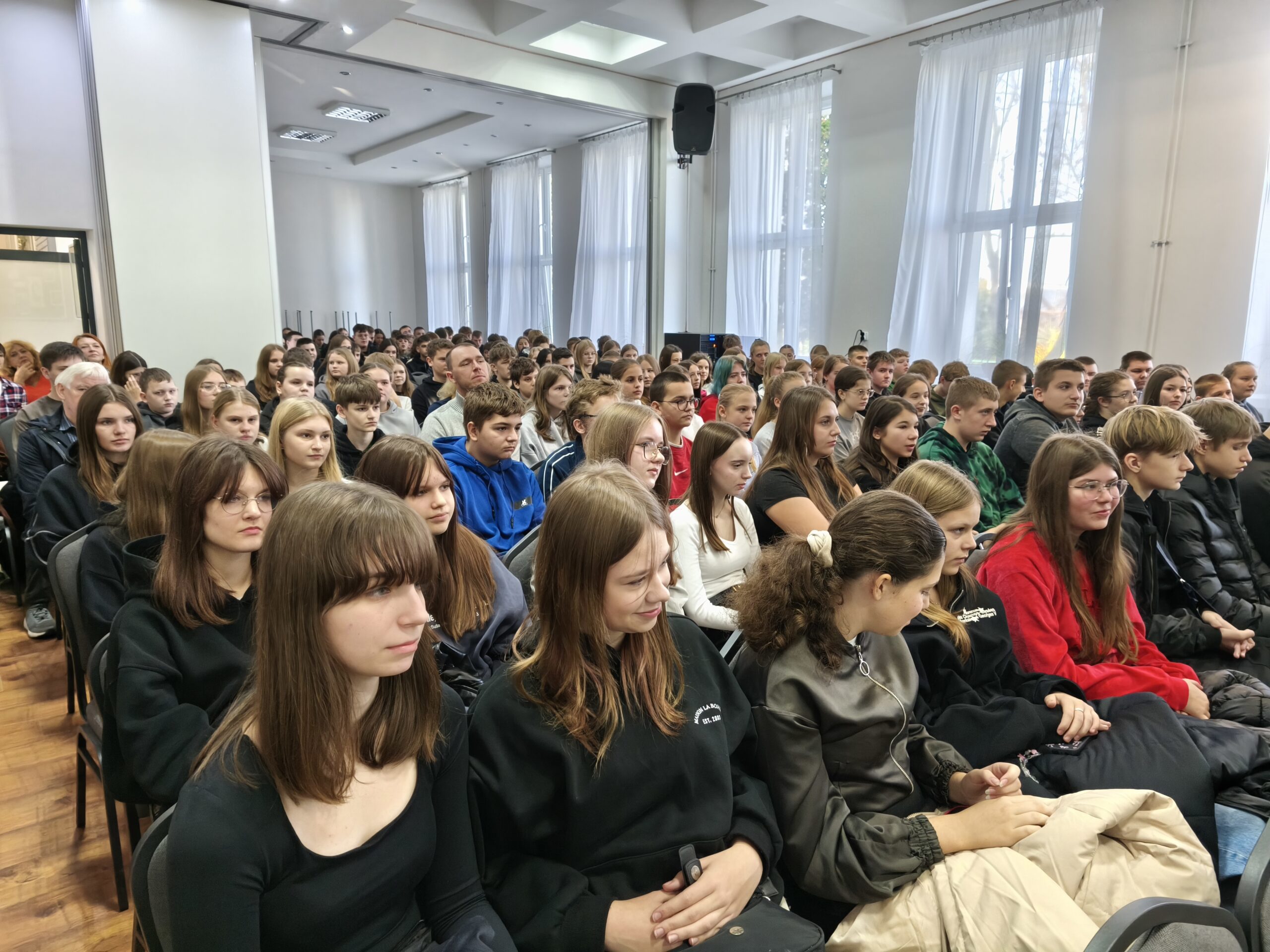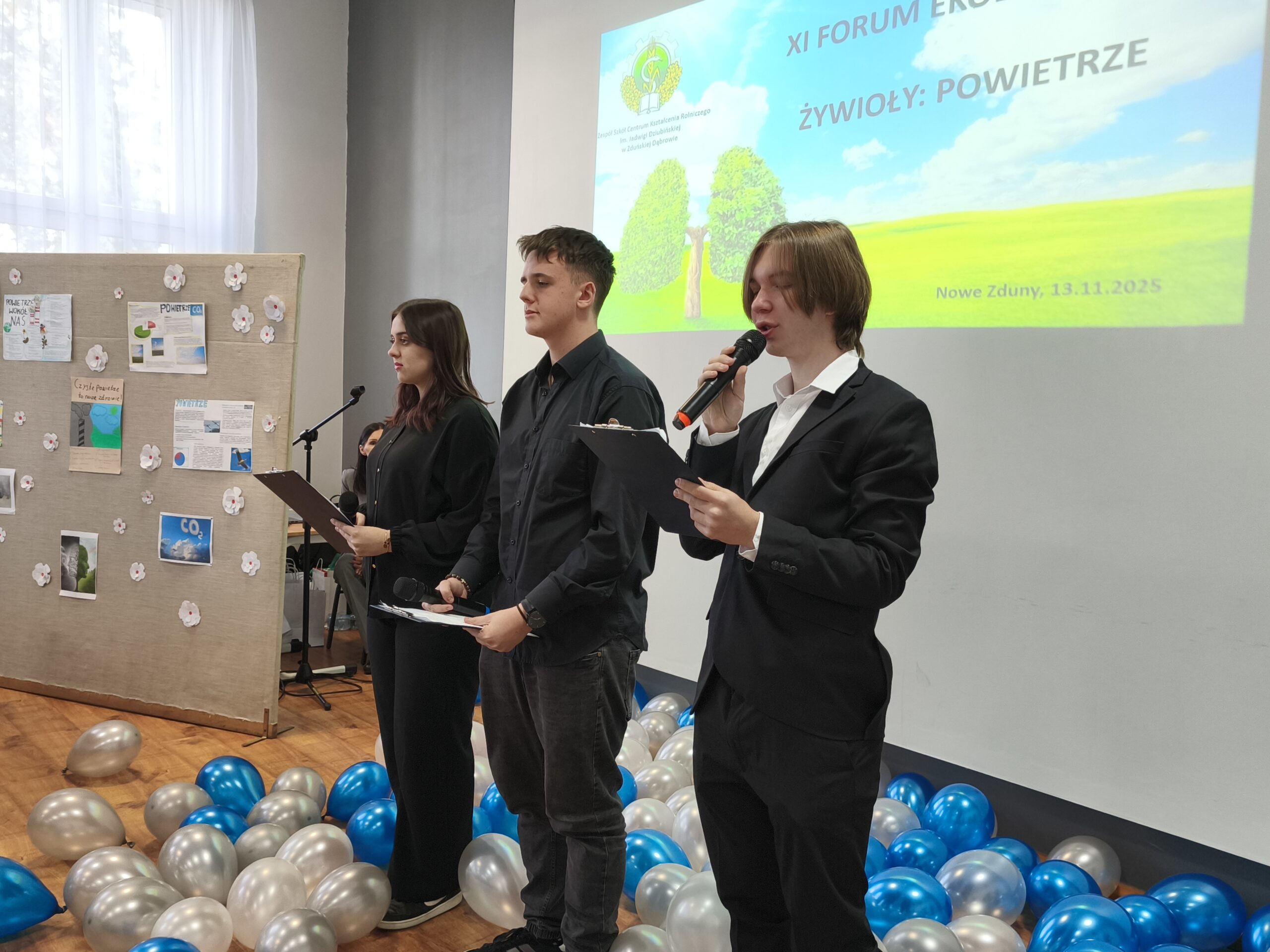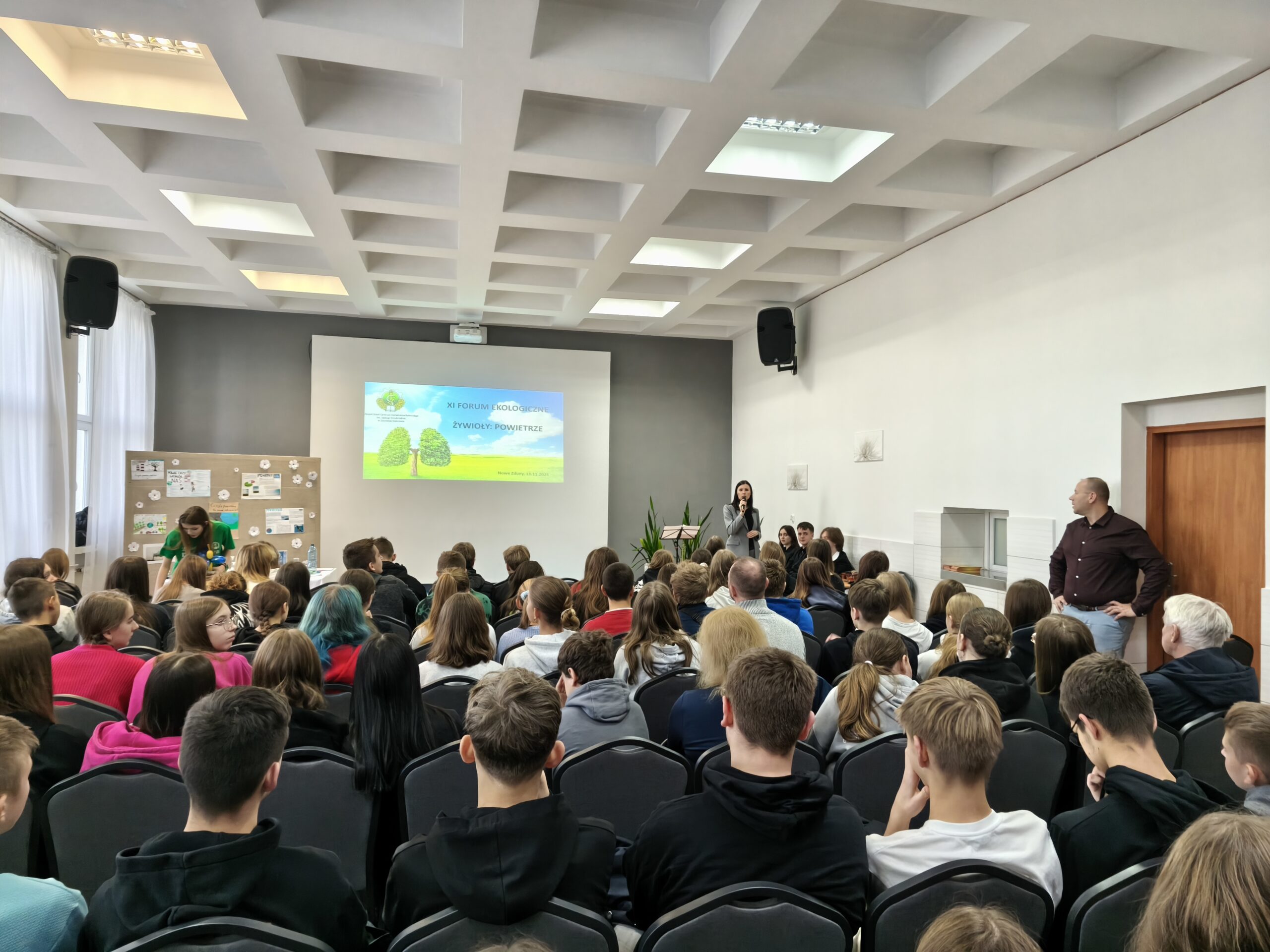 Czwartek 13 listopada upłynął w Zduńskiej Dąbrowie pod znakiem uroczystości. Już po raz XI odbyło się w naszej szkole Forum Ekologiczne. W tym roku hasłem przewodnim spotkania było „Powietrze”. Gościliśmy uczniów klas VIII z dziesięciu szkół podstawowych. Uczestnicy wysłuchali wystąpienia Pana Dyrektora Stanisława Kosmowskiego, a następnie prelekcji pt. „Powietrze, jego zanieczyszczenia i ich wpływ na nasze życie” Pani Anny Sobczyk z Wydział Ochrony Środowiska, Rolnictwa i Leśnictwa w Starostwie Powiatowym w Łowiczu. Nasi uczniowie zabrali ósmoklasistów w świat eksperymentów z wykorzystaniem powietrza, a także zaprezentowali swoje talenty muzyczne i wokalne.