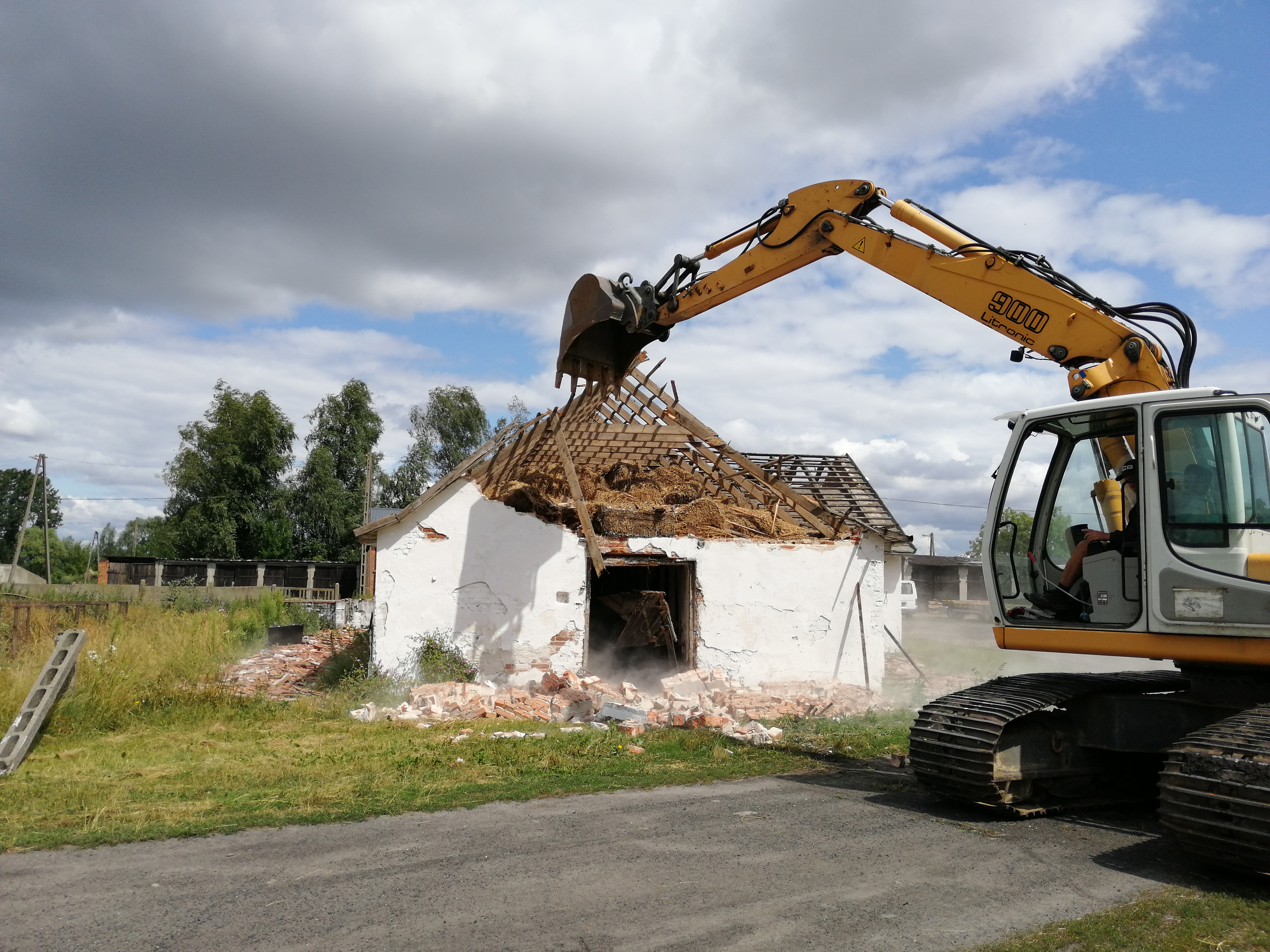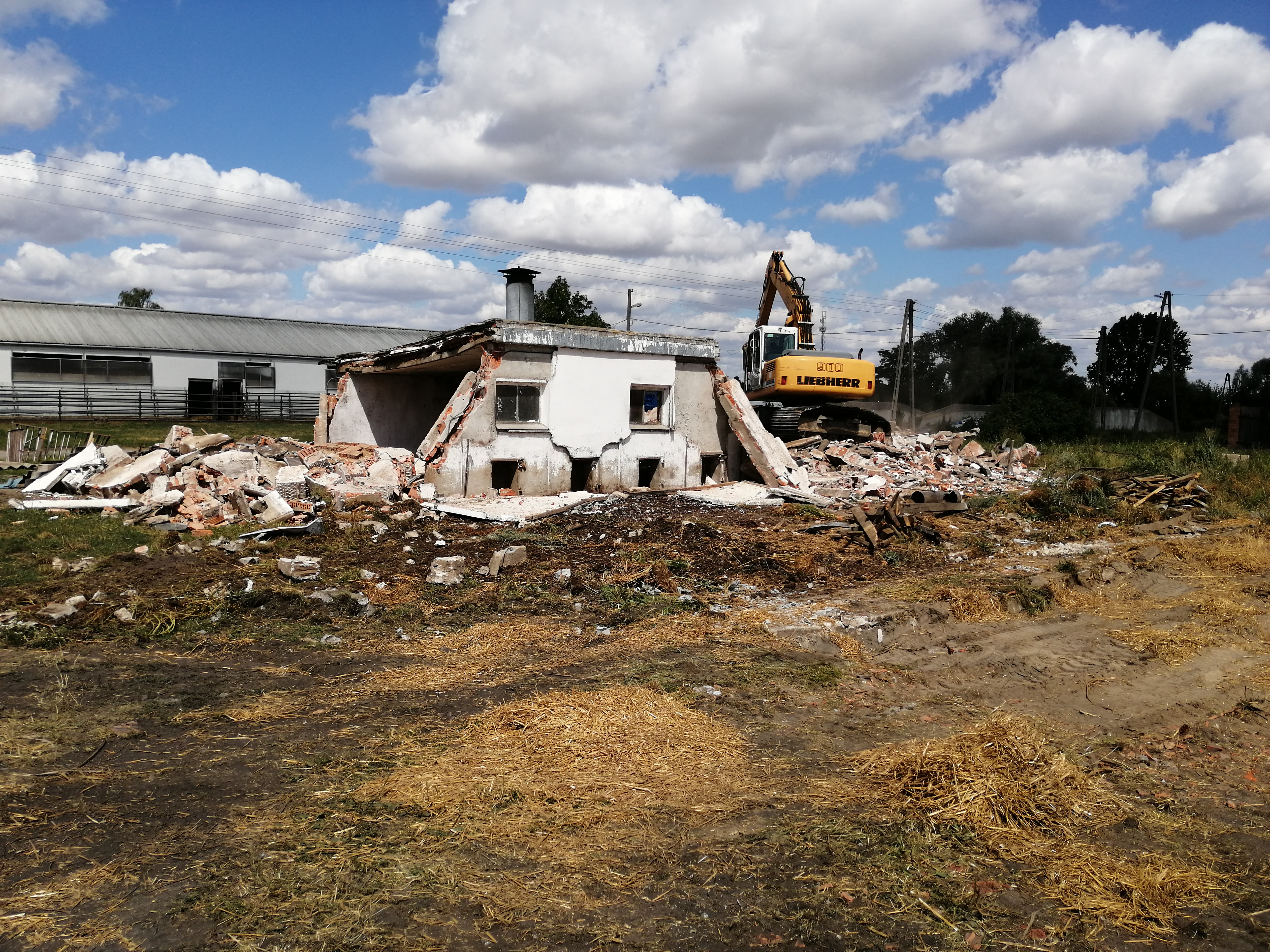 Prace rozbiórkowe starego budynku chlewni