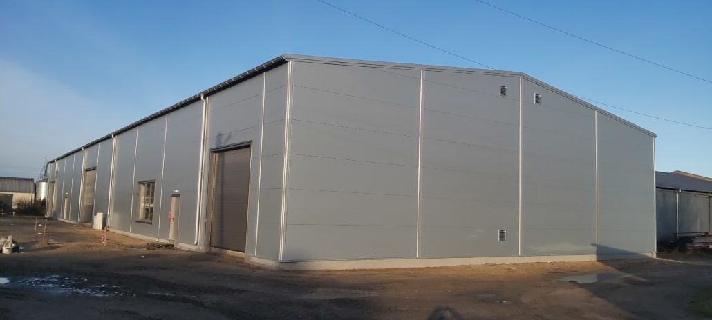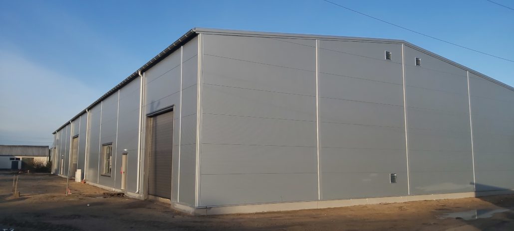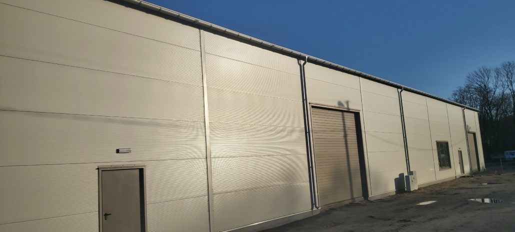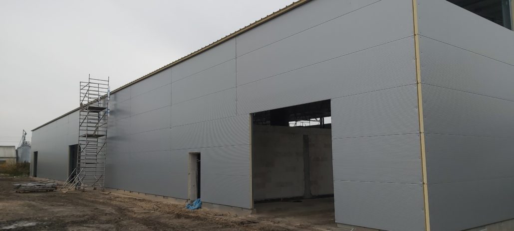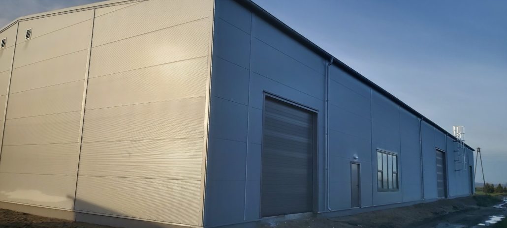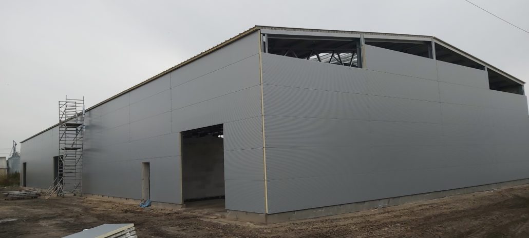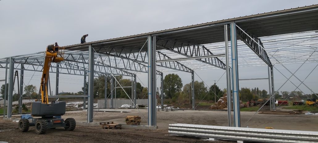 Konstrukcja budynku ze stali ocynkowanej: ustawione słupy połączone bindrami stanowią konstrukcję szkieletową budynku