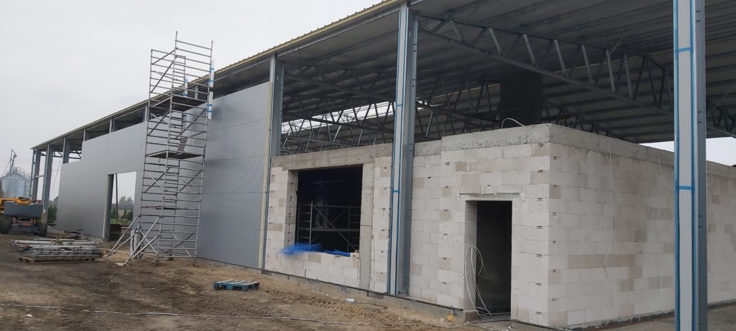 Przebudowa starego warsztatu mechanicznego i garaży na nowoczesny warsztat diagnostyki i naprawy pojazdów i maszyn rolniczych wraz z halą maszyn. (Inwestycja w trakcie realizacji)