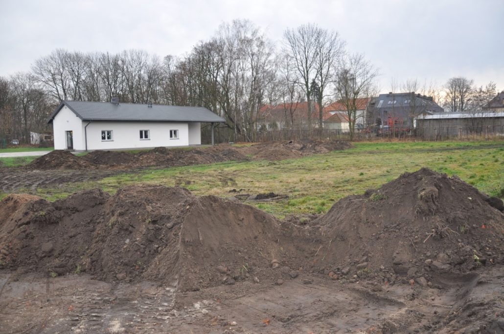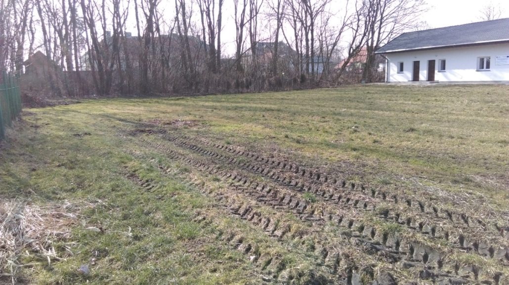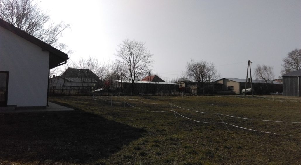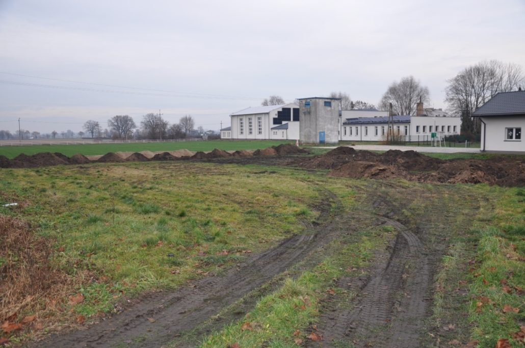 - Zostały założone trawniki na powierzchni ok. 600m2. Przed zasiewem trawy teren został podniesiony do góry aby nie stanowił zastoiska wodnego. Zostało dowiezione ok 200 m3 Dowieziona ziemia została wyrównana i przygotowana agregatem aktywnym do wysiewu trawy. Na działce zostały wytyczone cztery łąki kwietne, między nimi została posiana trawa. Trawnik wypełnia przestrzenie między łąkami kwietnymi. Na skraju działki zostały posadzony jeden rząd drzew odgraniczający teren od drogi dojazdowej do pracowni rolniczej. Zostały zakupione urządzenia nawadniające na trawnik i łąki kwietne, które będą podlewane wodą pochodzącą z pobliskiego zbiornika wodnego. Założenie systemu nawodnieniowego jest planowane w okresie wiosennym.