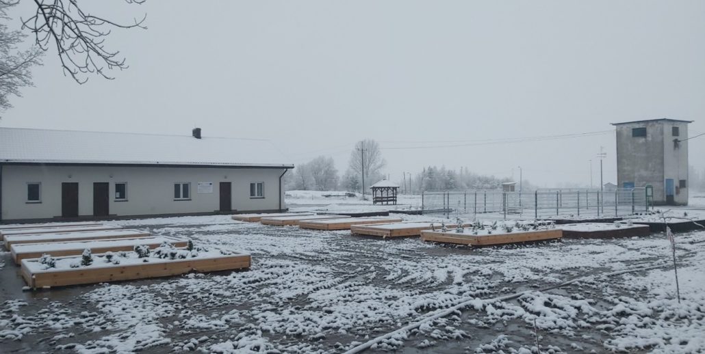 - Na działce 37/1 (część dydaktyczno-wypoczynkowa) założono 16 skrzyń podniesionych przeznaczonych na nasadzenia drzew, krzewów, krzewinek oraz bylin. Obrzeża 6 skrzyń zostały wykonane z różnych materiałów takich jak drewno, cegła, blacha, palisada, bloczki betonowe. 10 skrzyń zostało wykonane z drewna. Skrzynie zostały wypełnione ziemią. 8 skrzyń zostało obsadzone zakupionymi roślinami. Każda ze skrzyń ma pow. 15 m2 (3 m x 5 m). Przestrzeń między skrzyniami została przeznaczona na urządzone ścieżek Ścieżki zostaną wykonane w okresie wiosennym w ramach środków własnych beneficjenta. Na tej działce został pozostawiony pasa ziemi na poletka demonstracyjne różnych roślin rzadko spotykanych w uprawie polowej.