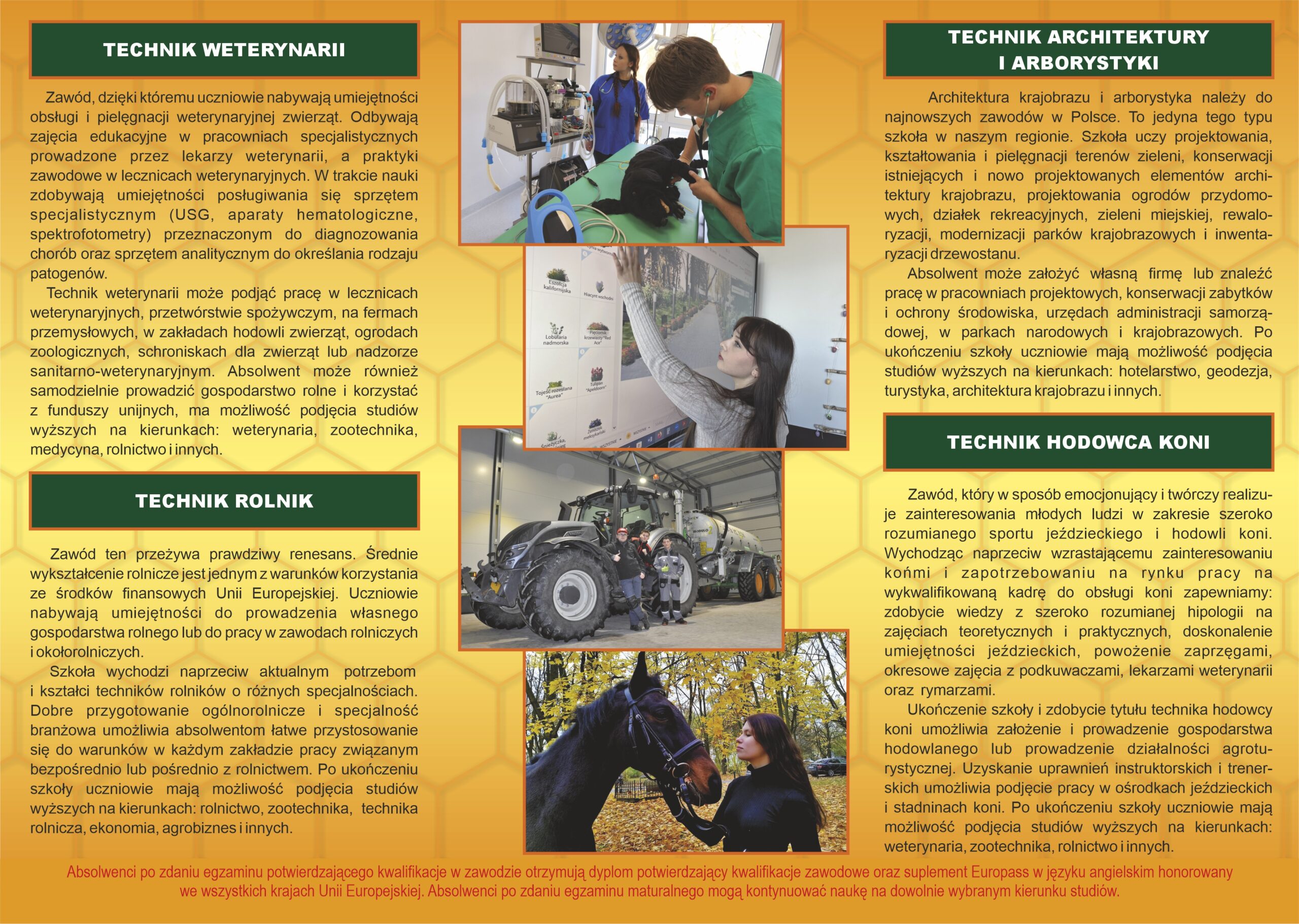 | TECHNIK ROLNIK | TECHNIK WETERYNARII | TECHNIK HODOWCA KONI | TECHNIK ARCHITEKTURY KRAJOBRAZU I ARBORYSTYKI |