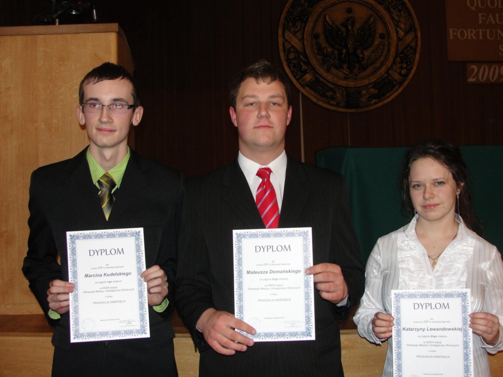 Najlepszym zootechnikiem w Polsce została Katarzyna Lewandowska z klasy III TW, która zajęła I miejsce, a jej młodszy kolega Marcin Kudelski (klasa II TW) z wynikiem o 1 punkt niższym zajął miejsce II. Również Mateusz Domański z klasy II TW uzyskał najwyższy tytuł – laureata.