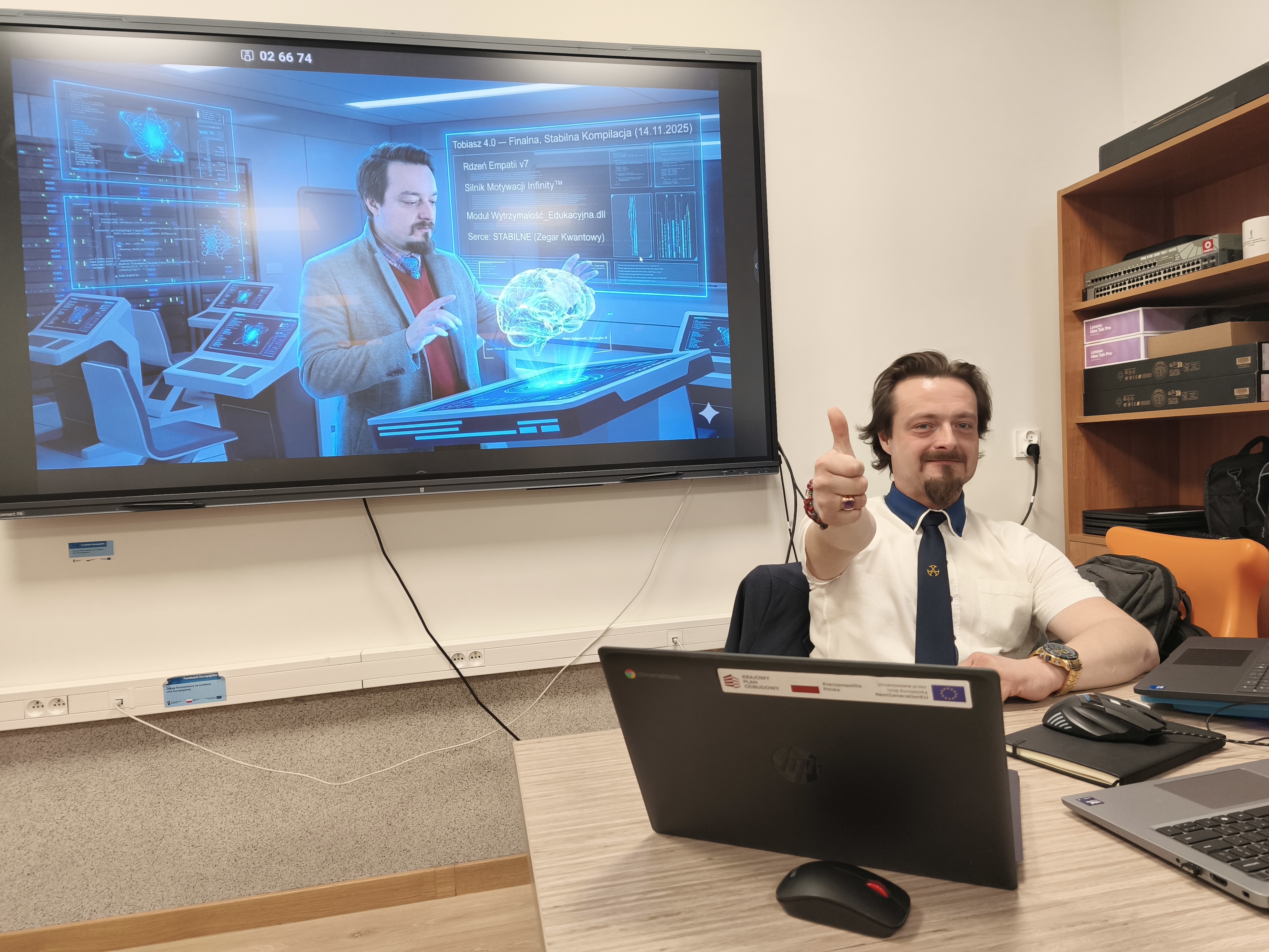 Koordynator oraz Administrator zapewniają nie tylko sprawne funkcjonowanie sieci, sprzętu i systemów informatycznych, ale również aktywnie wprowadzają nowoczesne narzędzia AI do codziennej pracy dydaktycznej, wspierają nauczycieli, inicjują innowacyjne rozwiązania edukacyjne i budują wśród uczniów kompetencje cyfrowe niezbędne w XXI wieku.