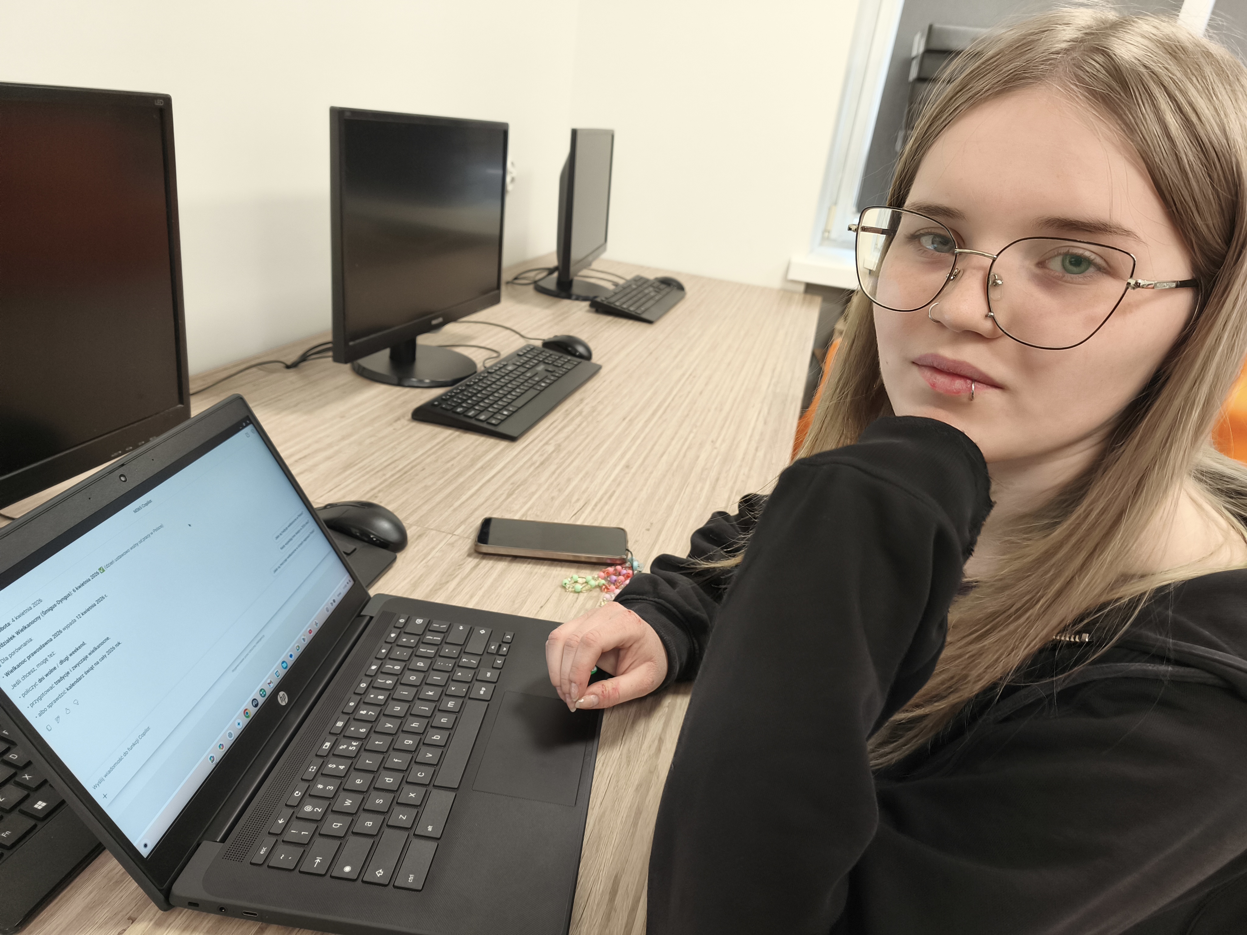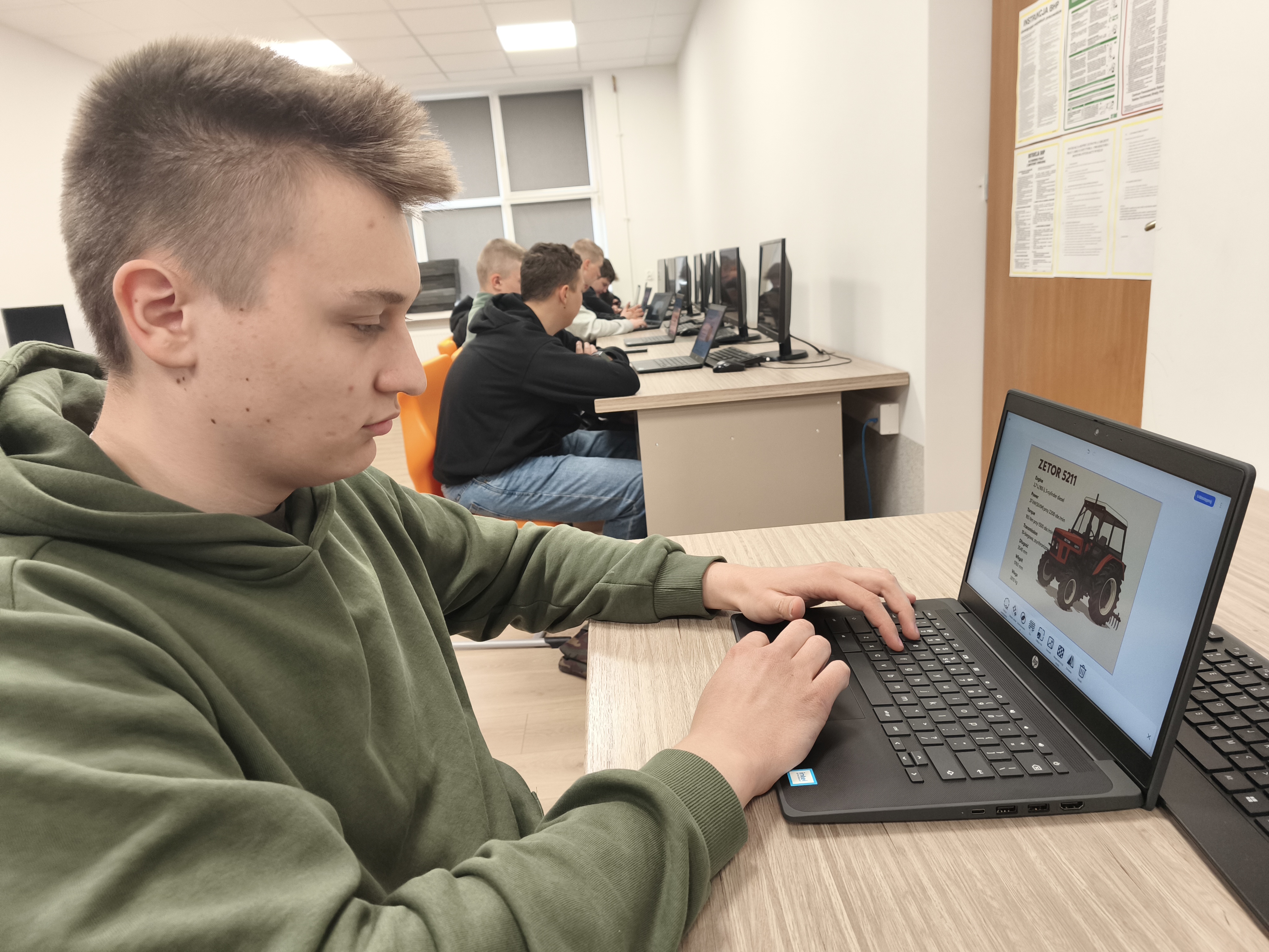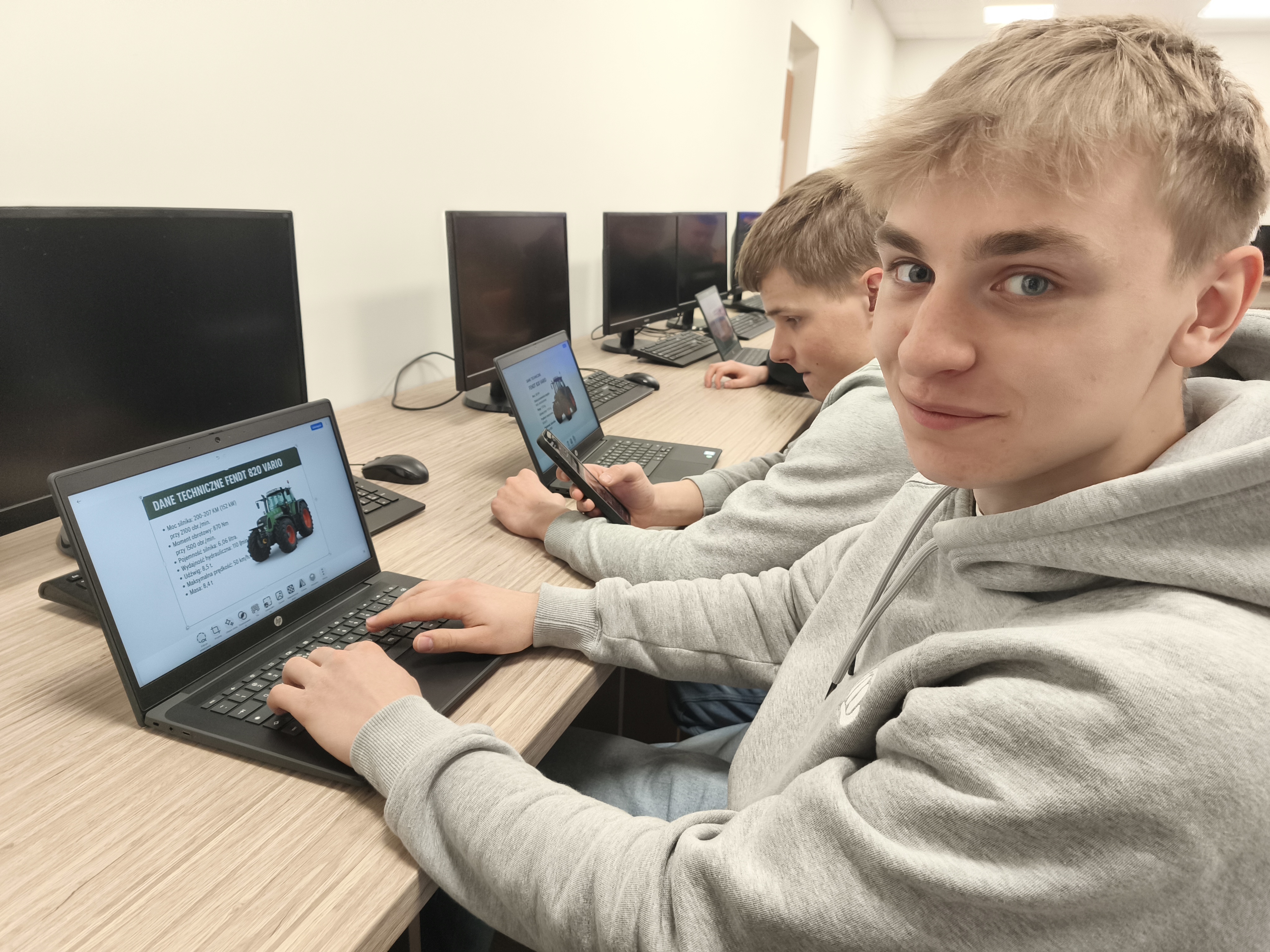 Nowoczesna infrastruktura cyfrowa znajduje odzwierciedlenie w wyjątkowo atrakcyjnych pracowniach dydaktycznych. W Pracowni Praktycznej Nauki Zawodu dla kierunku Technik Hodowca Koni, prowadzonej przez Karolinę Bożym i Kingę Mużdżyńską, uczniowie uczą się nowoczesnej hodowli i użytkowania koni, pracując z symulatorami ośrodków jeździeckich, aplikacjami do planowania treningów oraz narzędziami wspierającymi układanie dawek pokarmowych. To połączenie pasji, praktyki i technologii, które angażuje i motywuje do nauki.