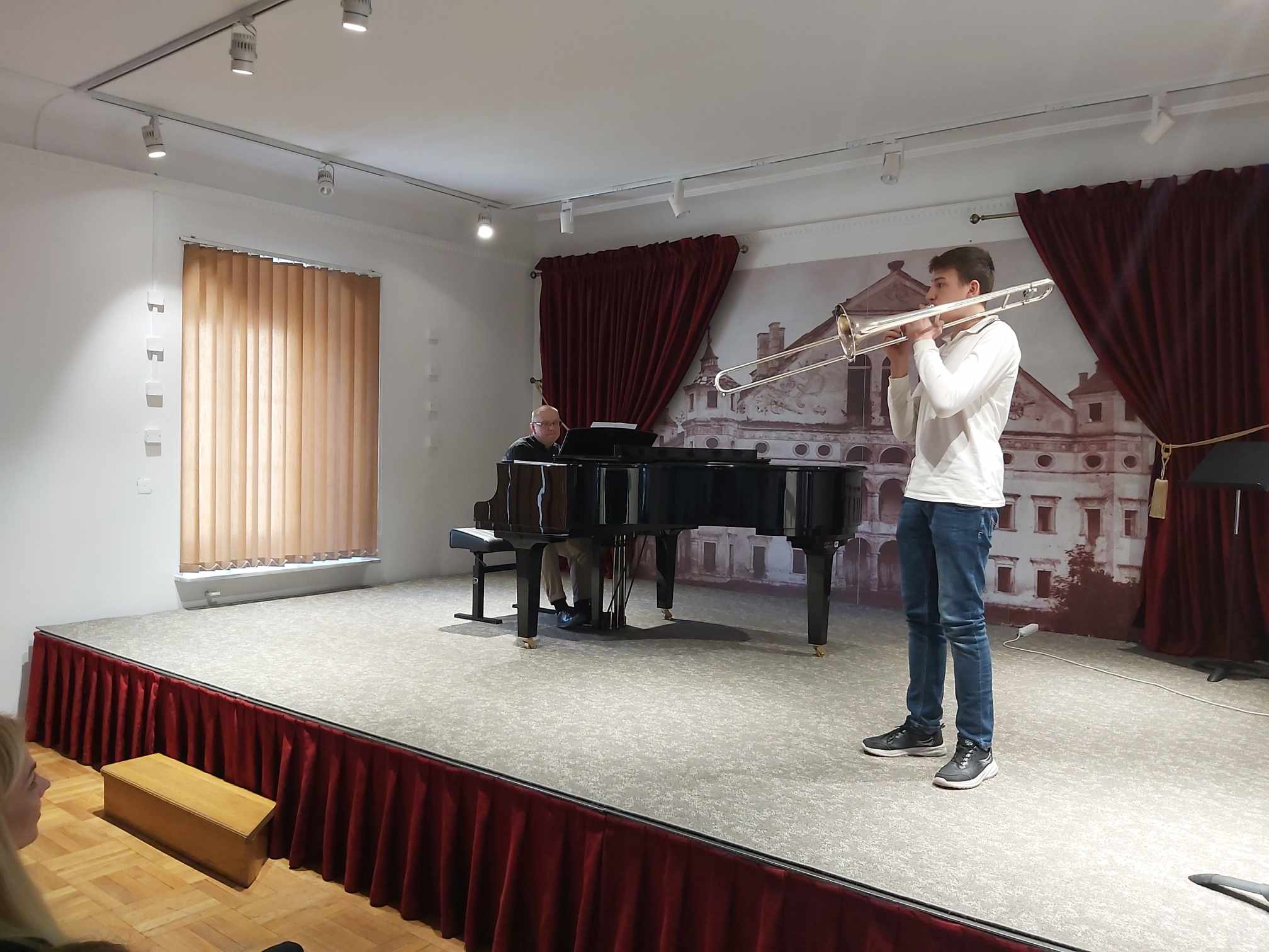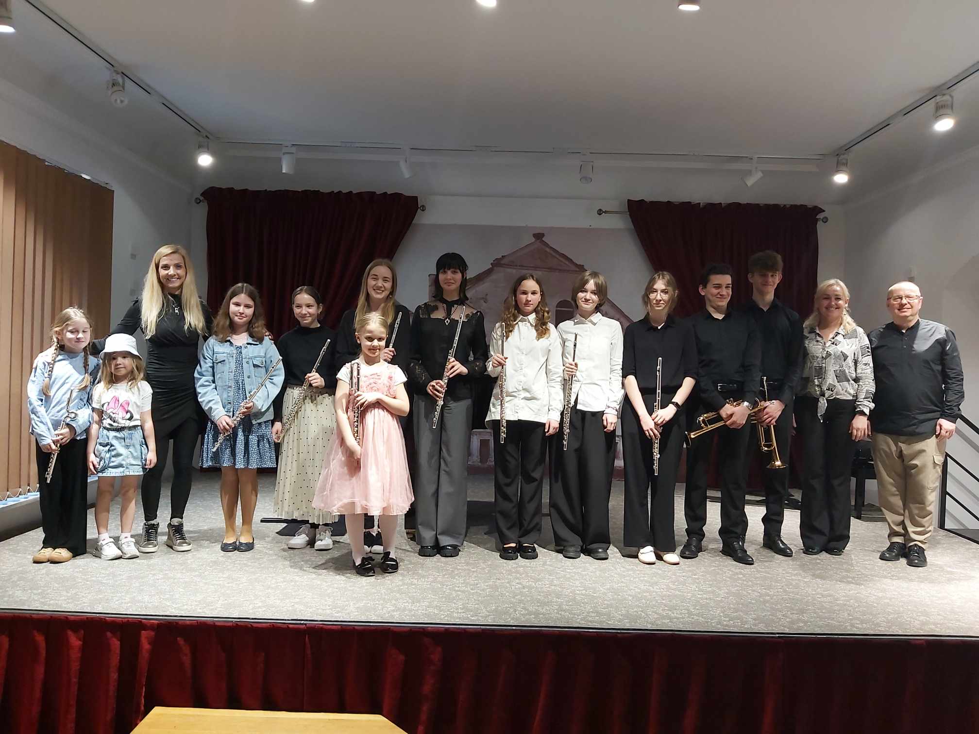 Dnia 4 kwietnia 2025 r. w ZSM I i II st. im. F. Chopina w Białej Podlaskiej odbyła się audycja klasy fletu pani Katarzyny Pomianowskiej, oraz klasy trąbki i puzonu pana Piotra Kalisza.