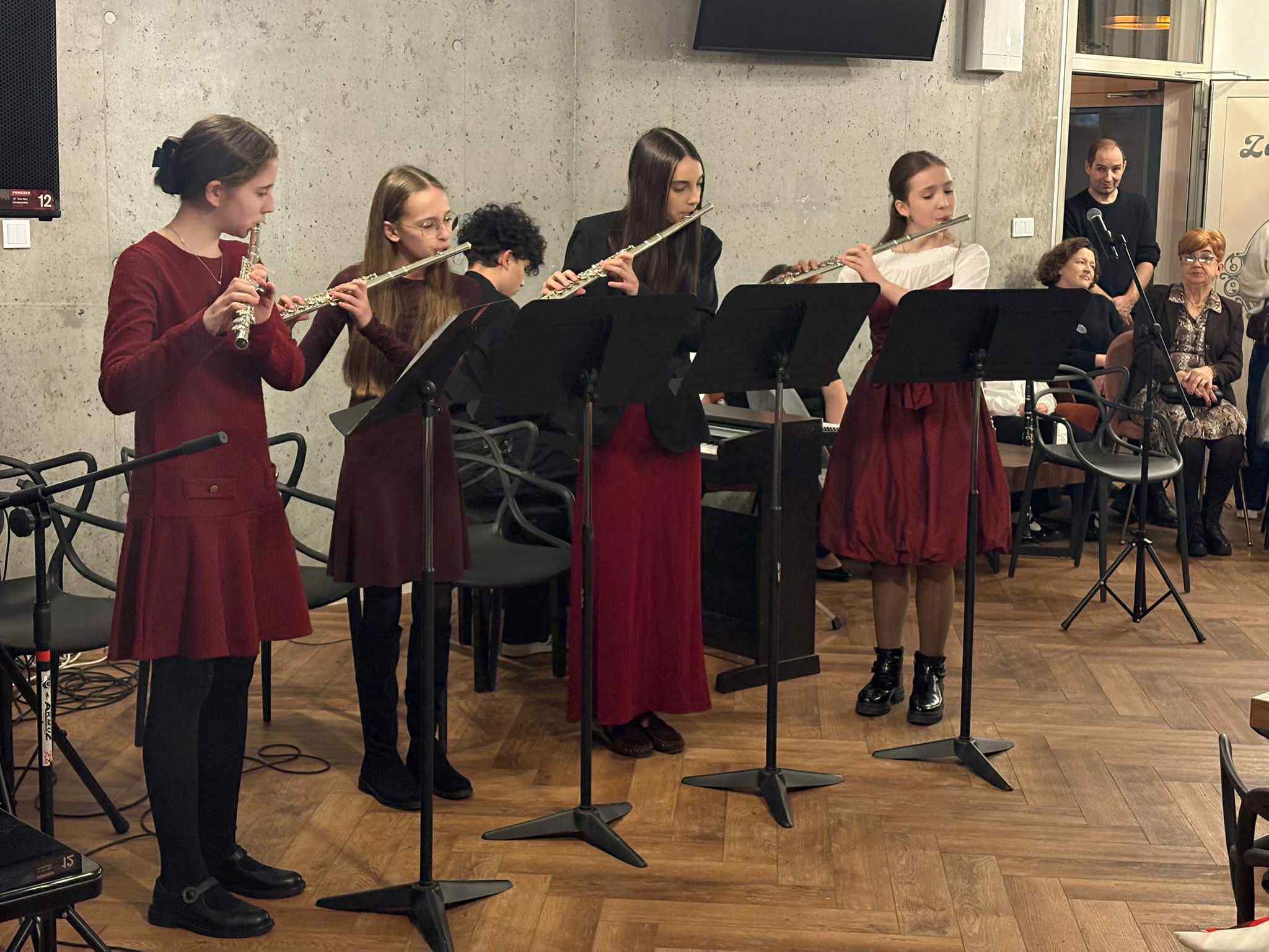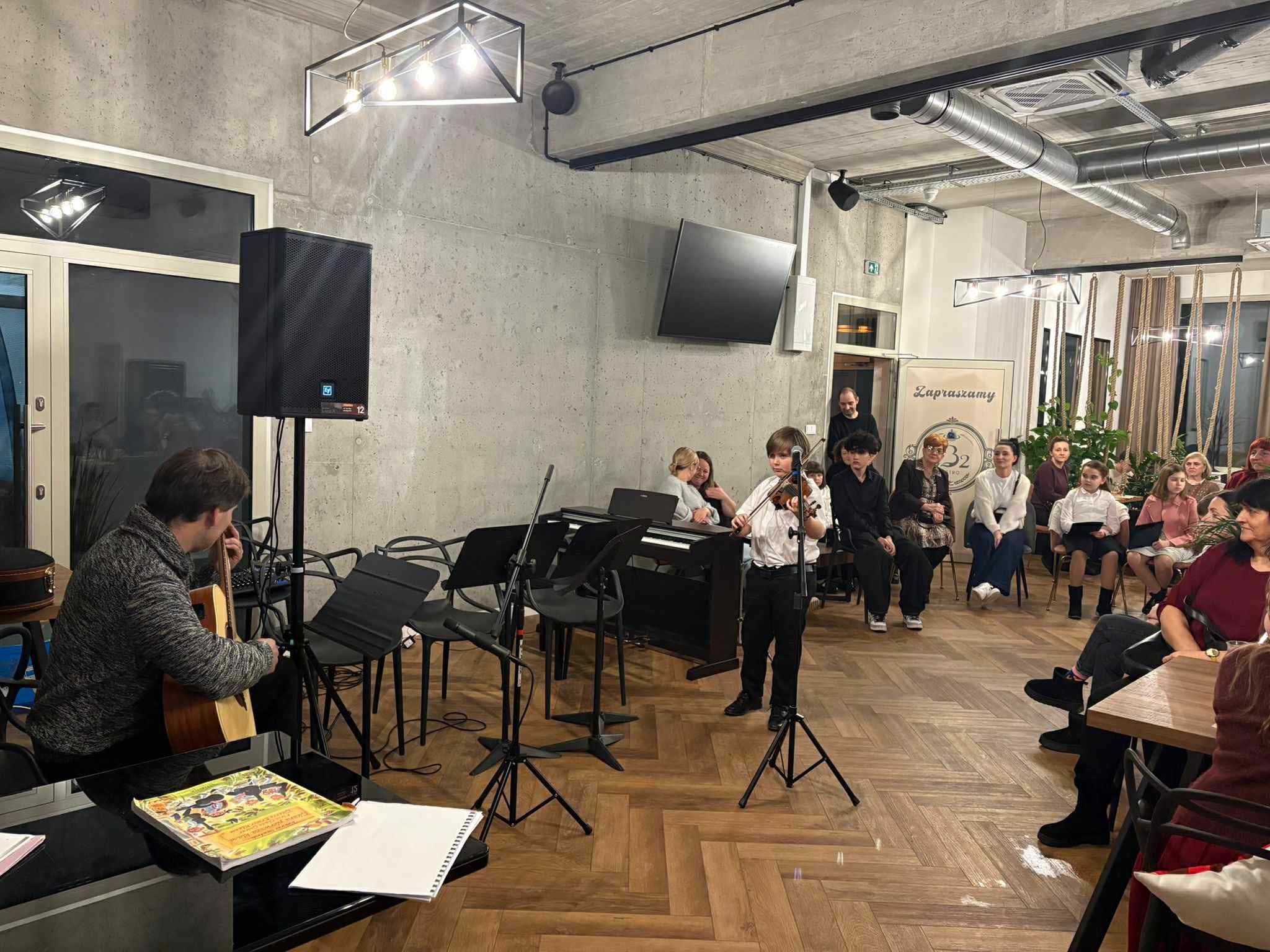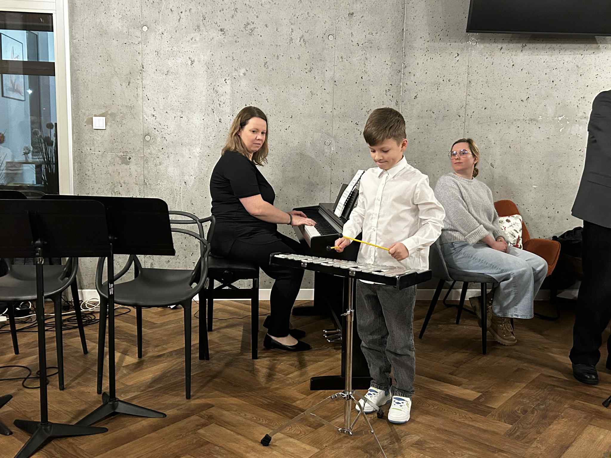 Podczas koncertu zaprezentowali się uczniowie szkoły muzycznej, wykonując utwory na gitarach, fortepianie, flecie, klarnecie, skrzypcach, akordeonie oraz ksylofonie. Różnorodność instrumentów i repertuaru stworzyła ciepłą, uroczystą atmosferę, a młodzi wykonawcy zostali nagrodzeni gromkimi brawami.